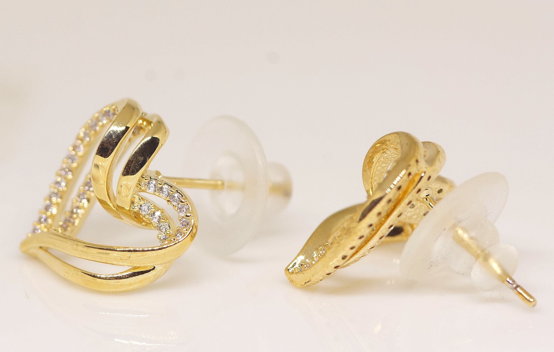 18K RGP ゴールド ダイヤ CZ オーブン ハート ピアス gp5567
