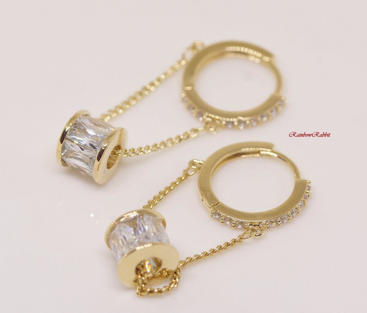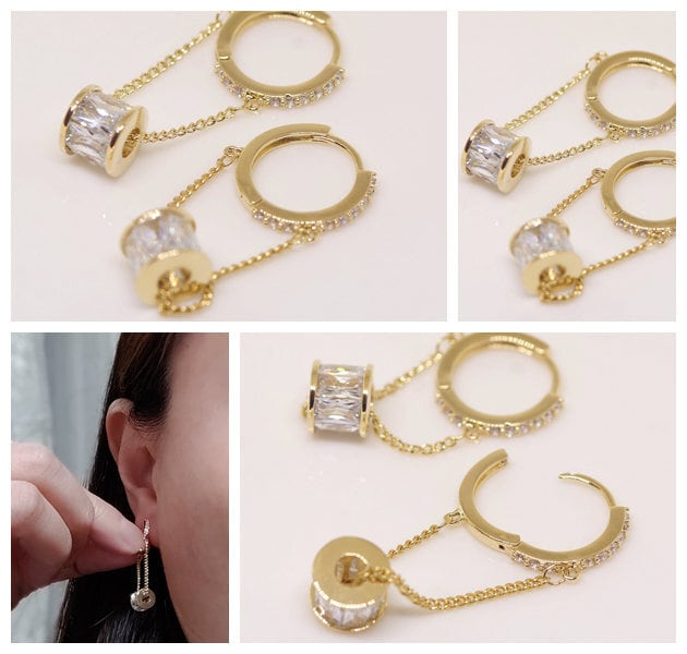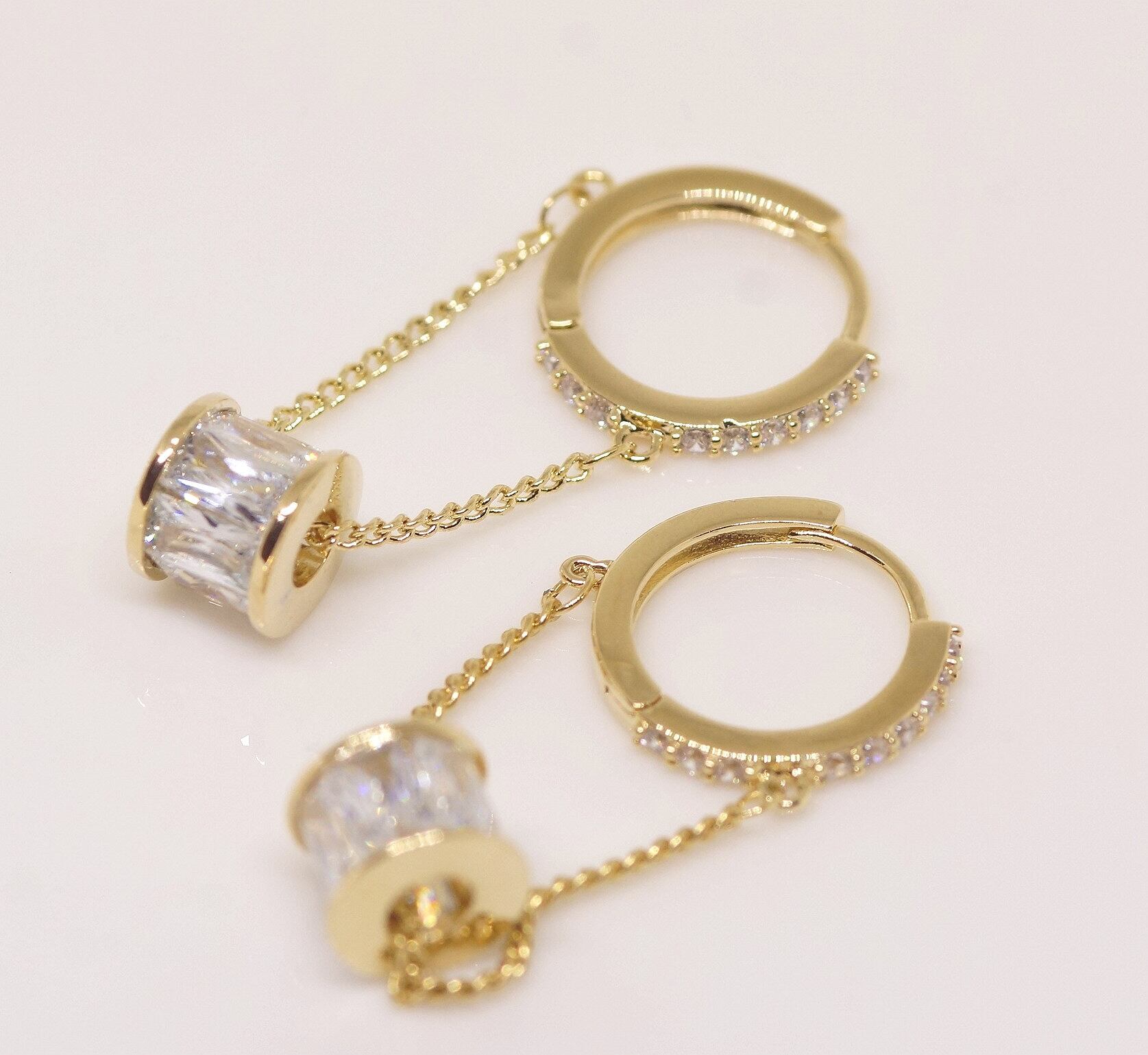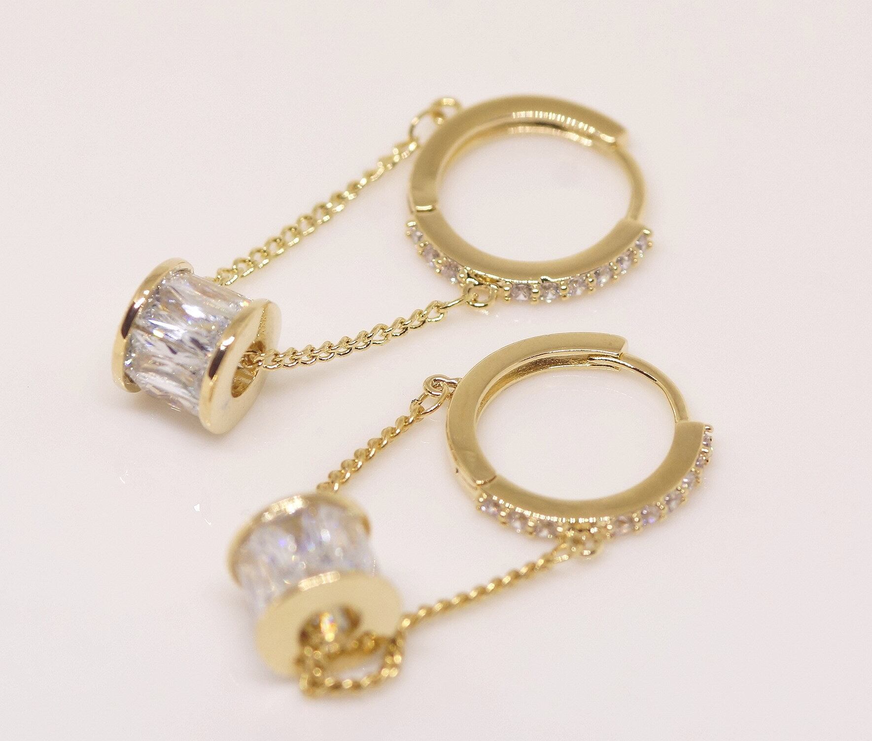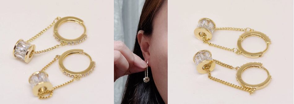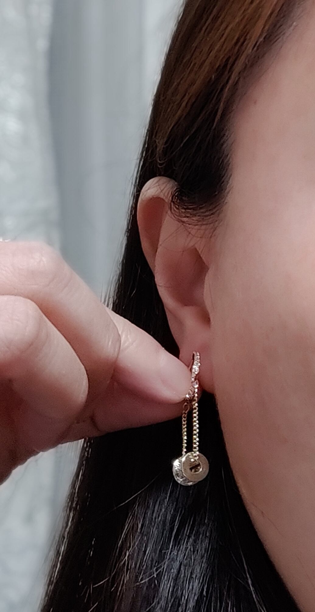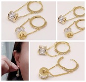 18K RGP ゴールド ダイヤ CZ リング 揺れ ピアス gp5578