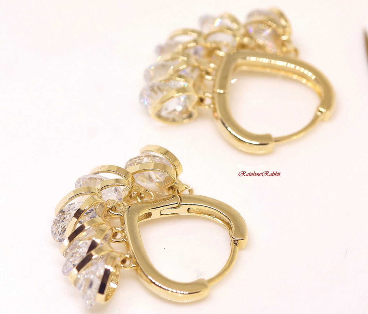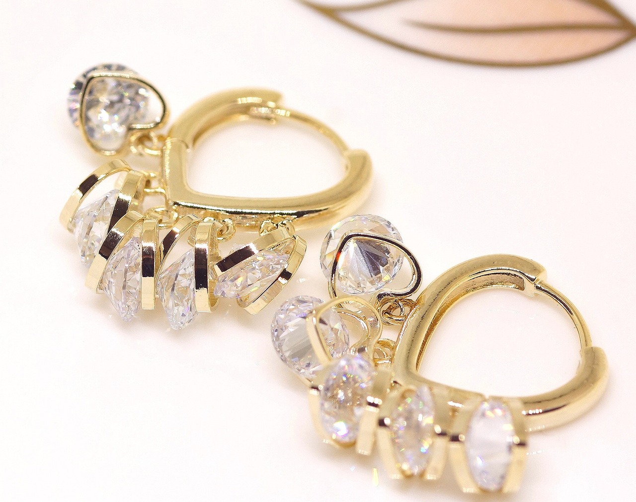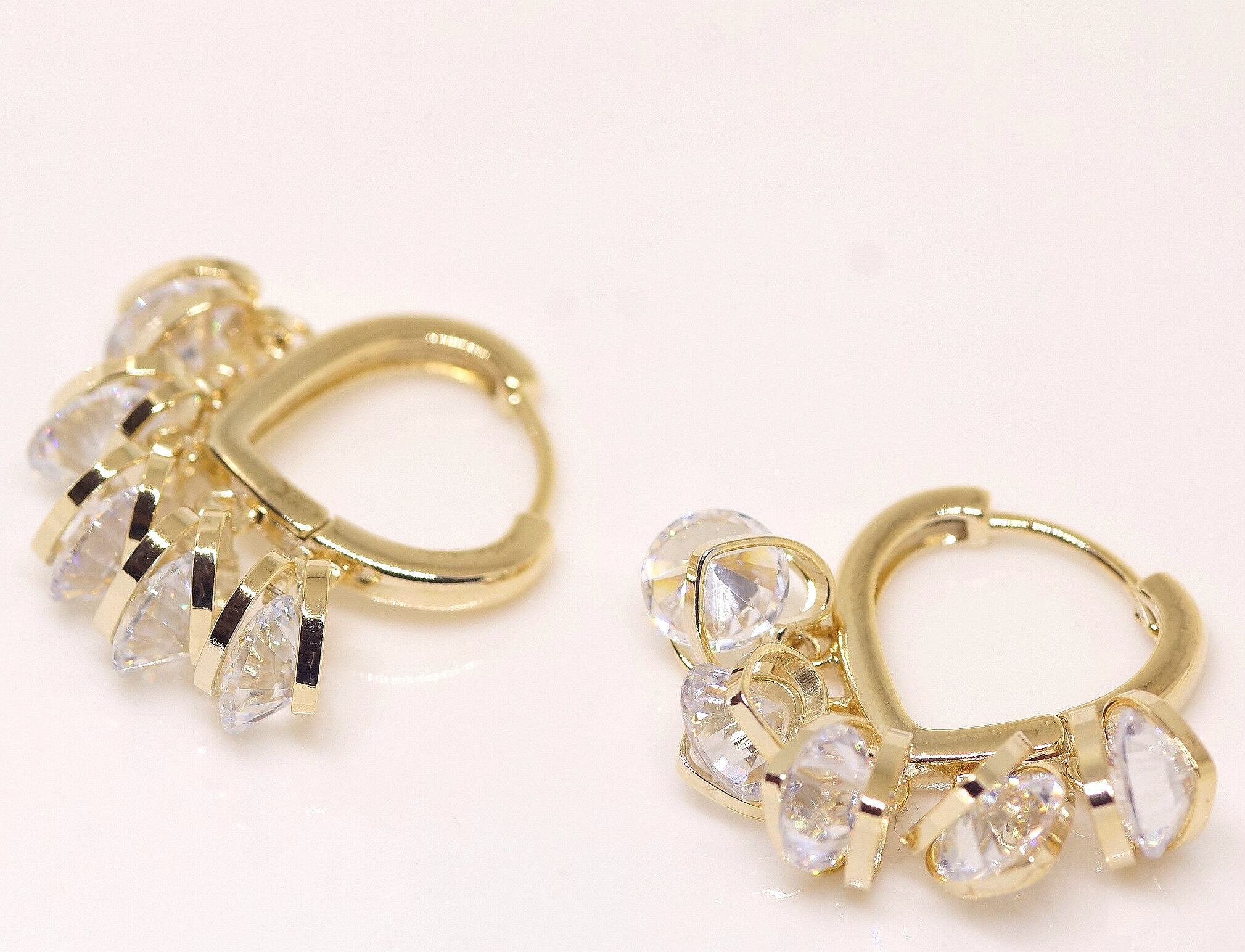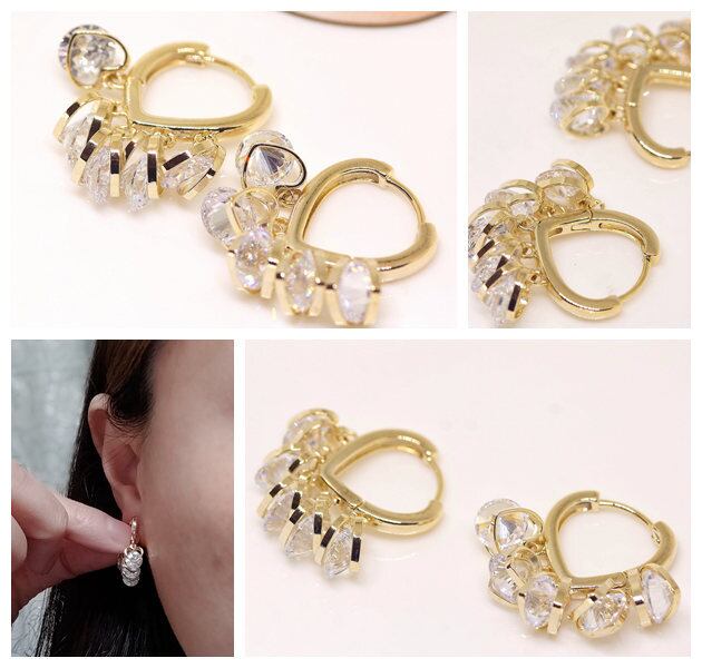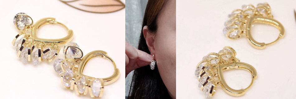 18K RGP ゴールド ダイヤ CZ ハート リング ピアス gp5570