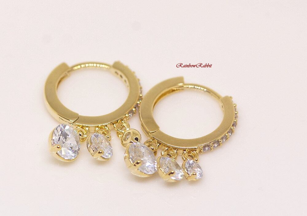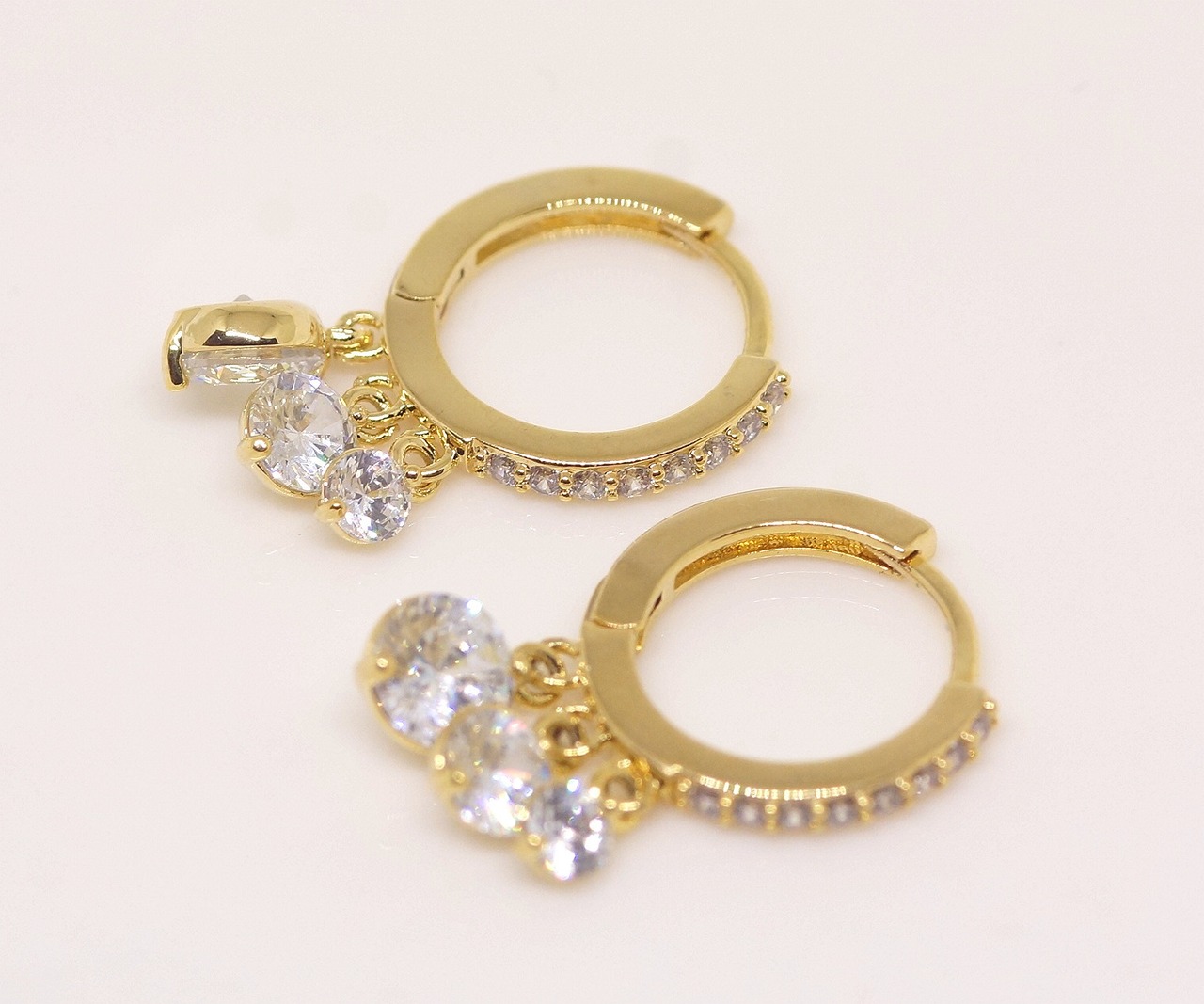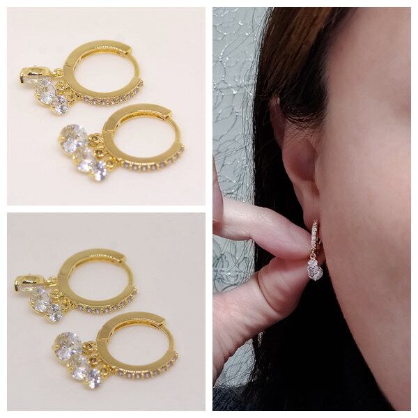 18K RGP ゴールド ダイヤ CZ リング 3粒揺れ ピアス gp5566