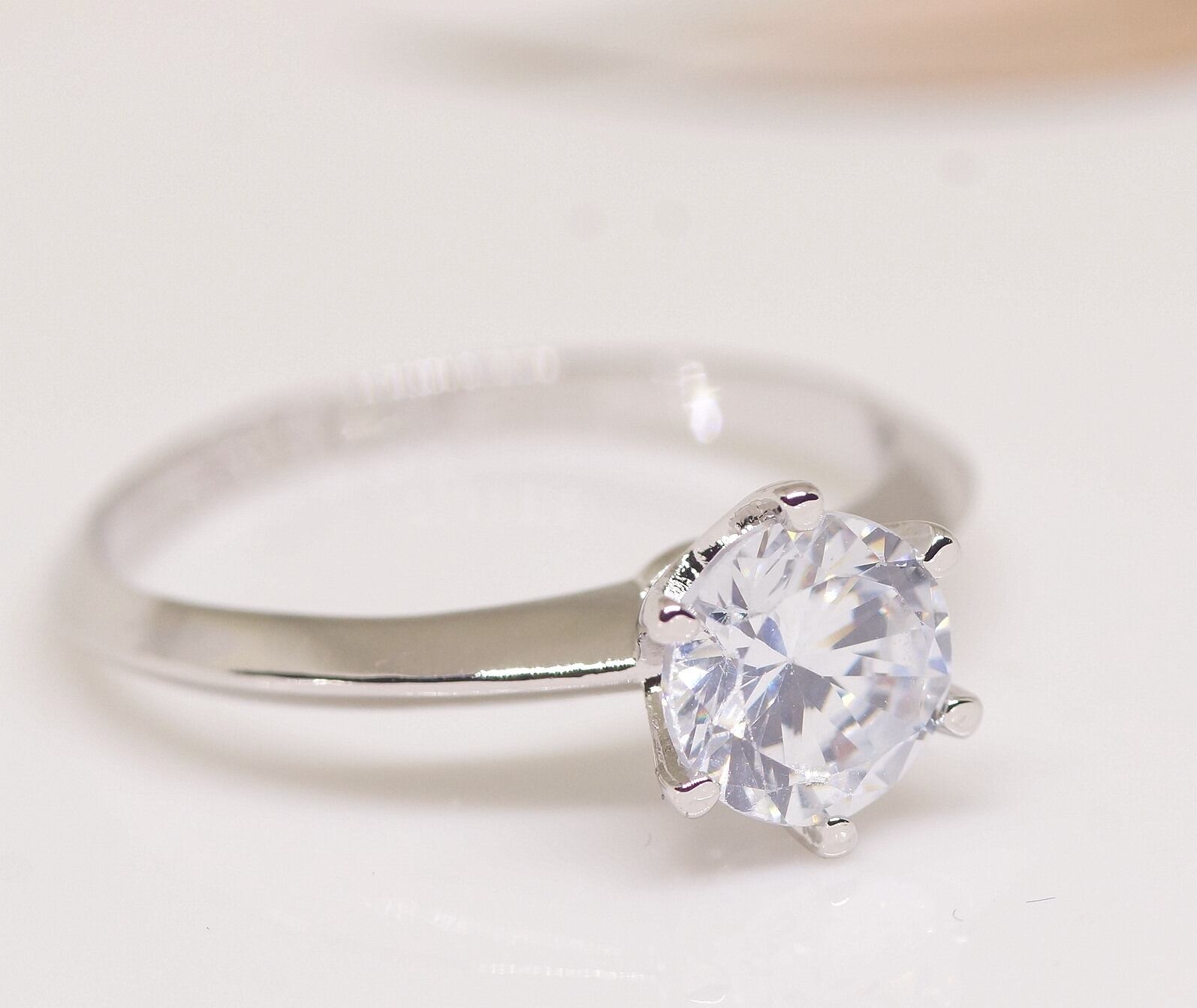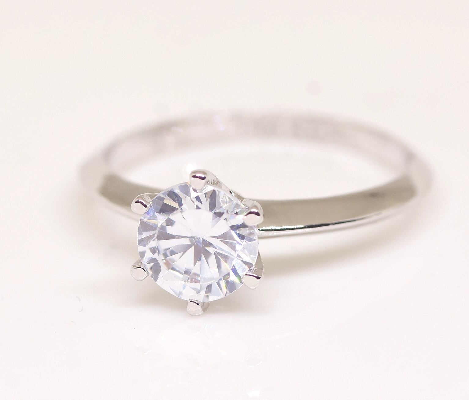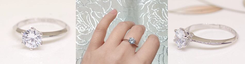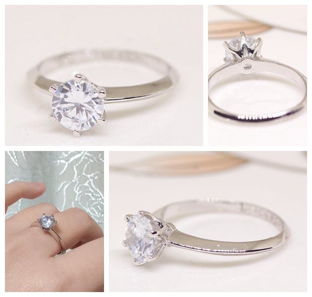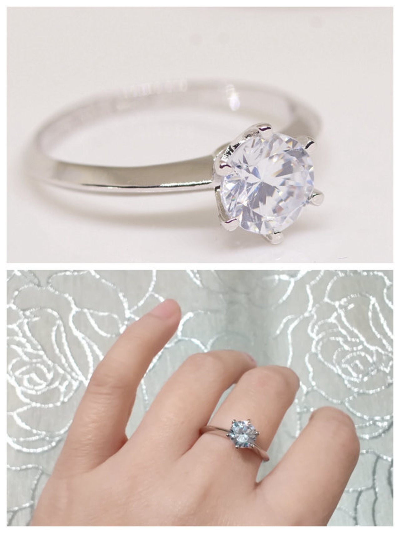 18K RGP プラチナ ダイヤ CZ 6爪 王冠 一粒 リング yu1135e