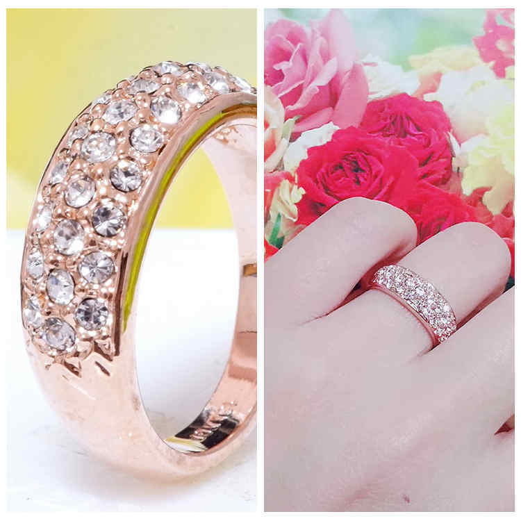 18K RGP ゴールド ダイヤ CZ Narrow Band リング gu1105e