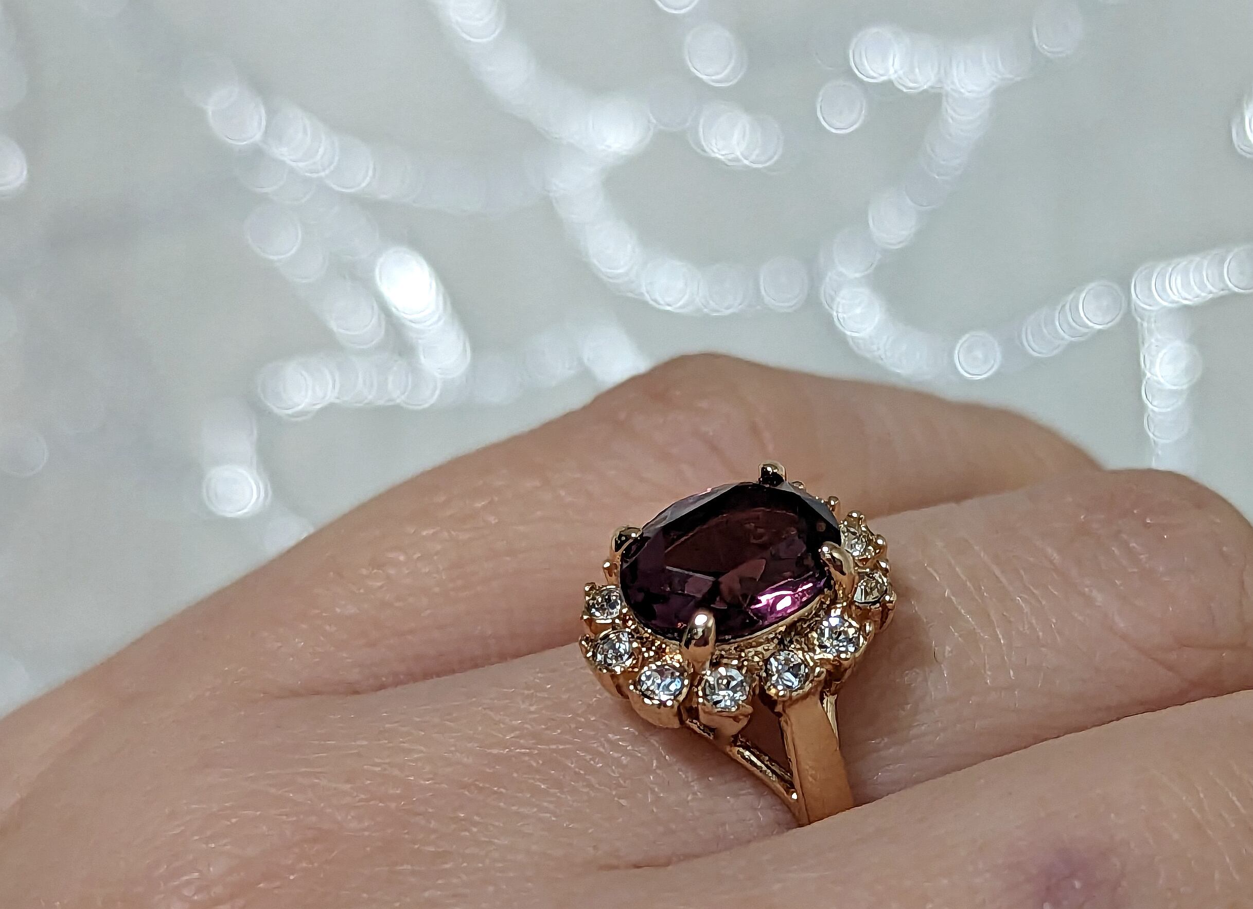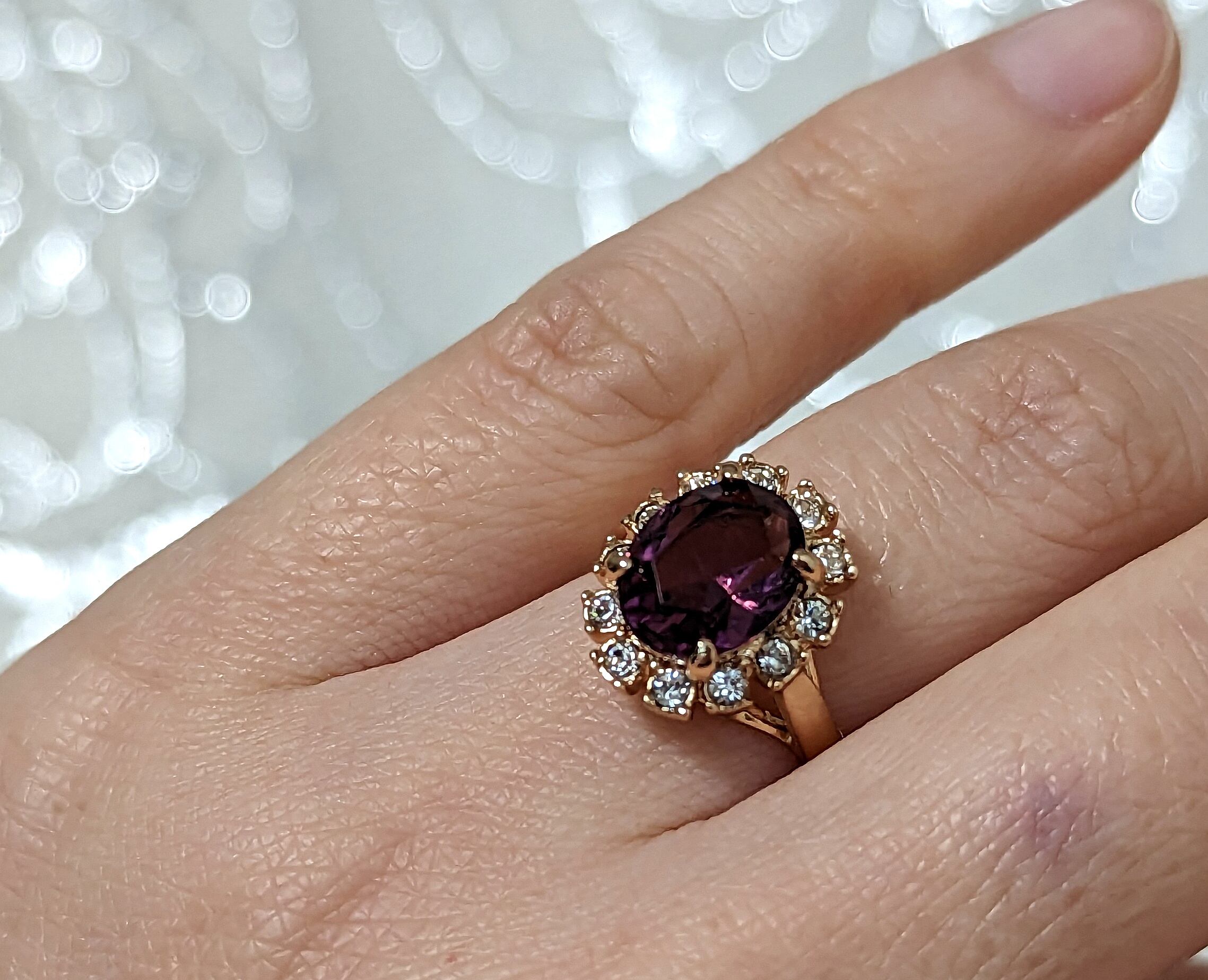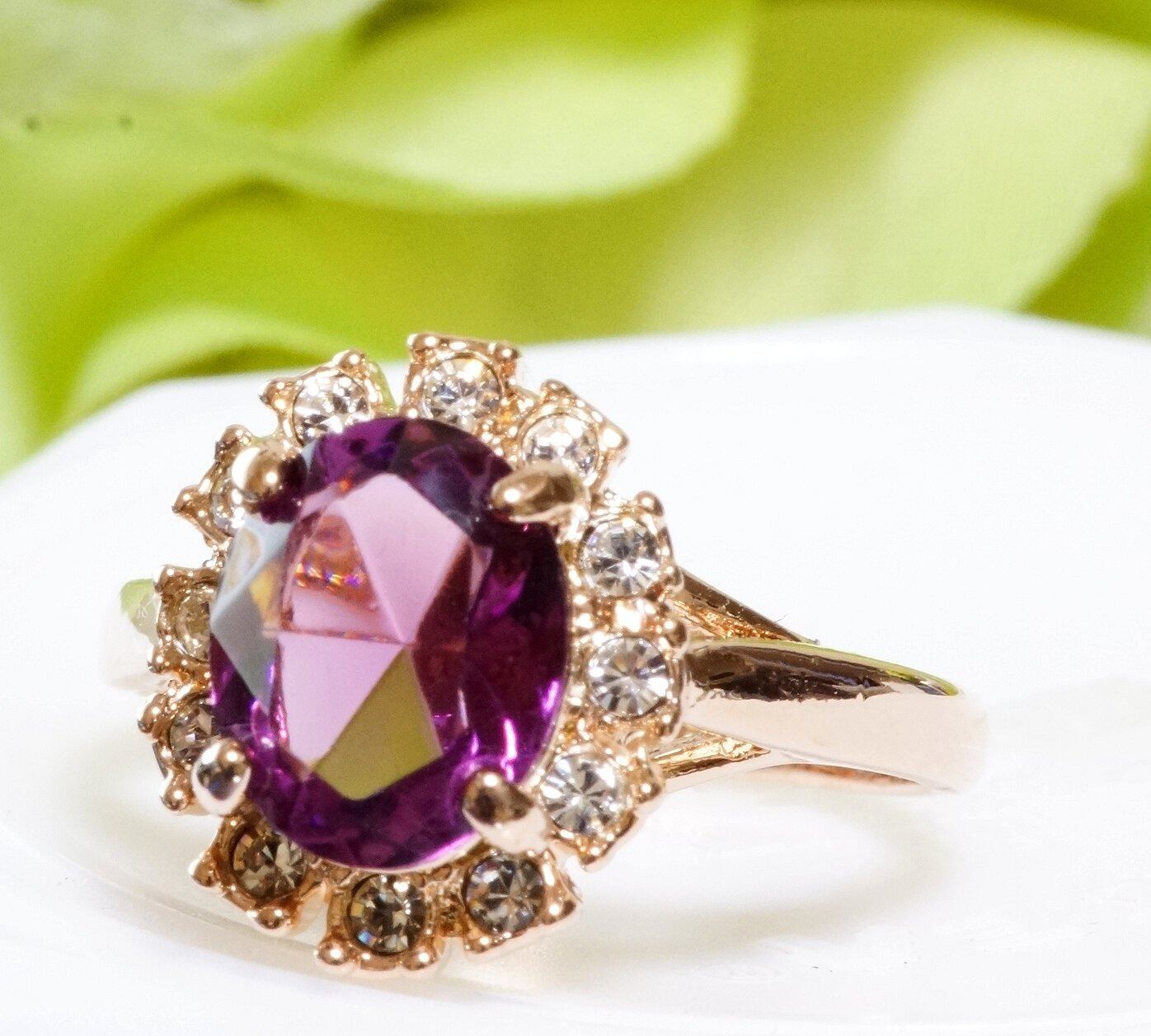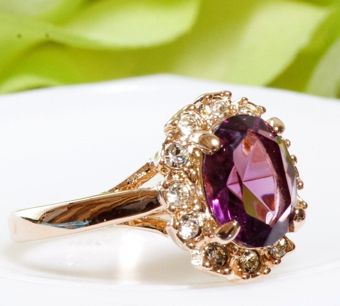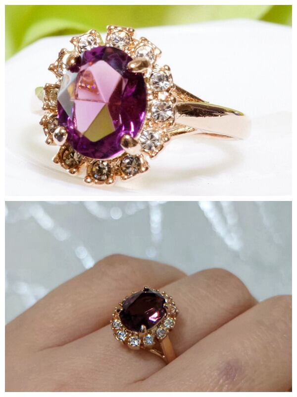 18K RGP ゴールド ダイヤ CZ 赤ワイン色 フラワー リング gu1034e