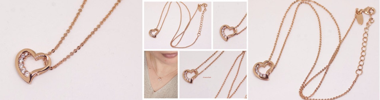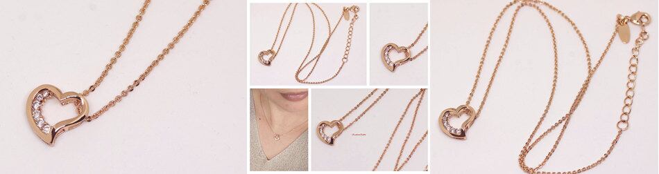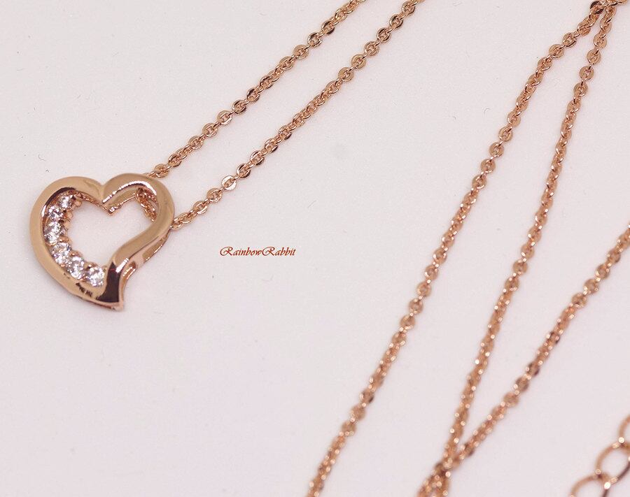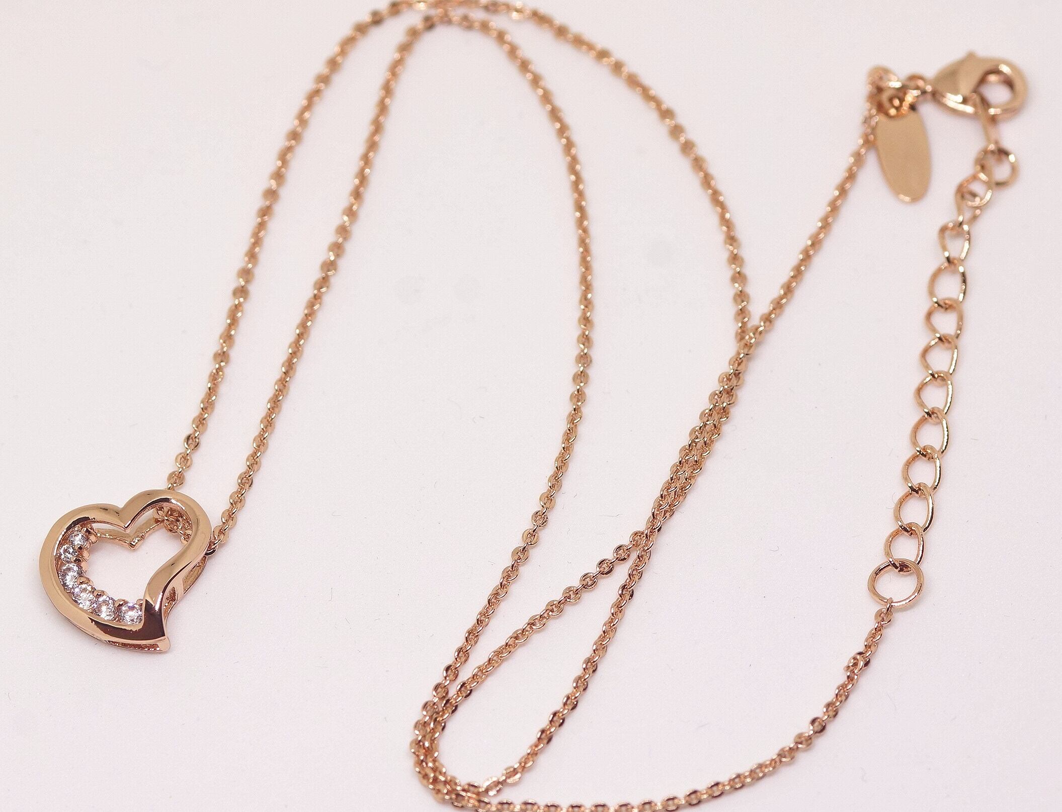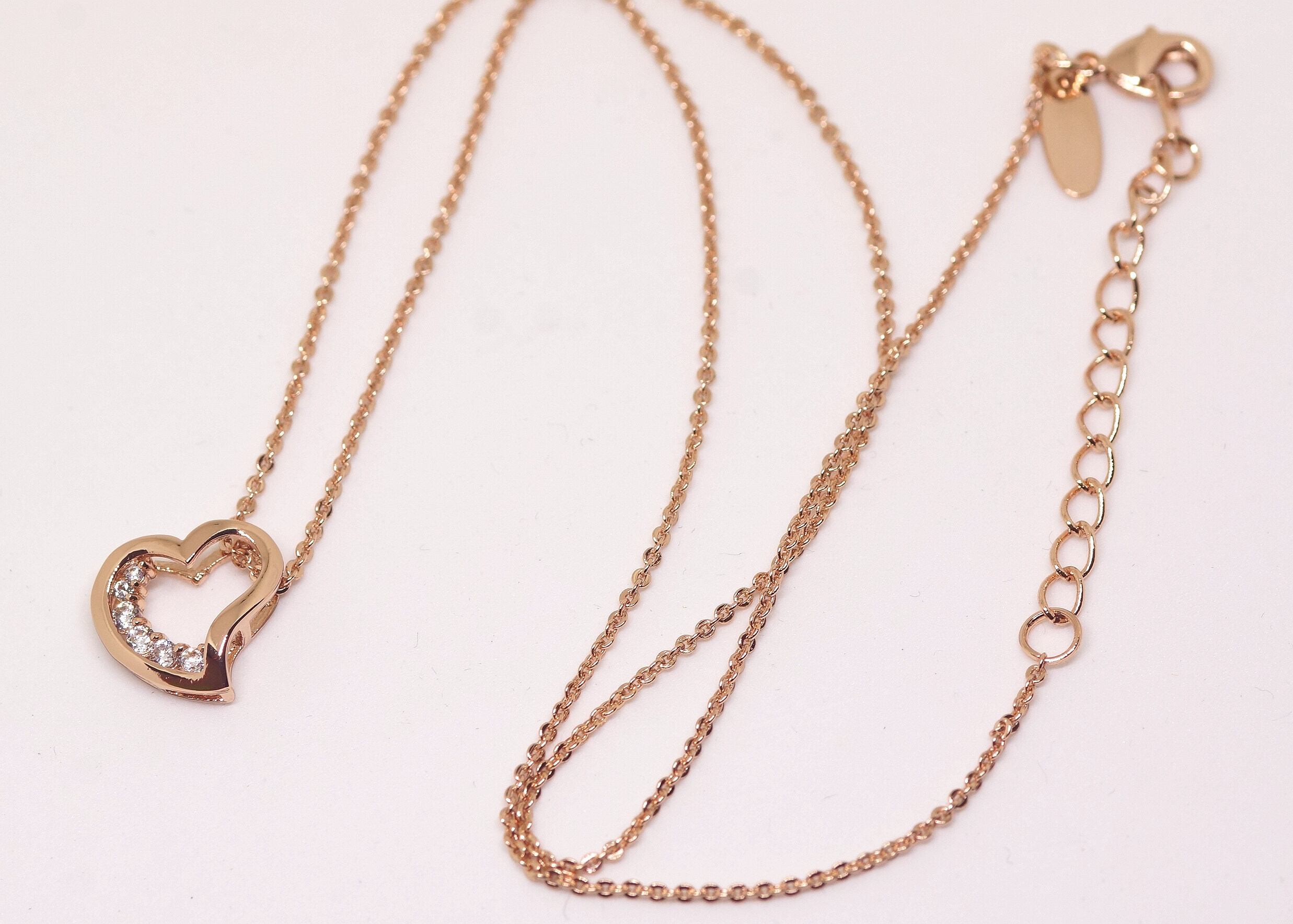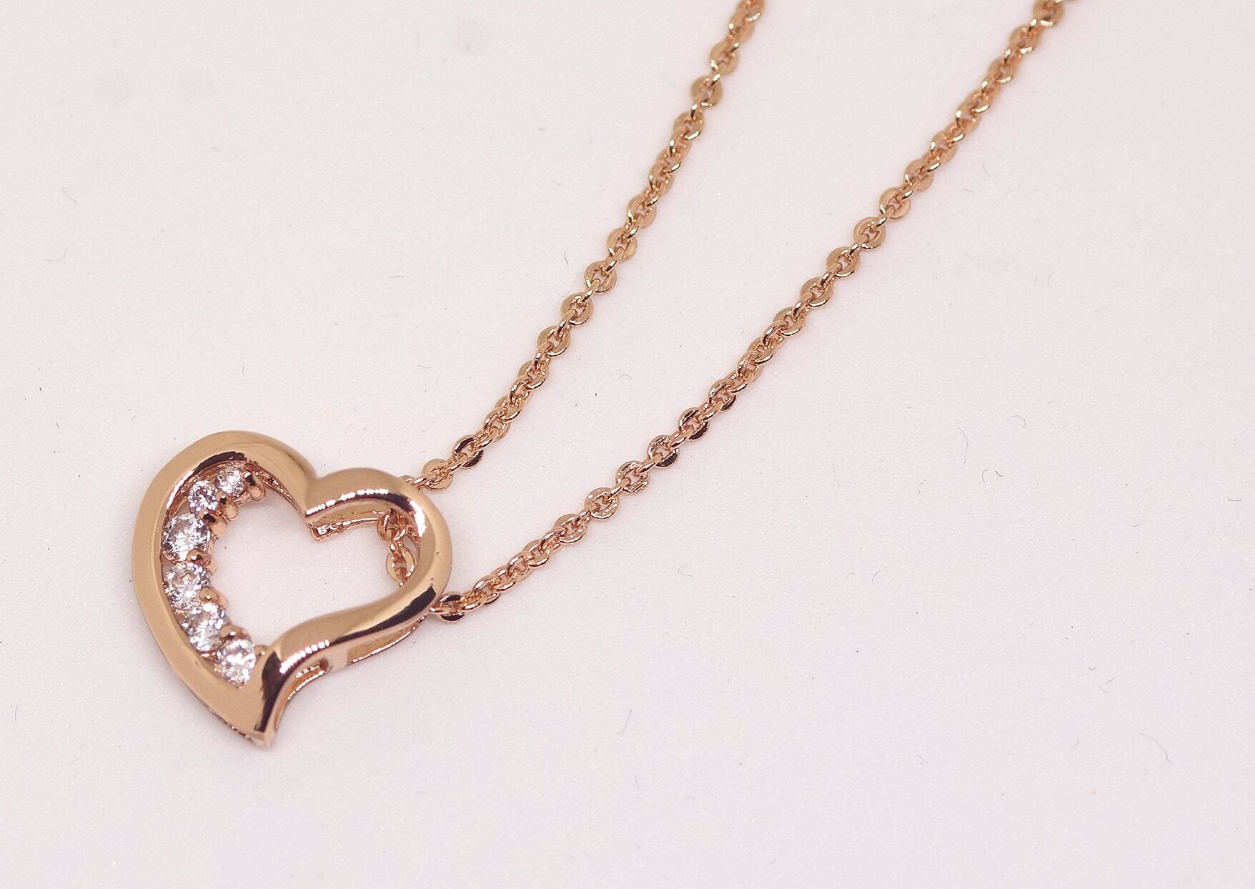 18K RGP ゴールドダイヤ CZ オーブン ハート ネックレス pn3832