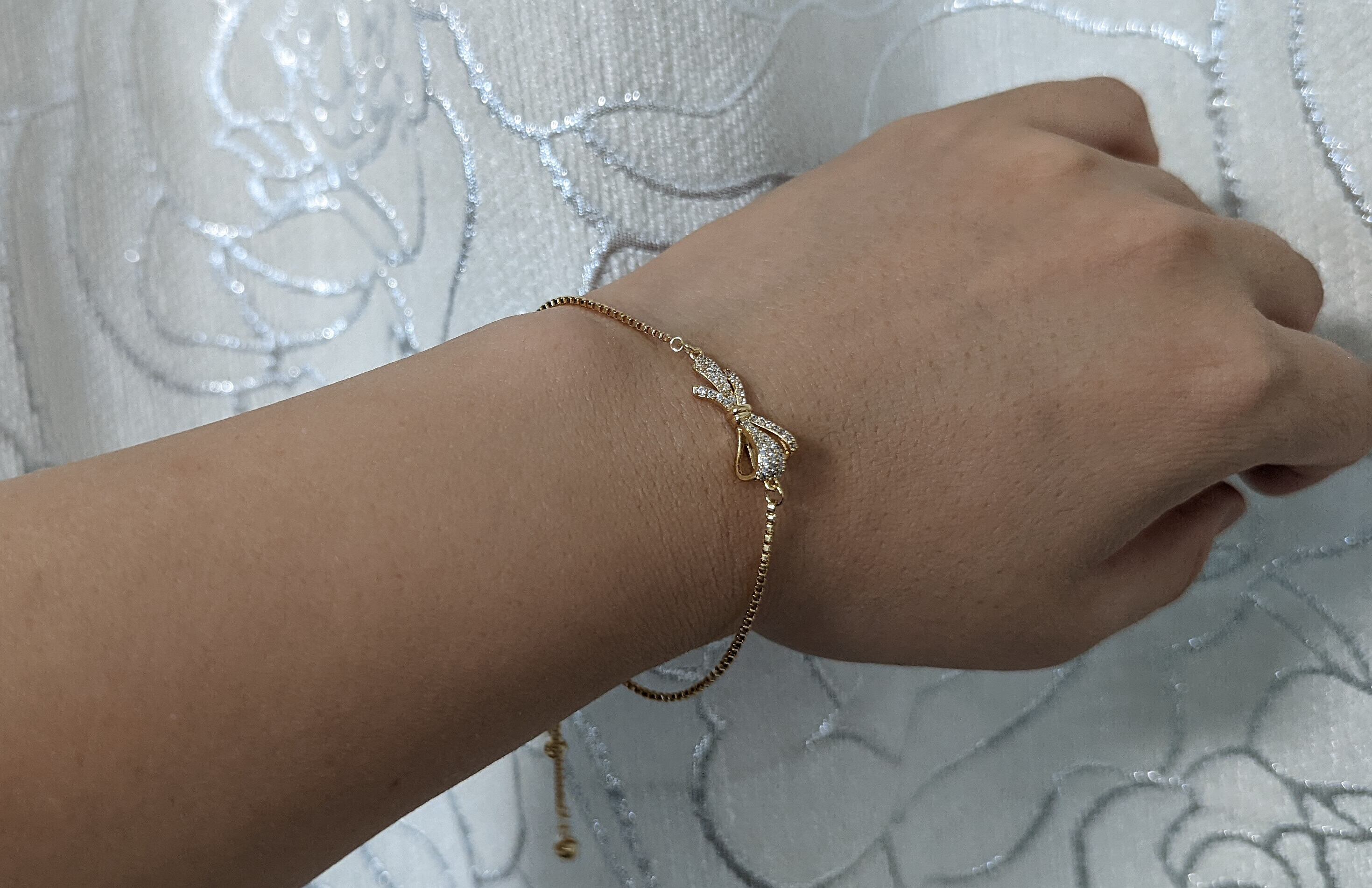 18K RGP ゴールド ダイヤ CZ リボン ブレスレット gh895a