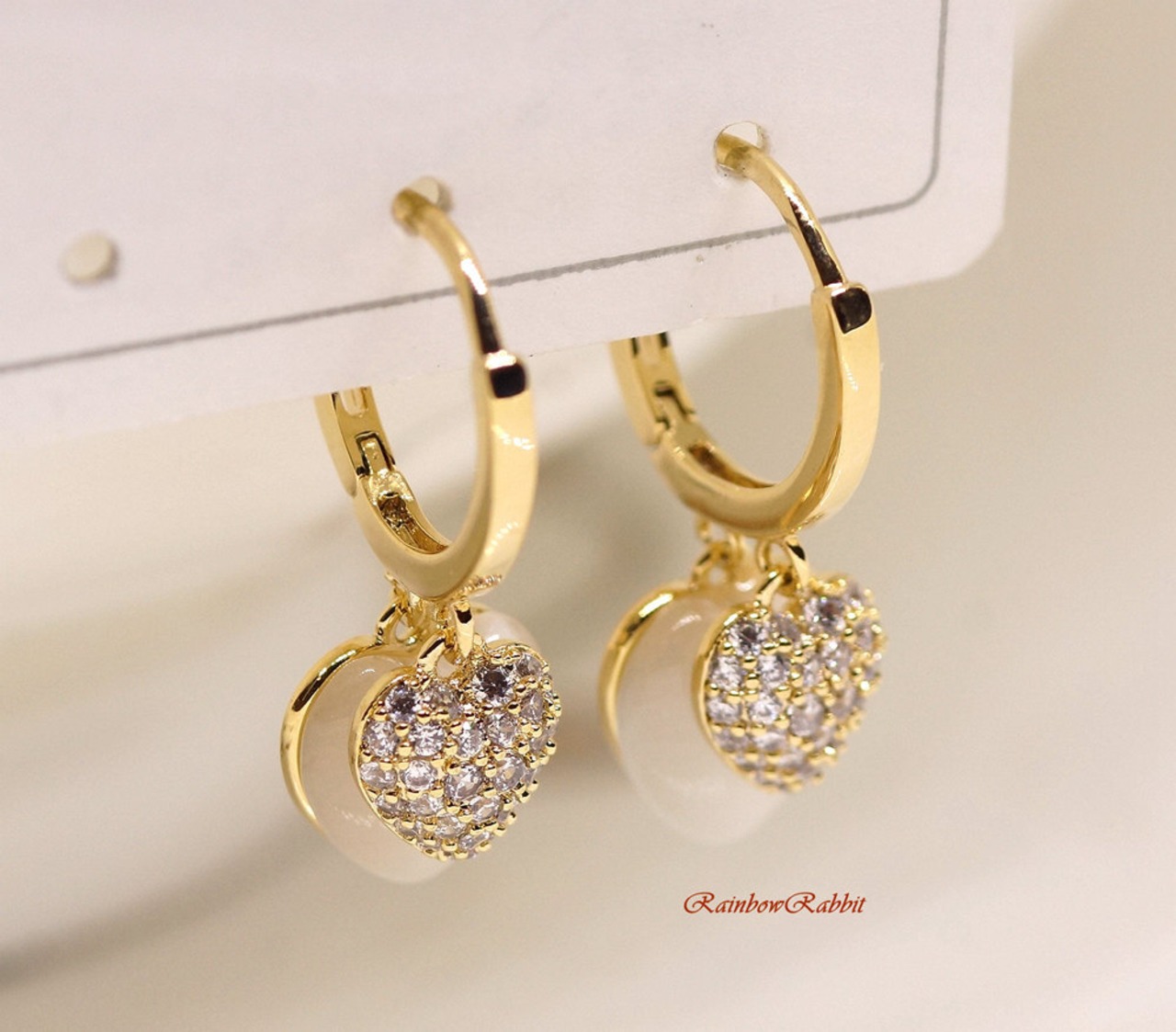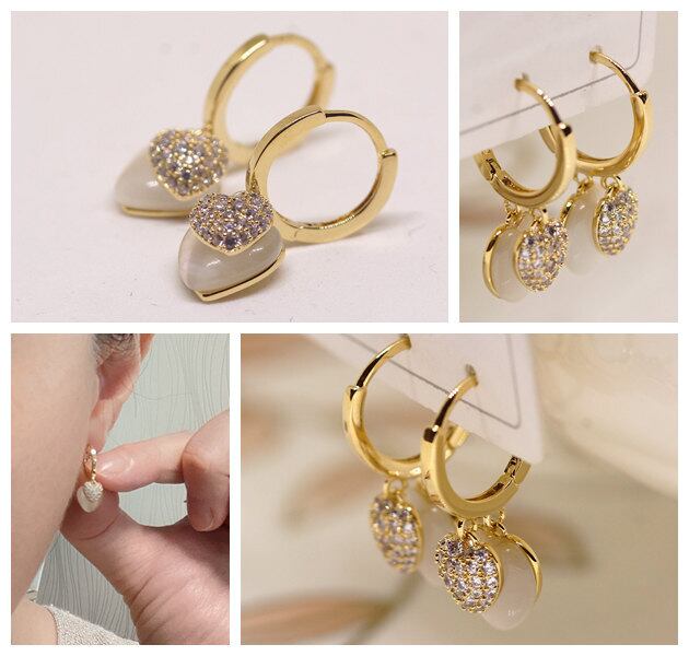 18K RGP ゴールド ダイヤ CZ ハート リング ピアス gp5596