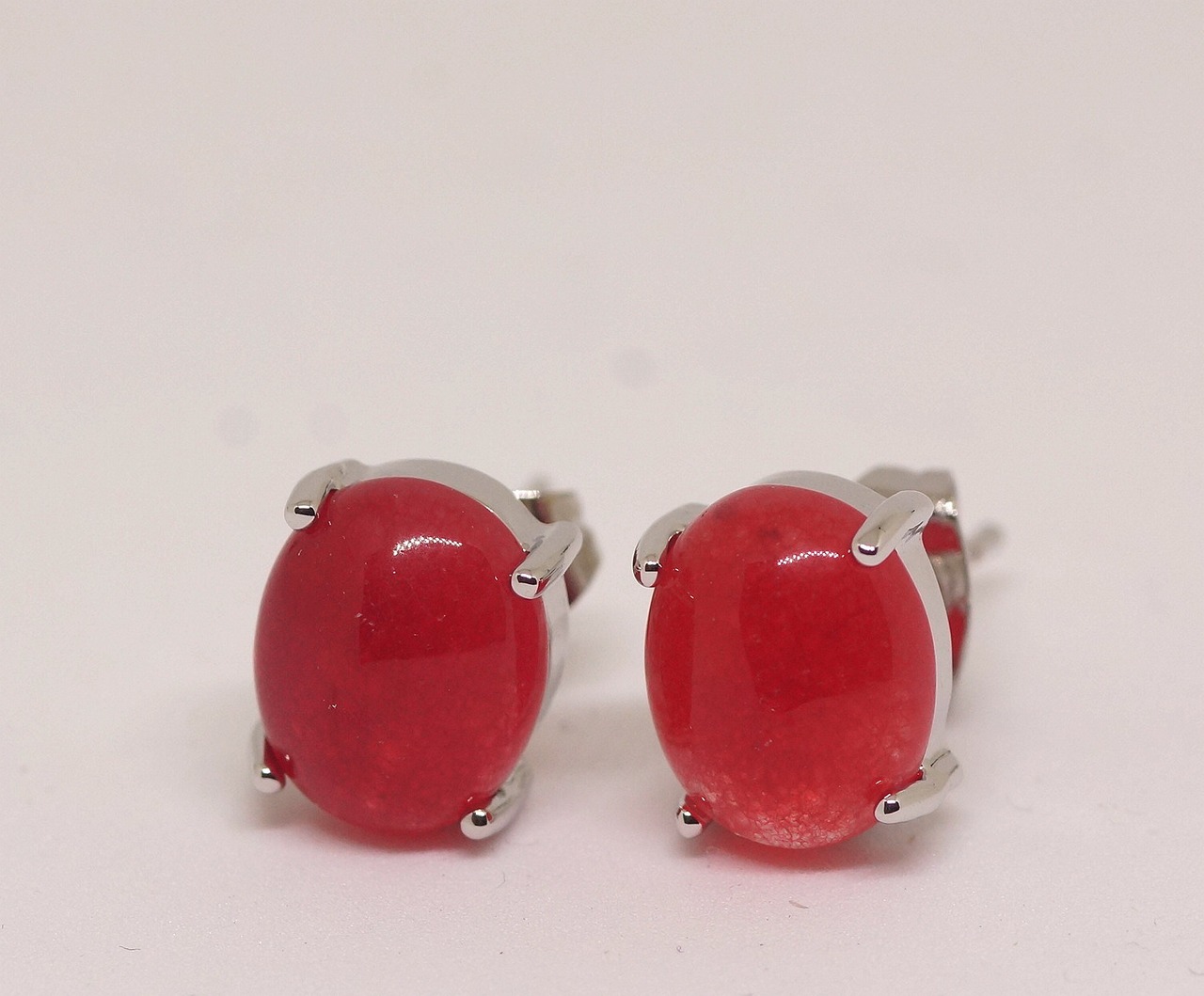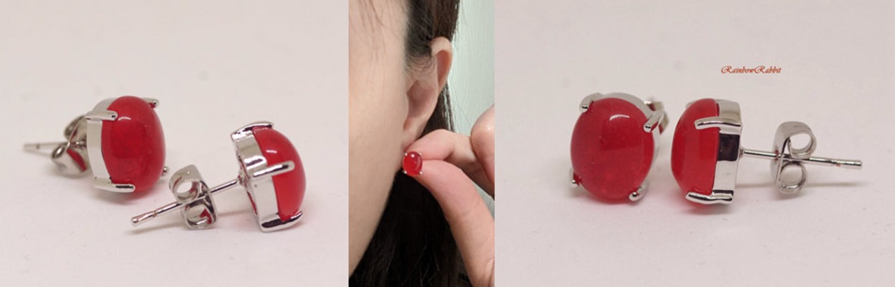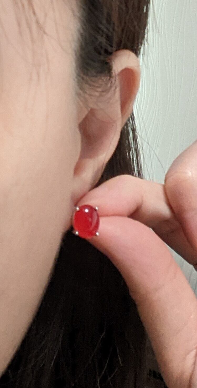 18K RGP プラチナ レッド 一粒 メノウ ピアス yp4876