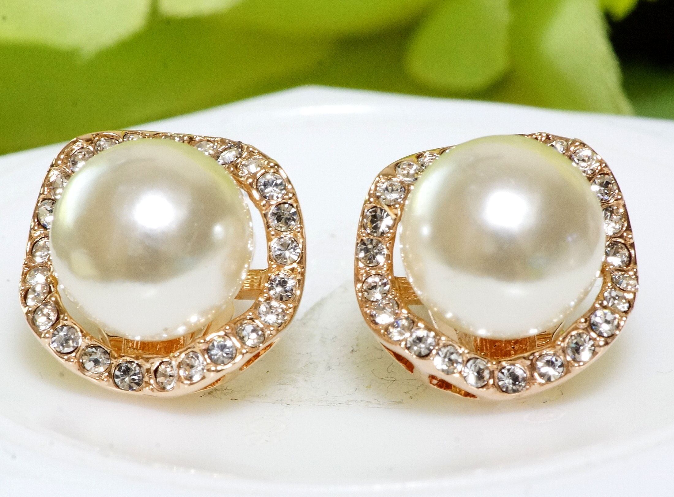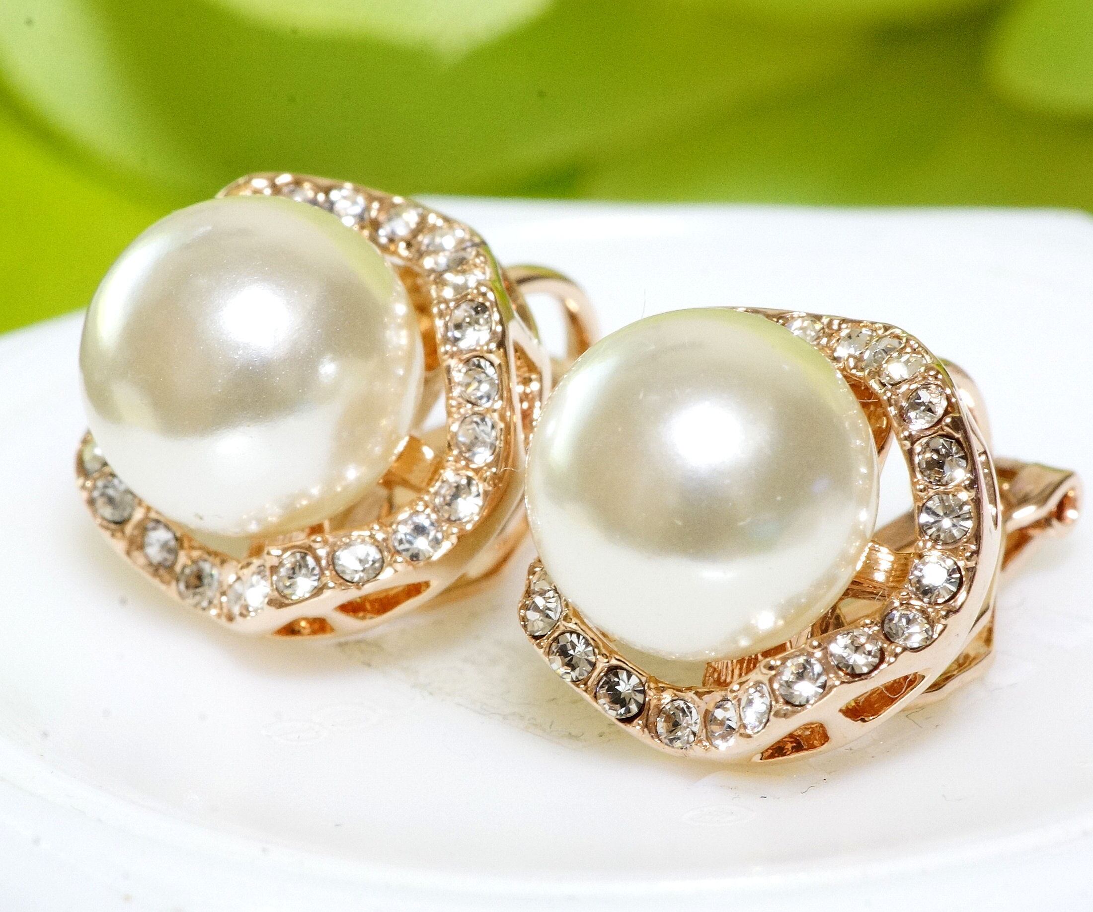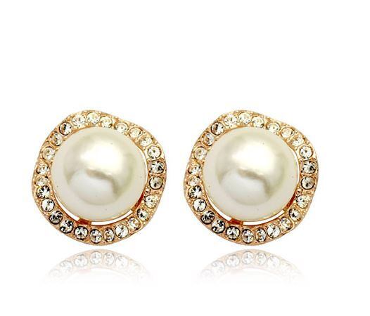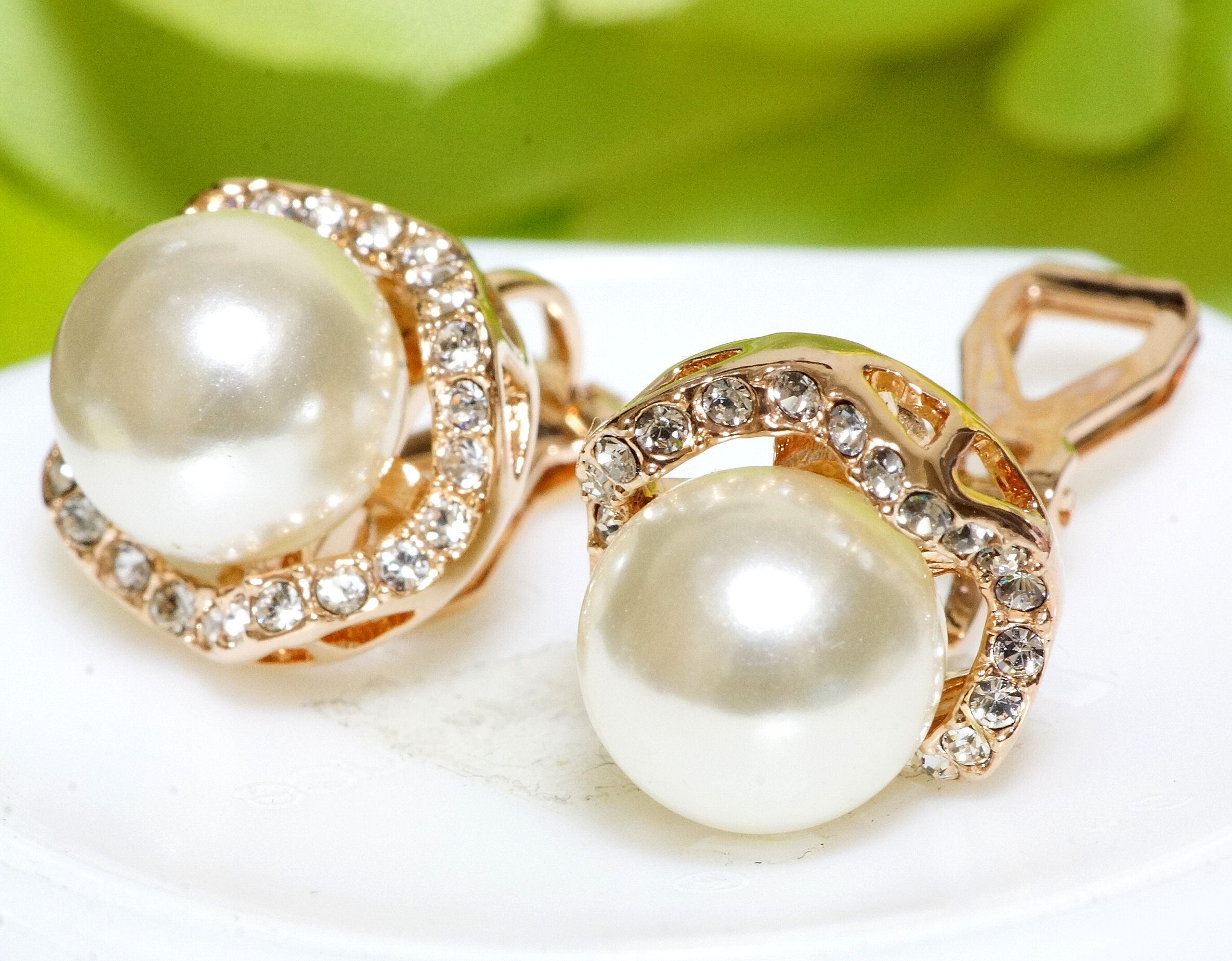 18K RGP ゴールド ダイヤ CZ パール フラワー イヤリング gp4339