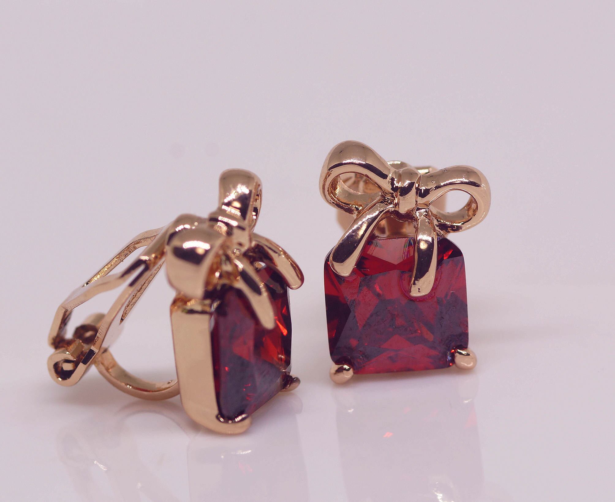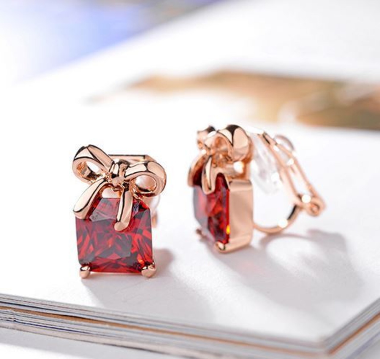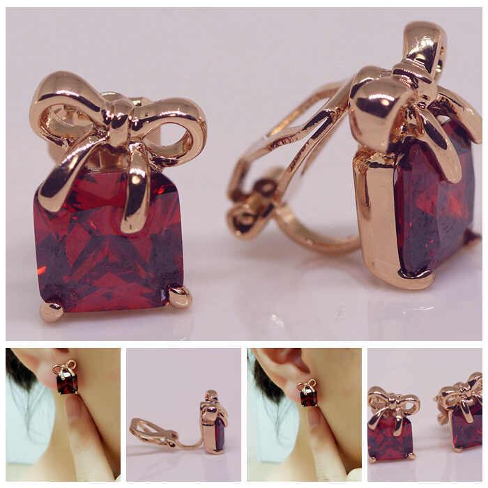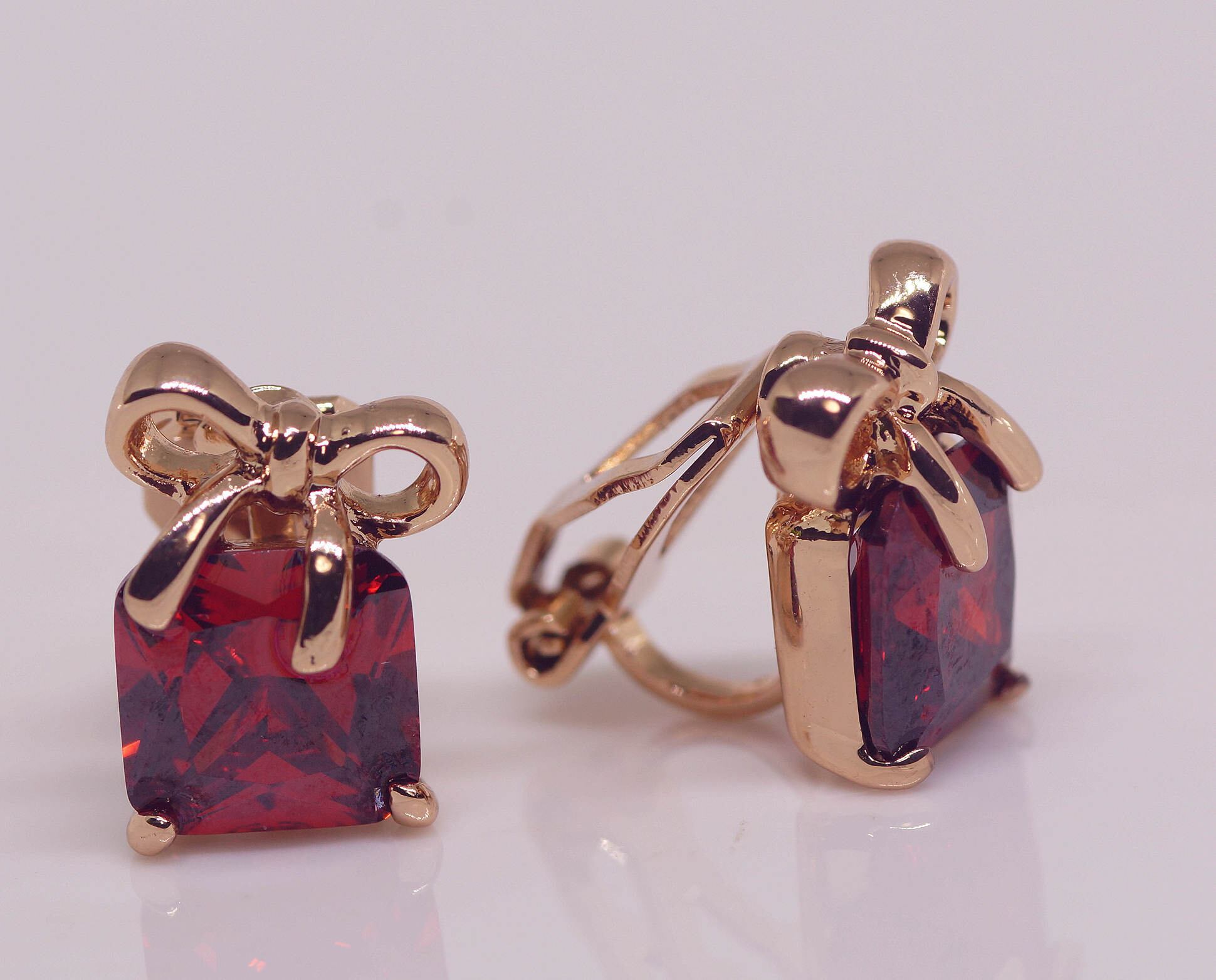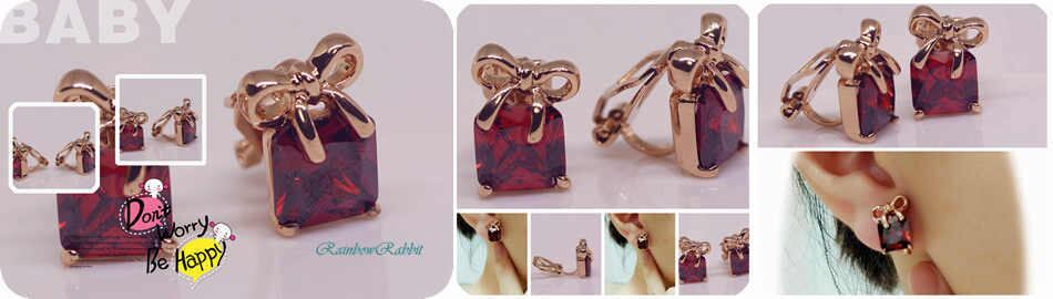 18K RGP ゴールド ダイヤ CZ レッド 彩石 リボン イヤリング gp5089