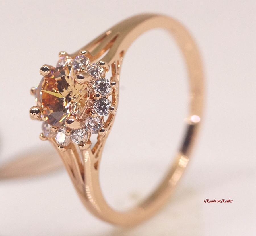 指輪 18K RGP ゴールド ダイヤ CZ オレンジ フラワー リング gu1414e