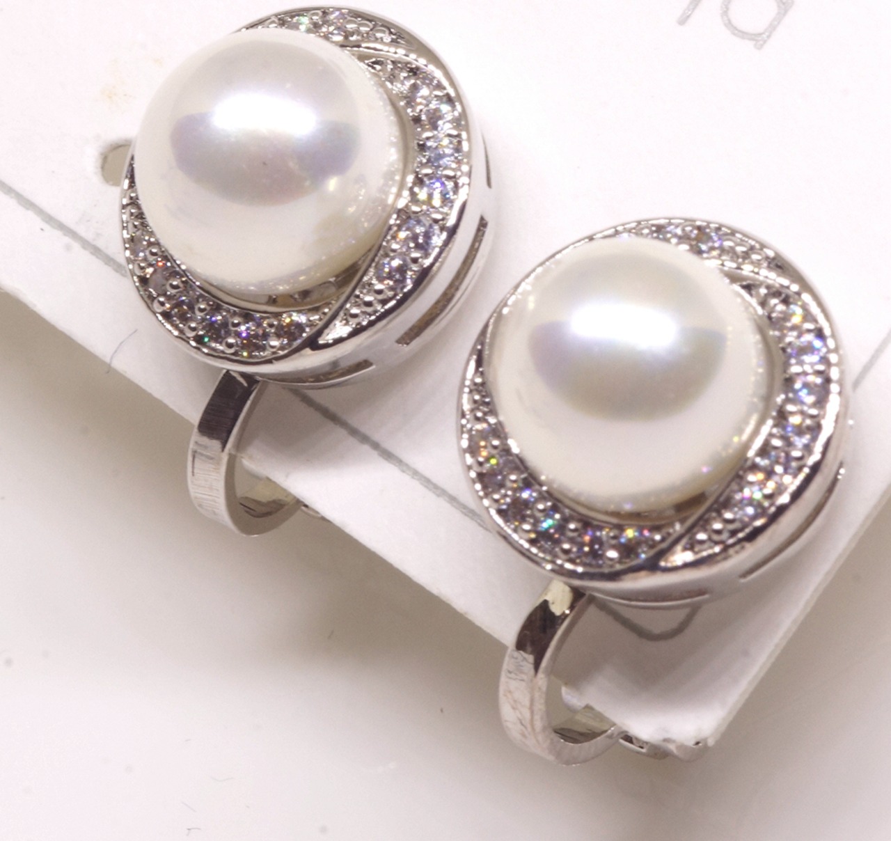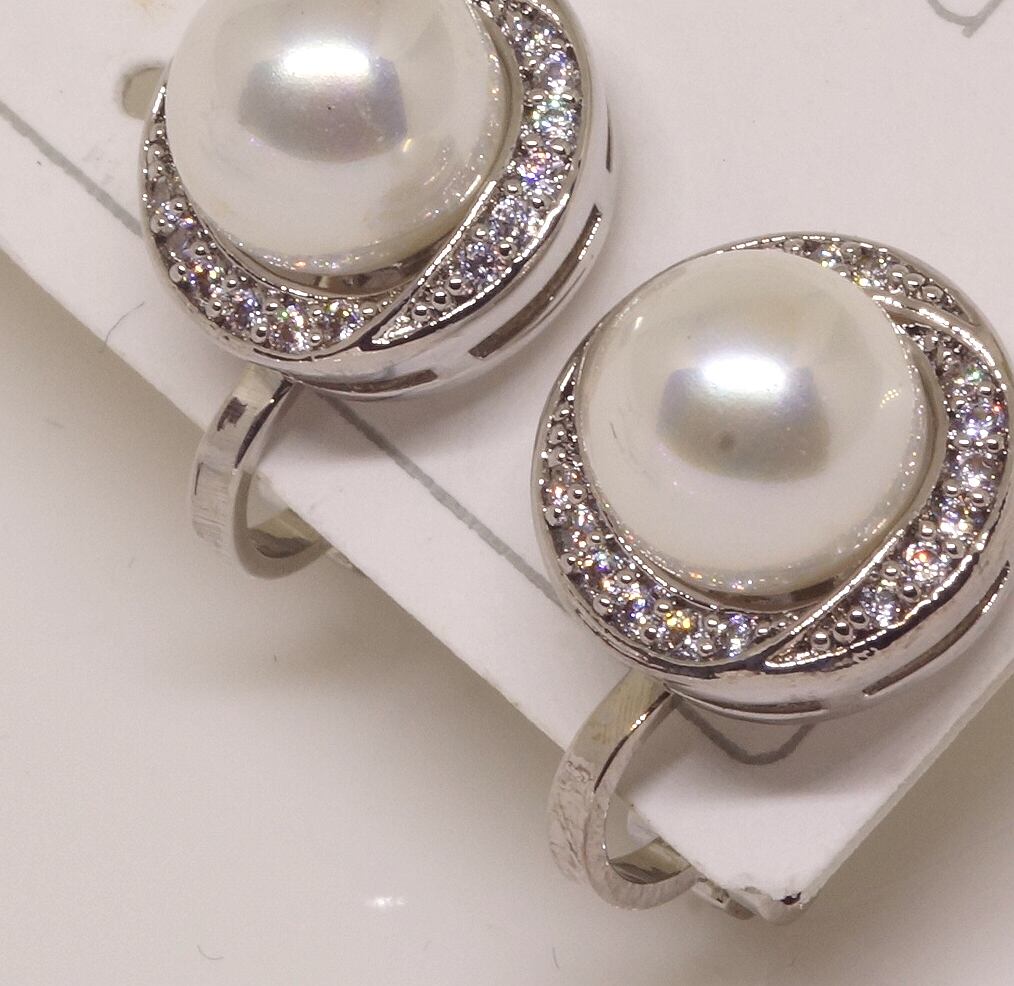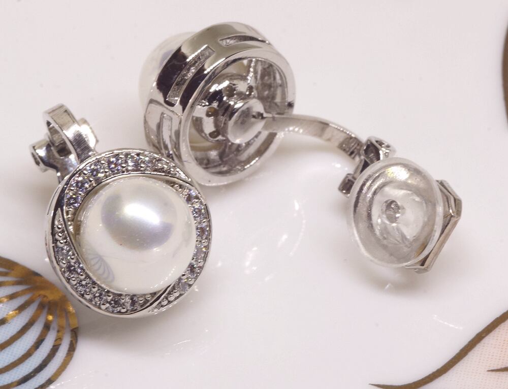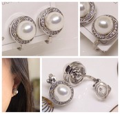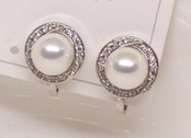 18K RGP プラチナ ダイヤ CZ フラワー パール イヤリング yp4899