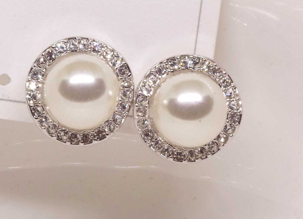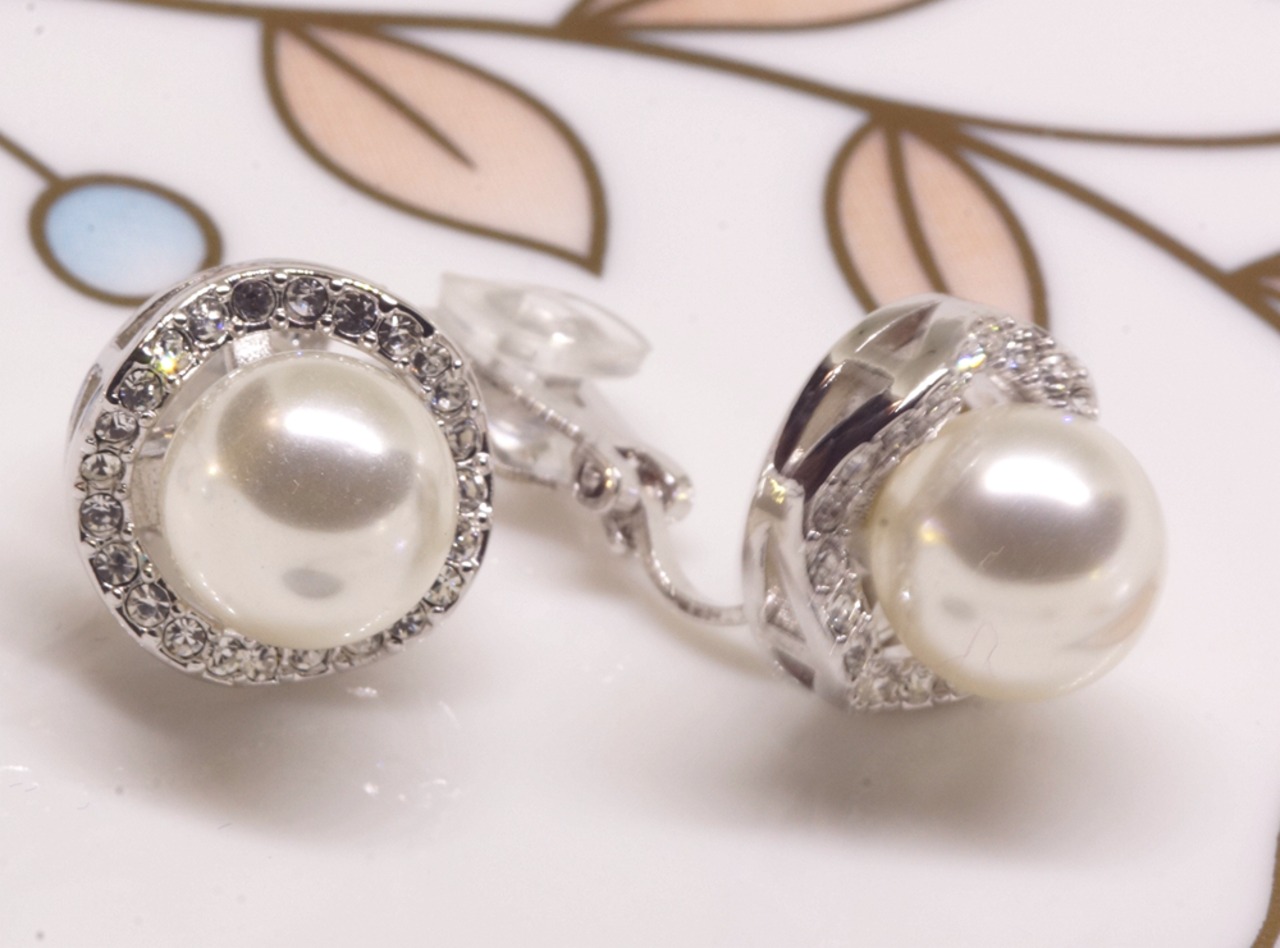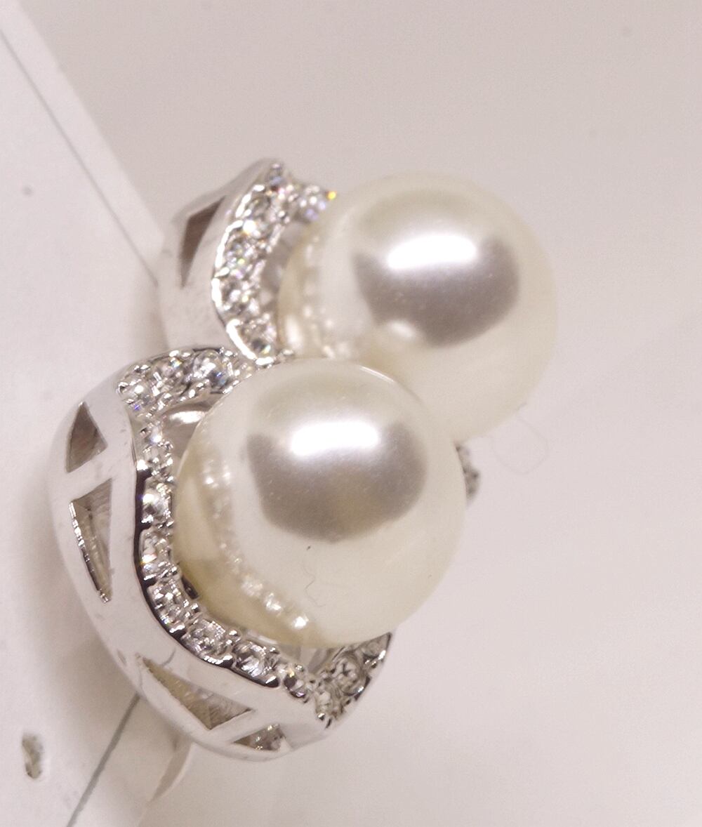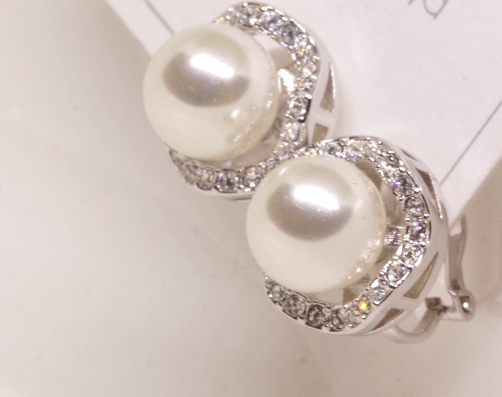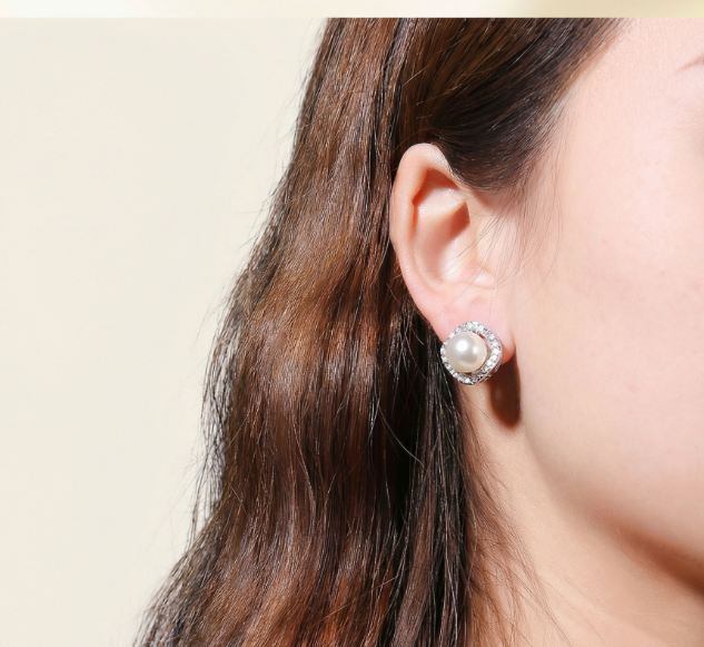 18K RGP プラチナ ダイヤ CZ フラワー パール イヤリング yp4896