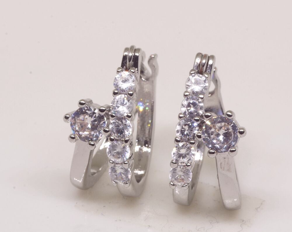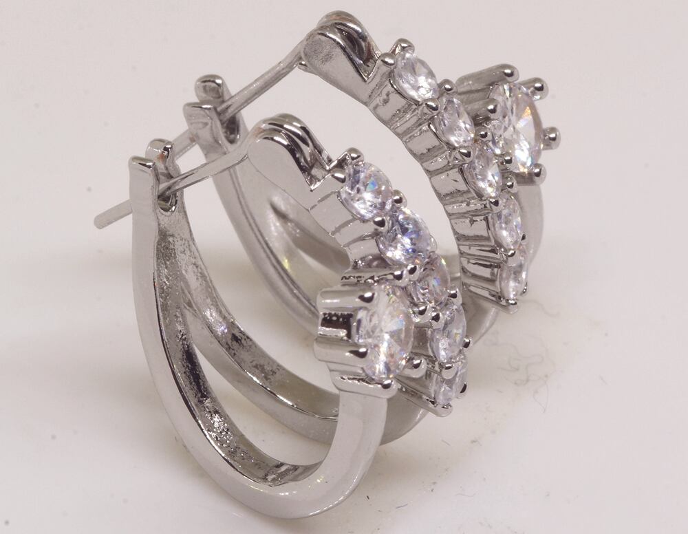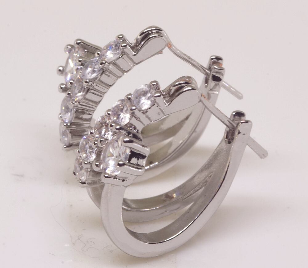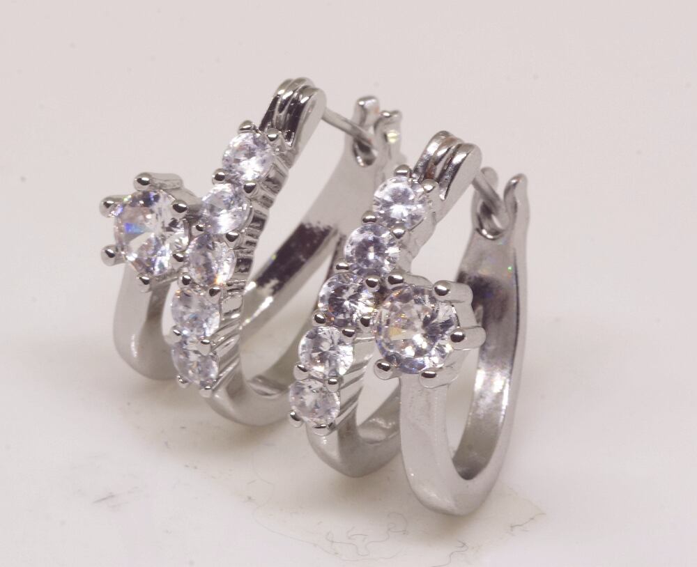 18K RGP プラチナ ダイヤ CZ リング 一粒 ピアス yp4903