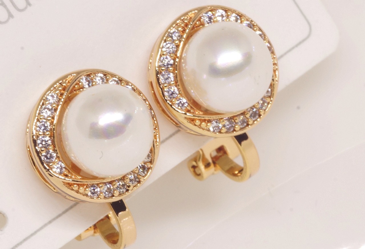18K RGP ゴールド ダイヤ CZ パール イヤリング gp5622