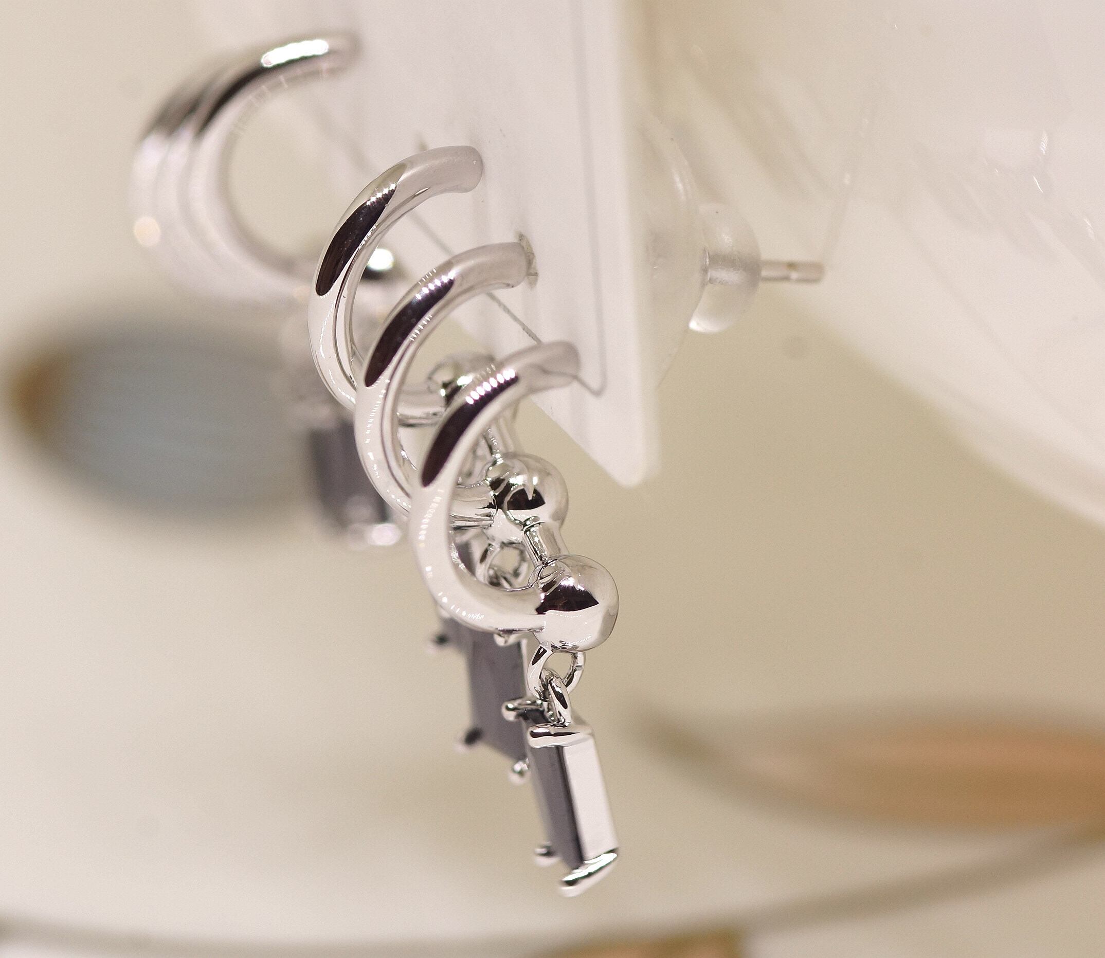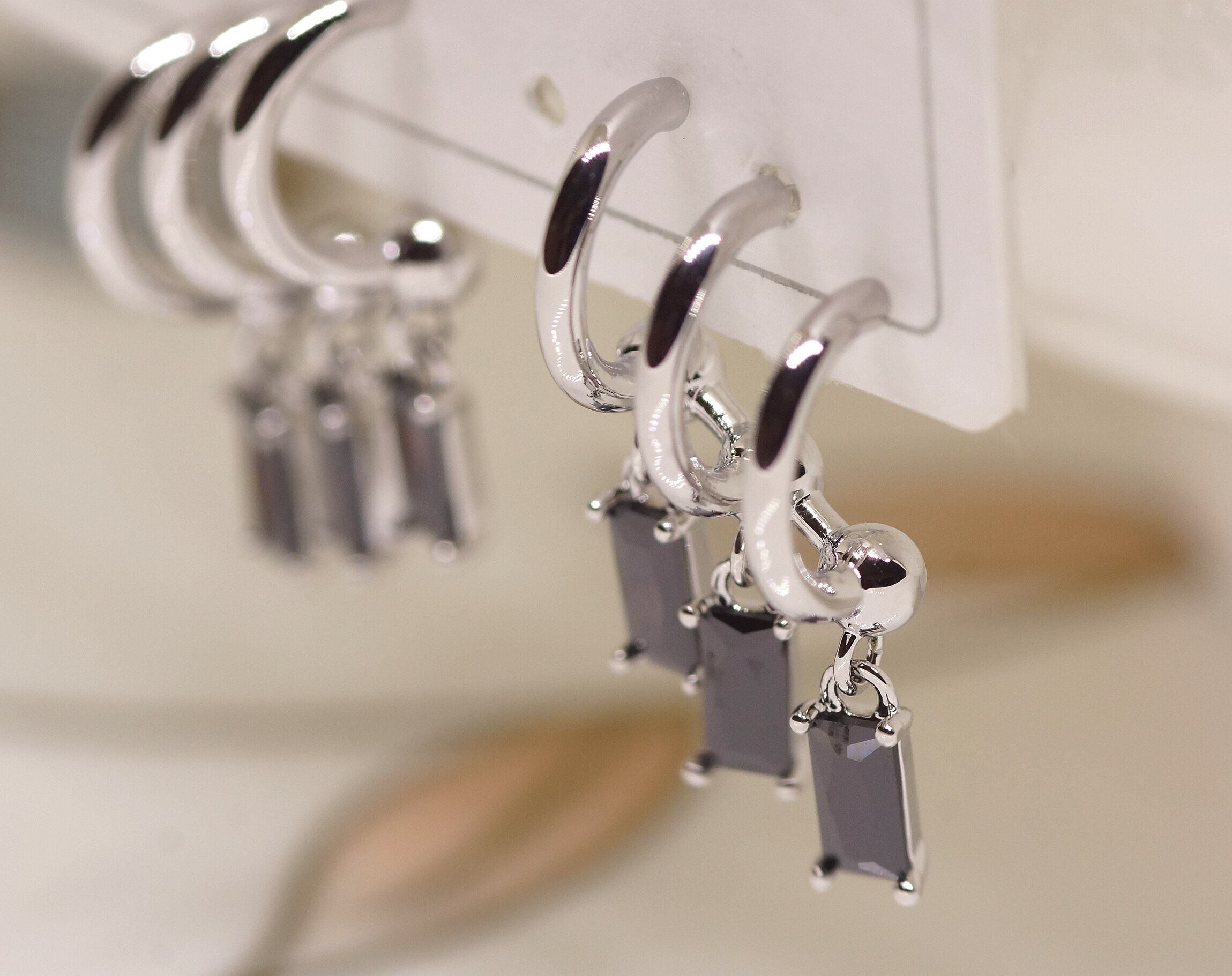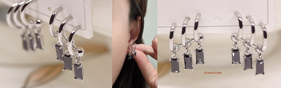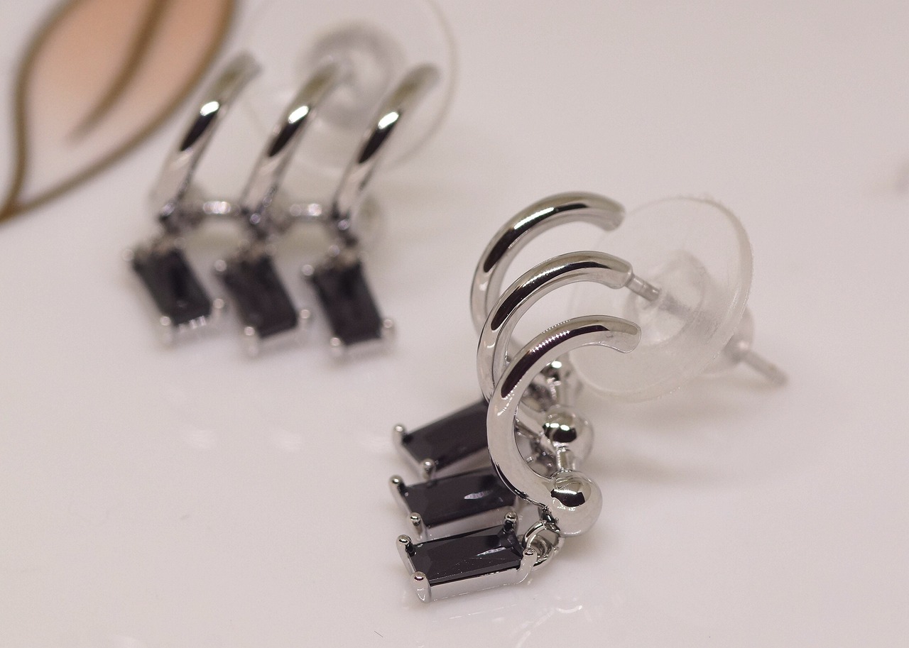 18K RGP プラチナ ダイヤ CZ ブラック 小粒 揺れ ピアス yp4868
