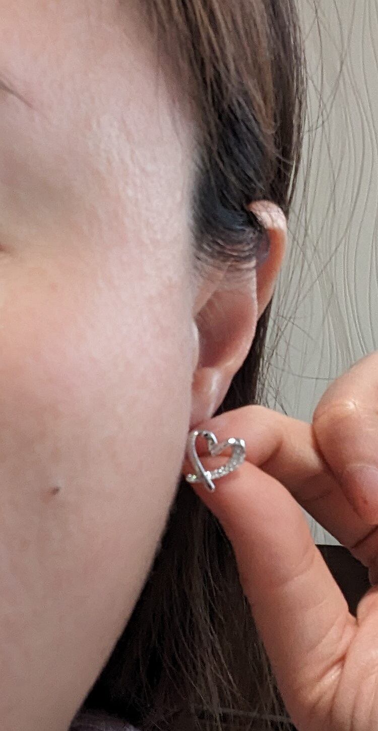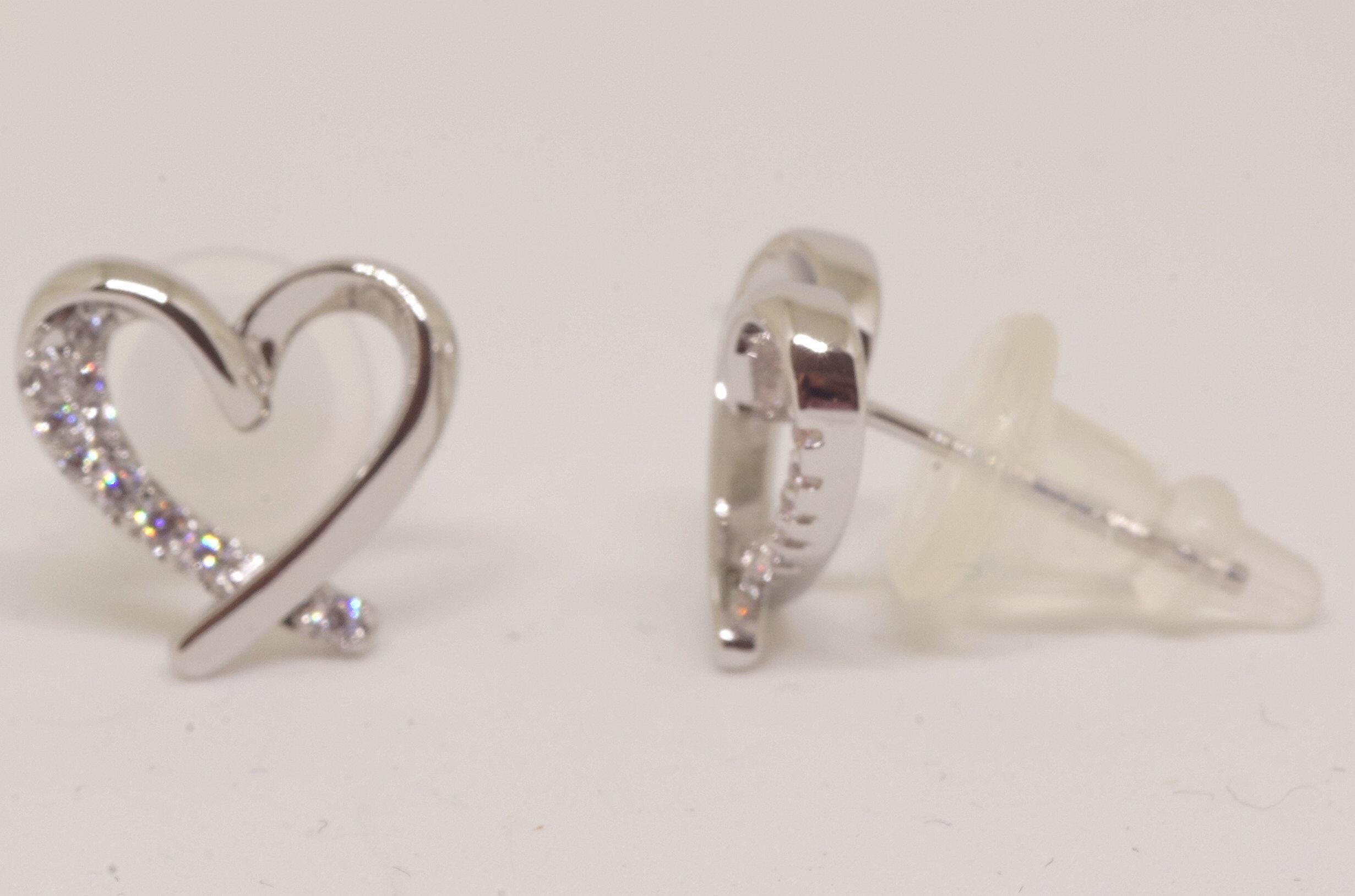 18K RGP プラチナ ダイヤ CZ ハート ピアス yp4931