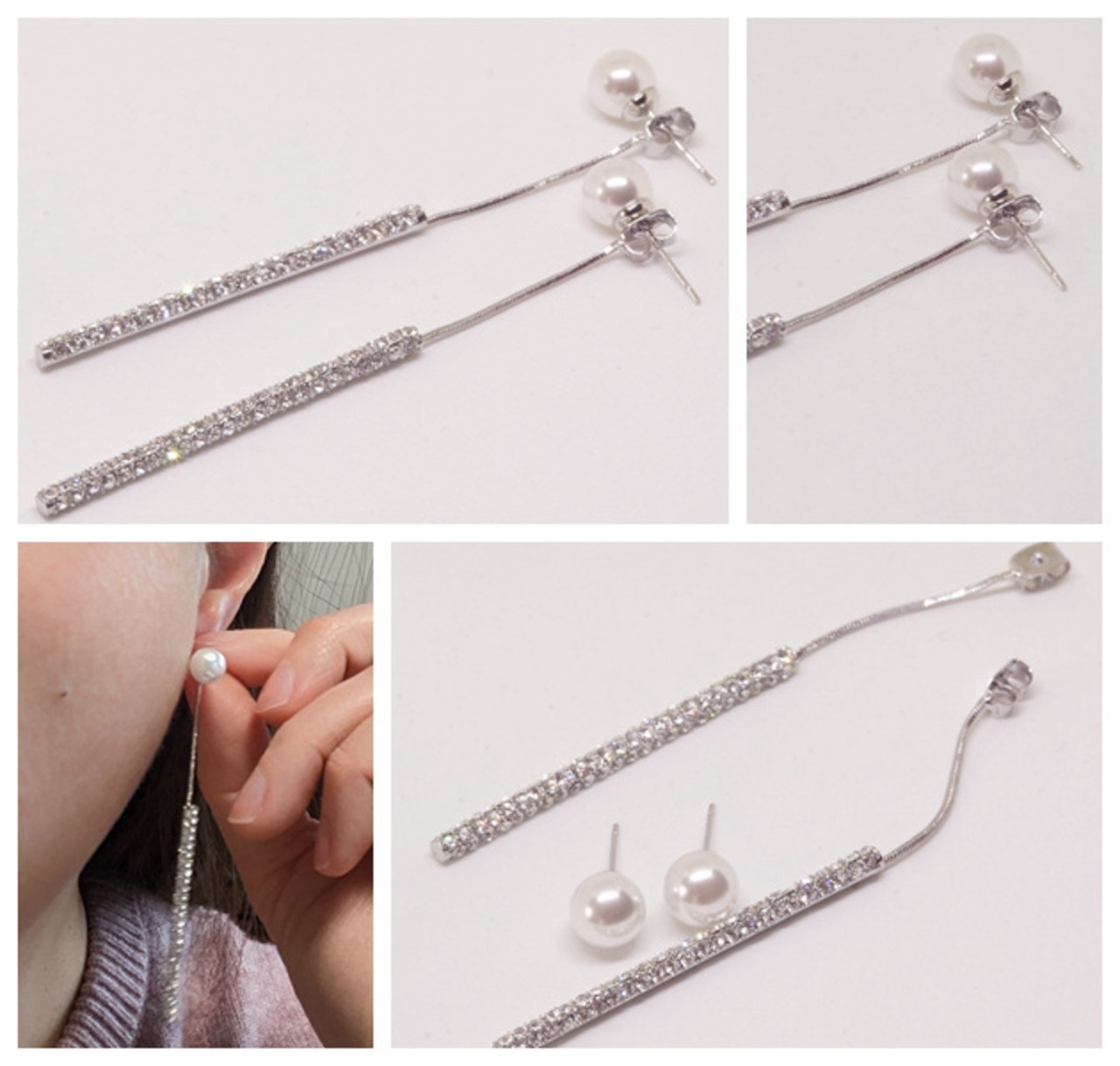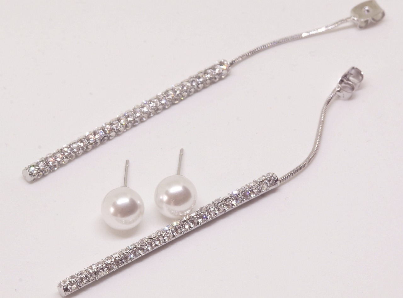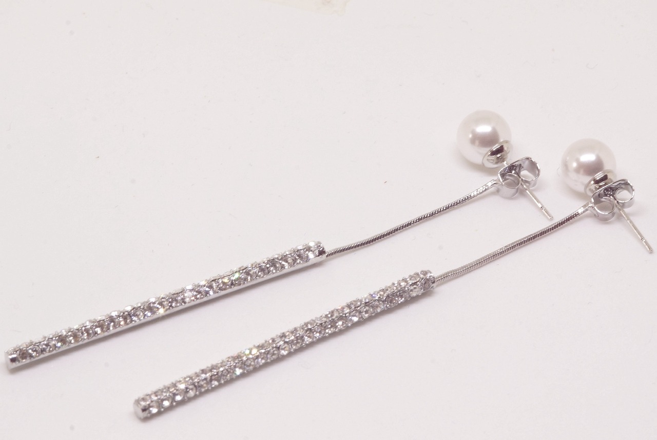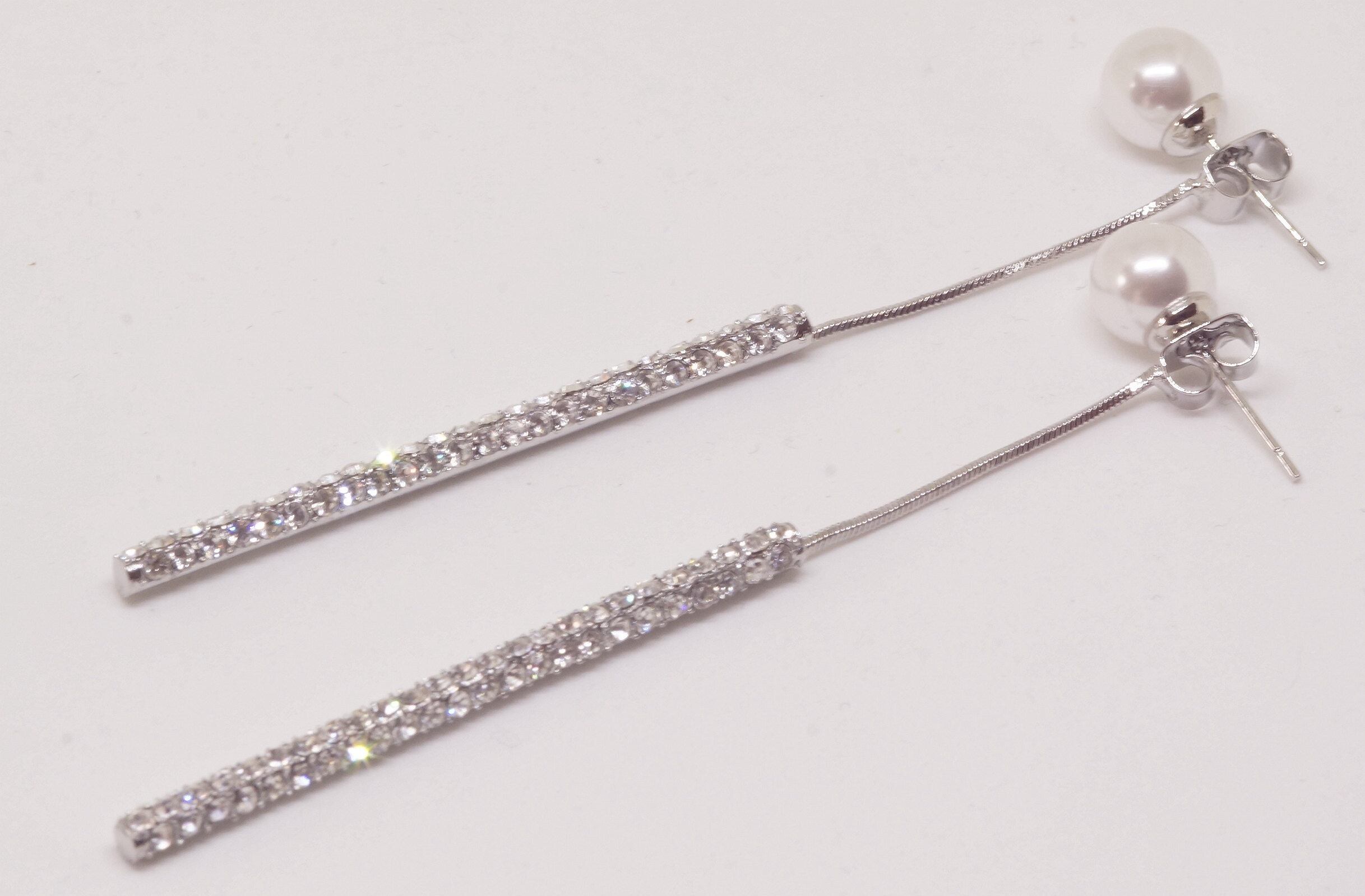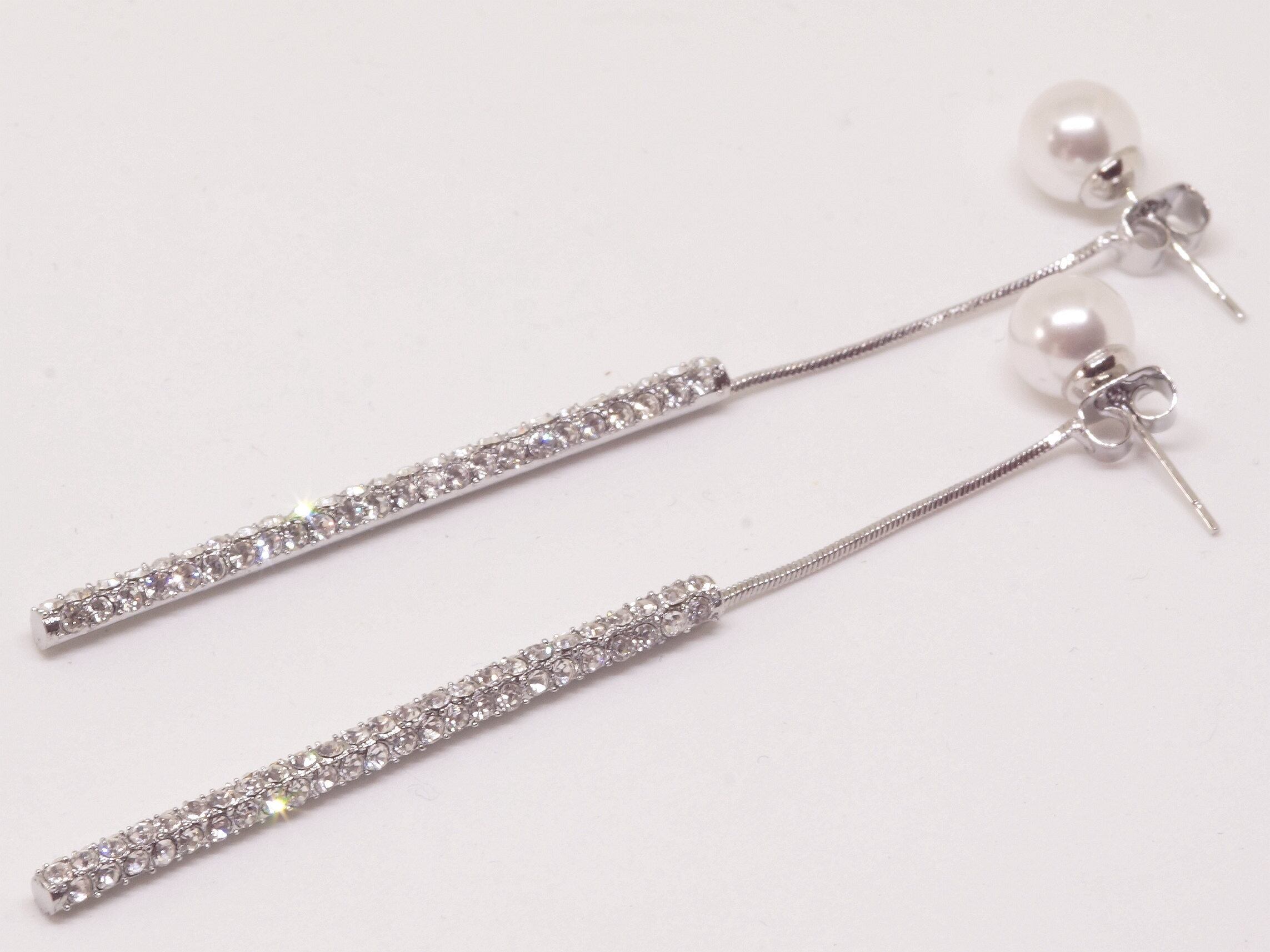 18K RGP プラチナ ダイヤ CZ パール ロング ピアス yp4934