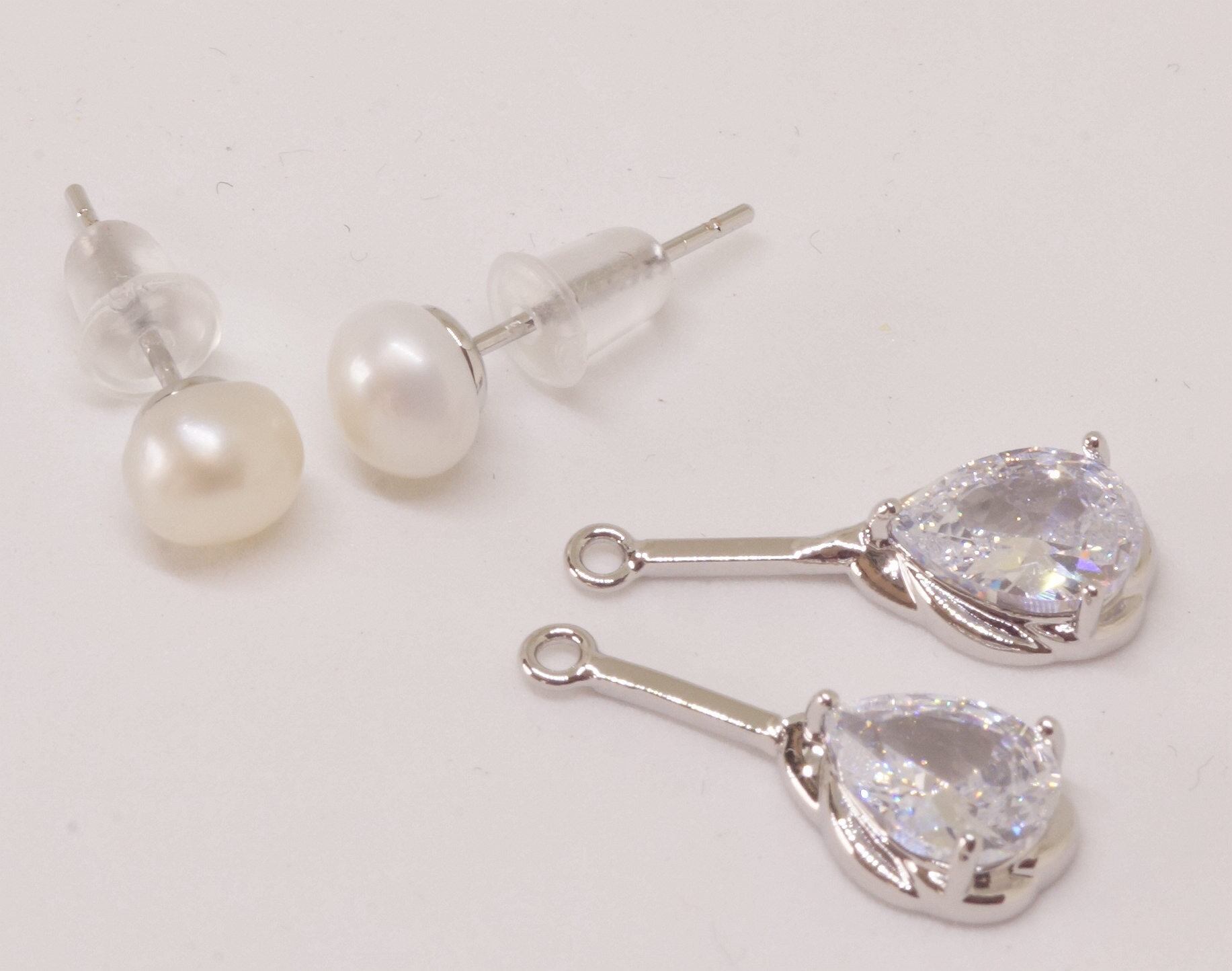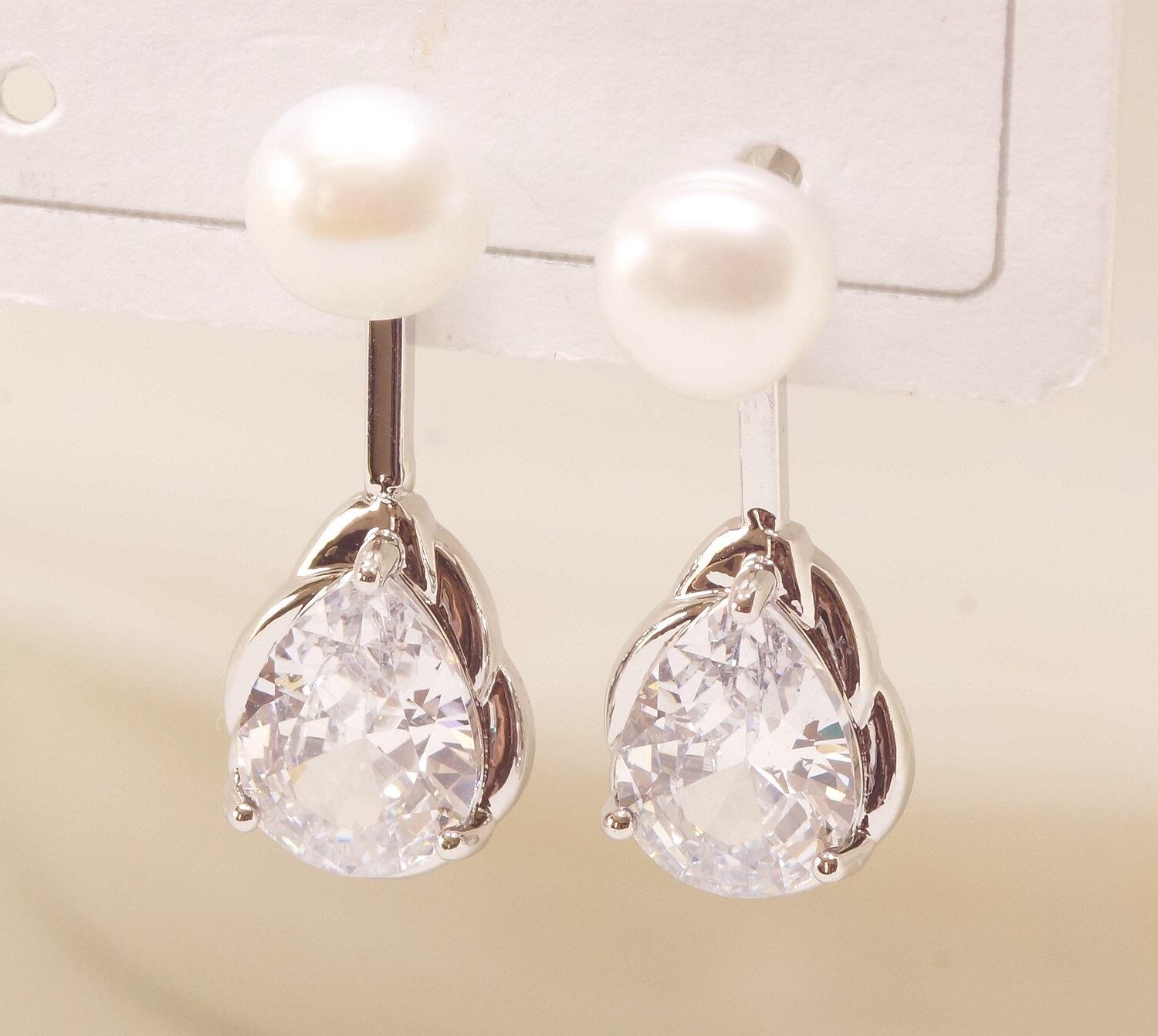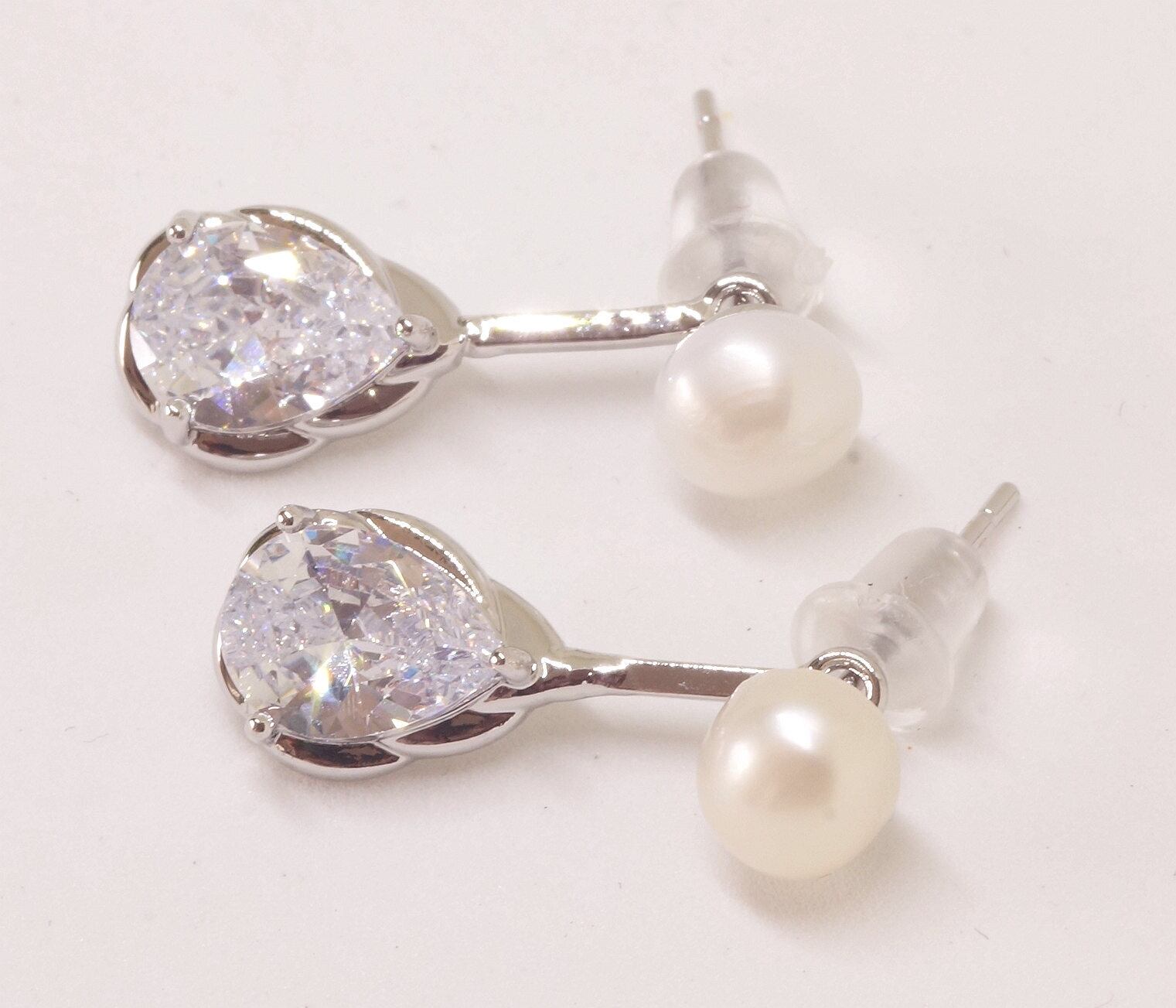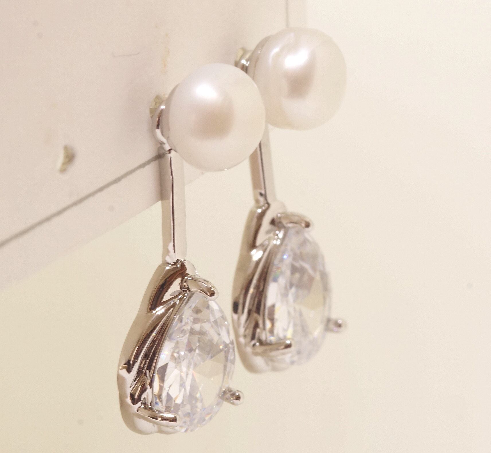 18K RGP プラチナ ダイヤ CZ パール 雫揺れ ピアス yp4915