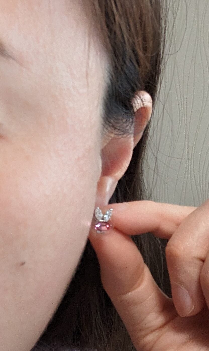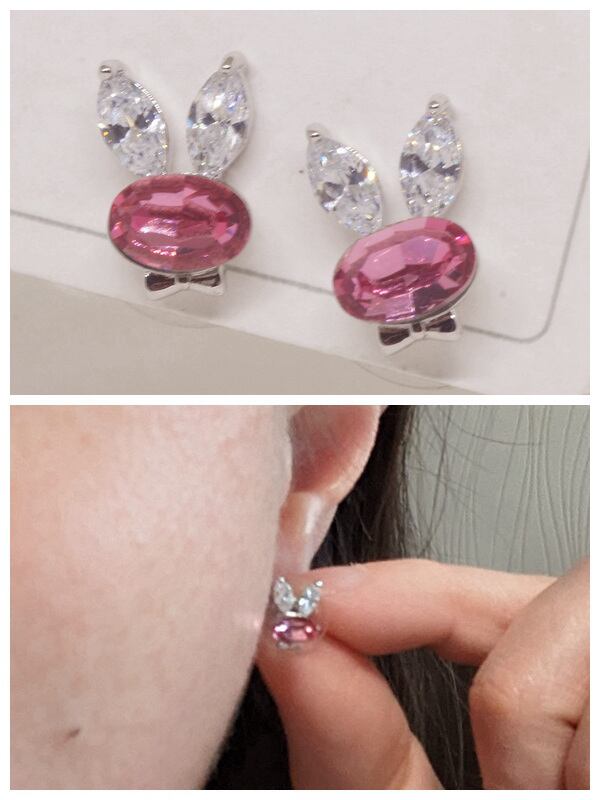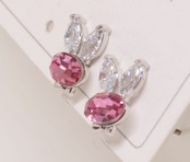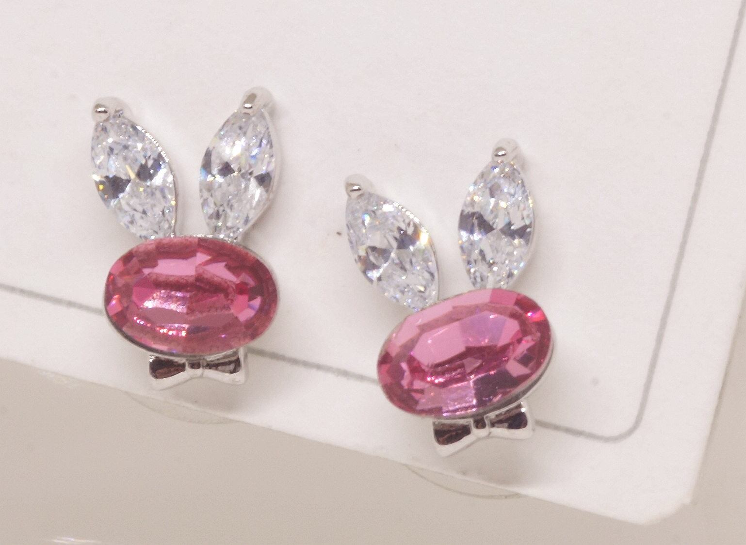 18K RGP プラチナ ダイヤ CZ ピンク ウサギ ピアス yp4942