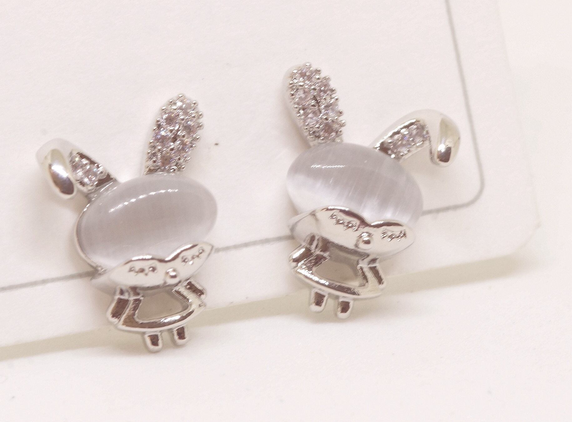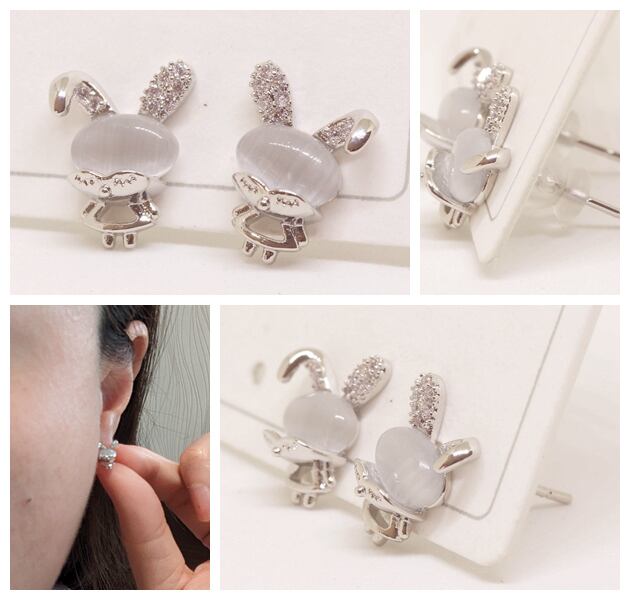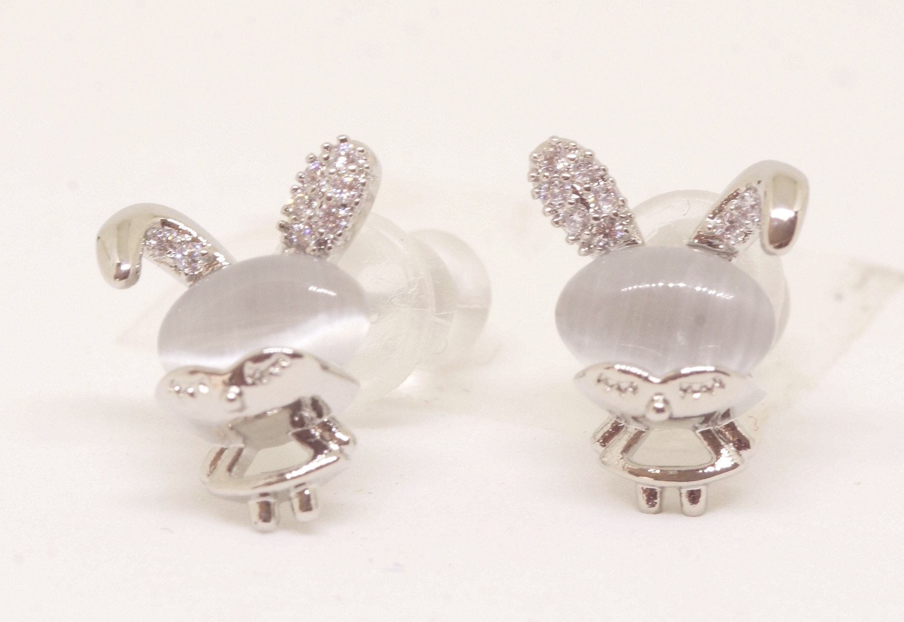 18K RGP プラチナ ダイヤ CZ ウサギ ピアス yp4926