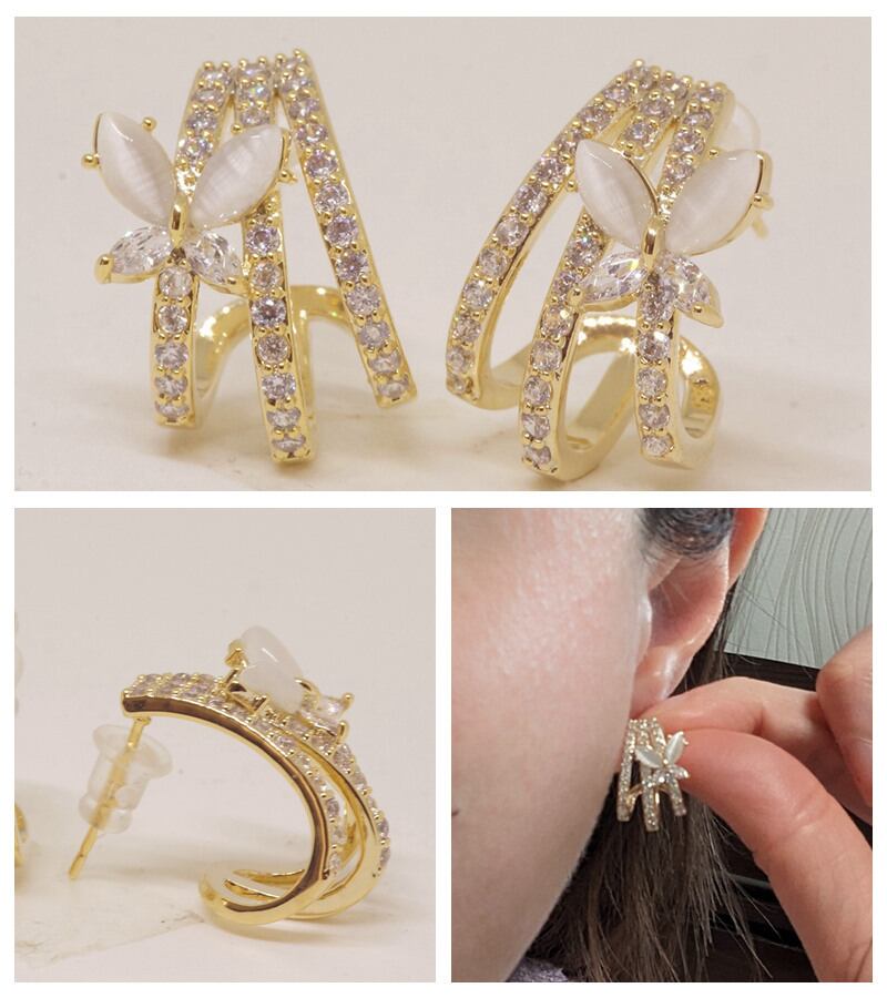 18K RGP ゴールド ダイヤ CZ 蝶々 フラワー ピアス gp5659