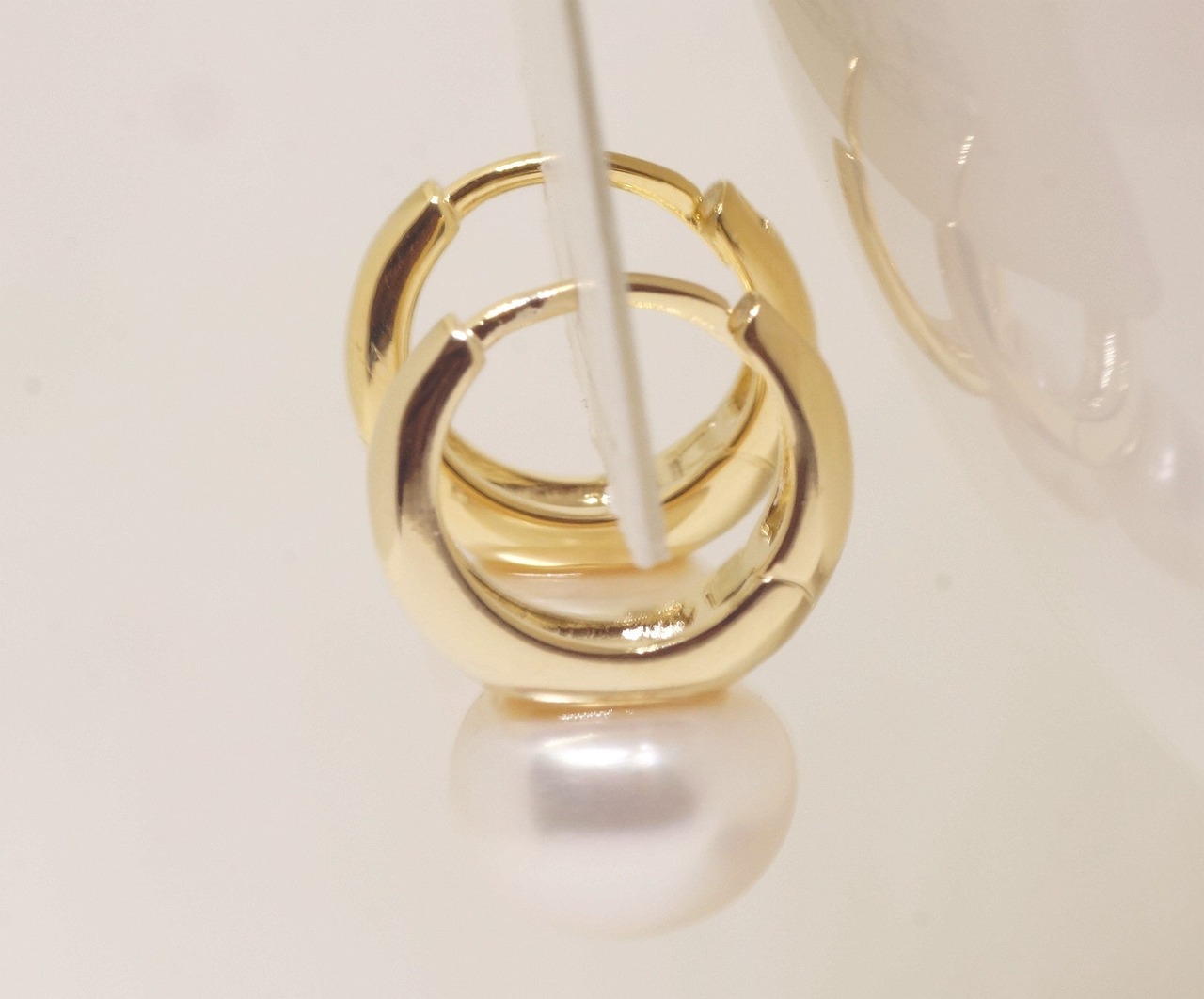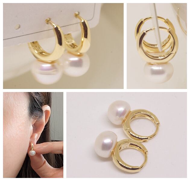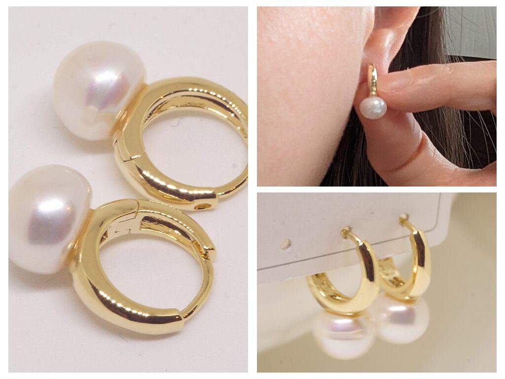 18K RGP ゴールド パール リング ピアス gp5633 デザインサイズ:約横8mm*縦17mm 真鍮(Brass):ロジウム加工、18Kゴールド仕上げ