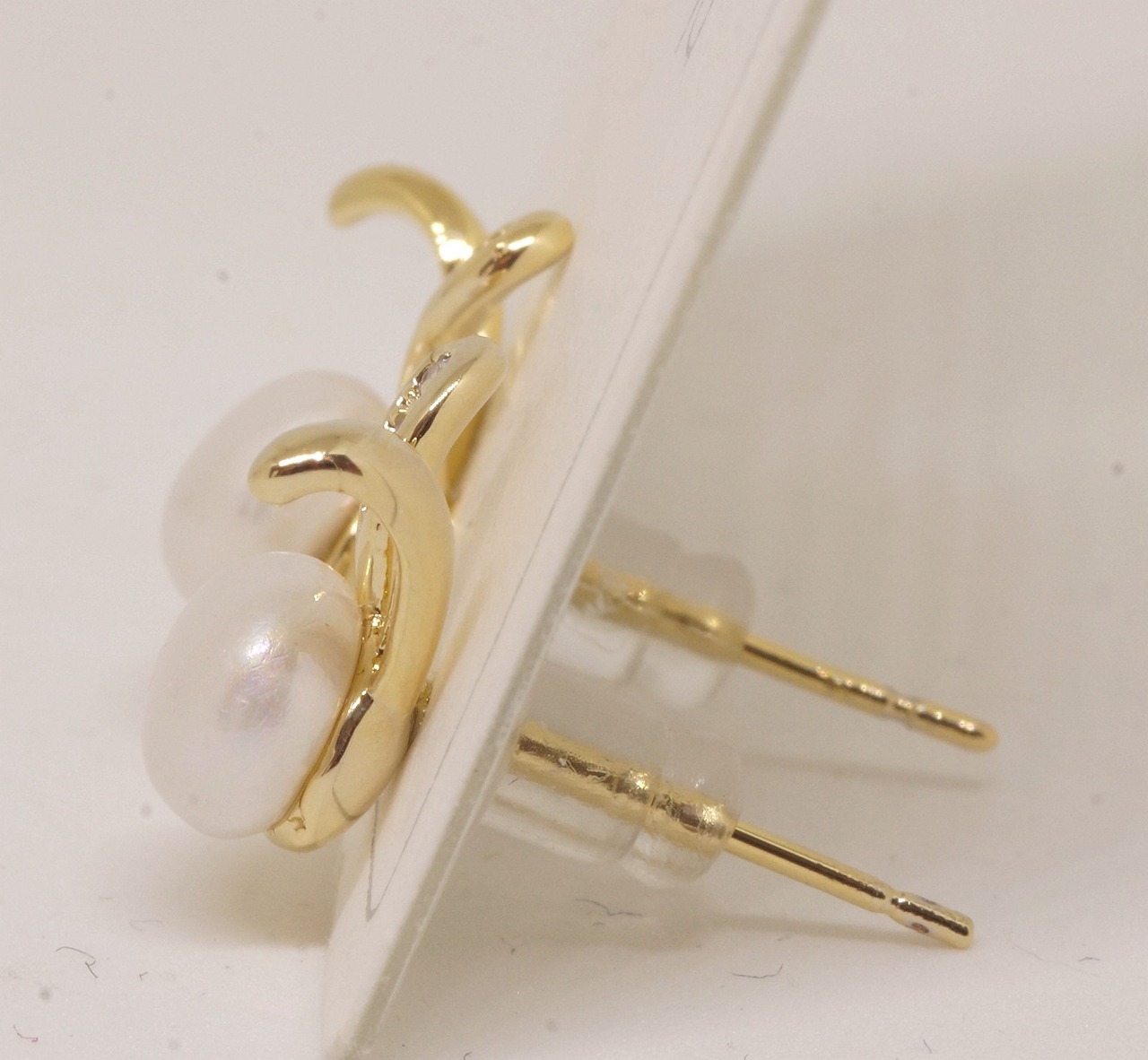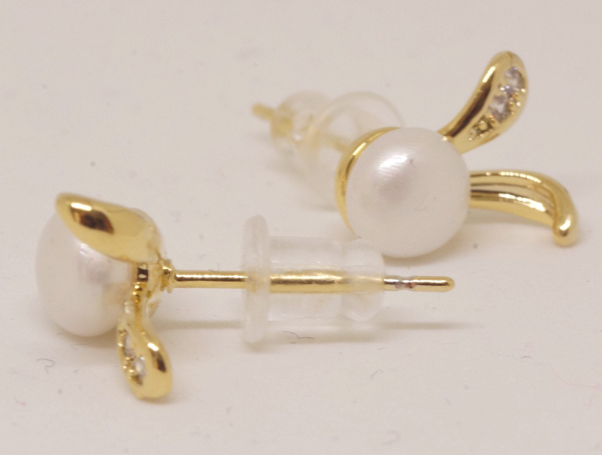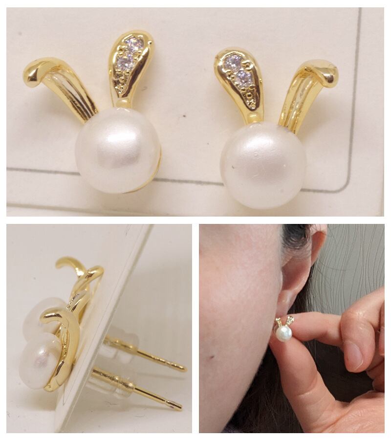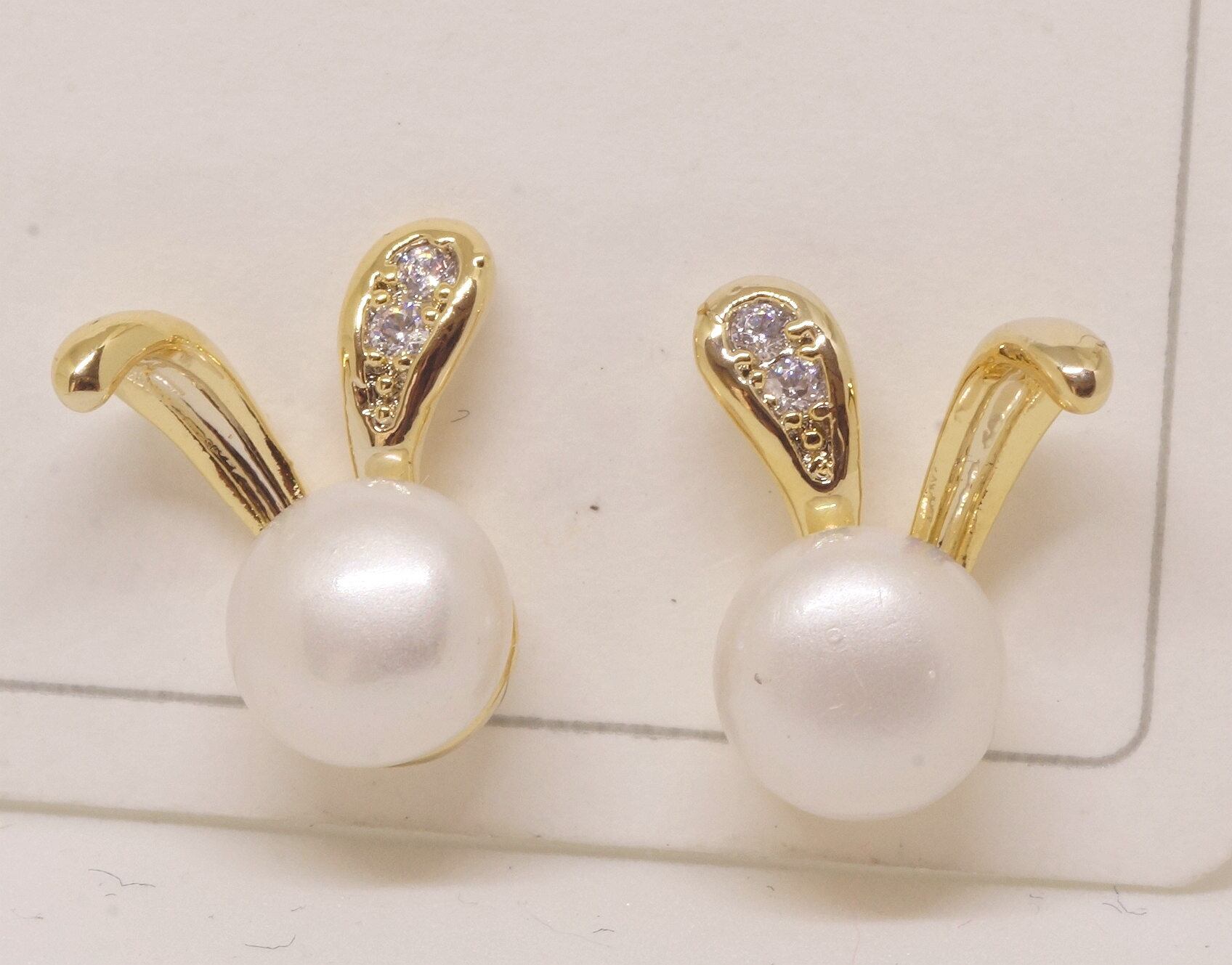 18K RGP ゴールド ダイヤ CZ ウサギ パール ピアス gp5657