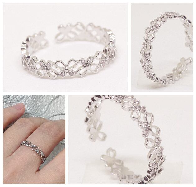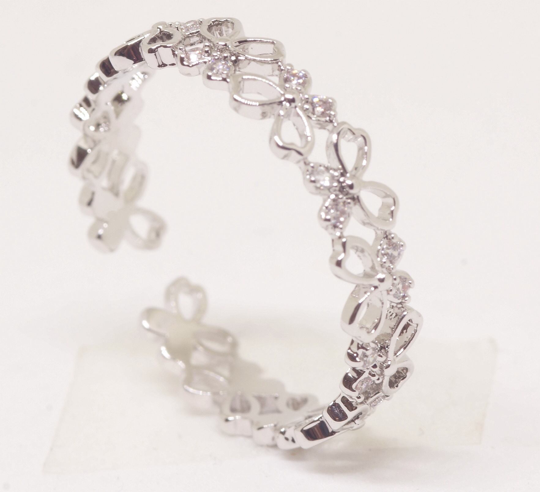 18K RGP プラチナ ダイヤ CZ フラワー リング yu1146e