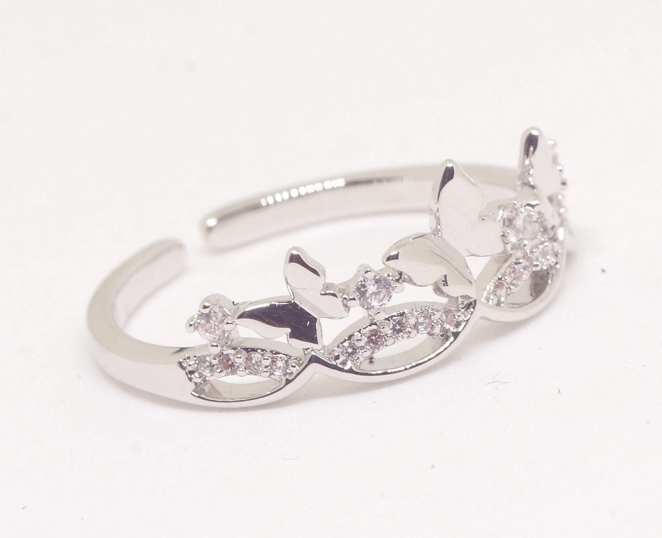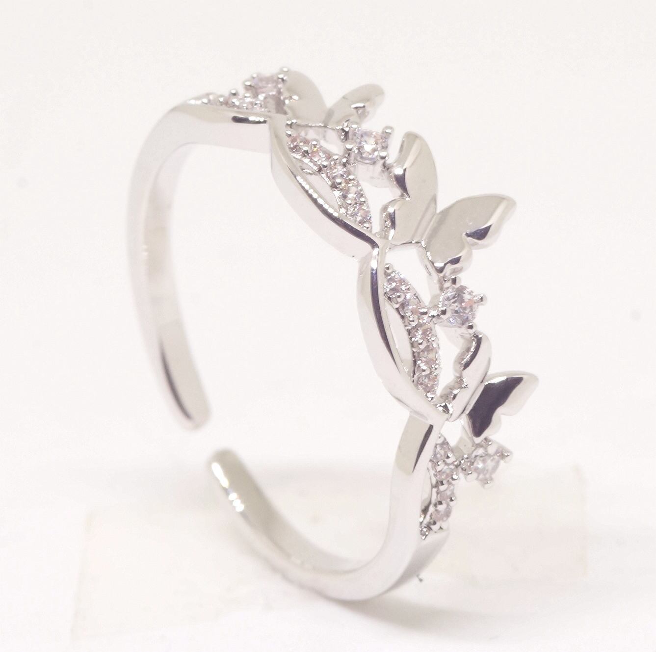 18K RGP プラチナ ダイヤ CZ 蝶々 リング yu1148e