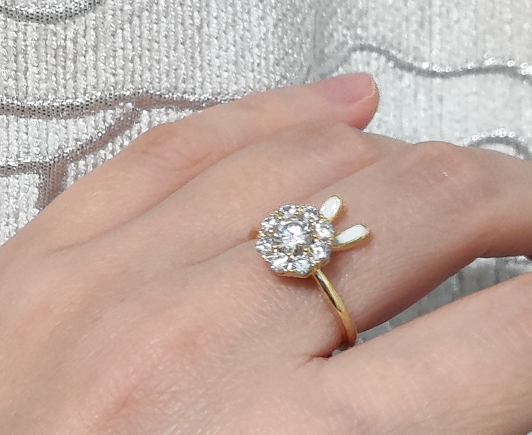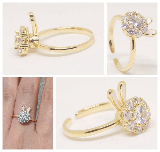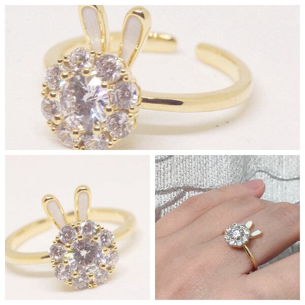 18K RGP ゴールド ダイヤ CZ 回転 ウサギ リング gu1459e