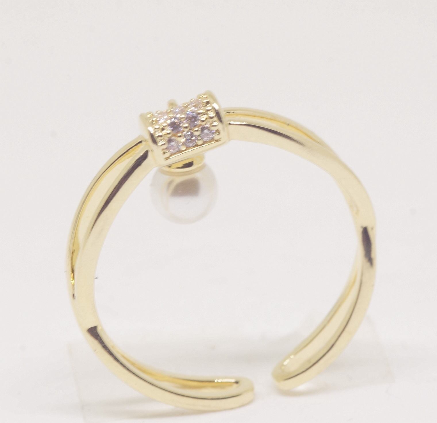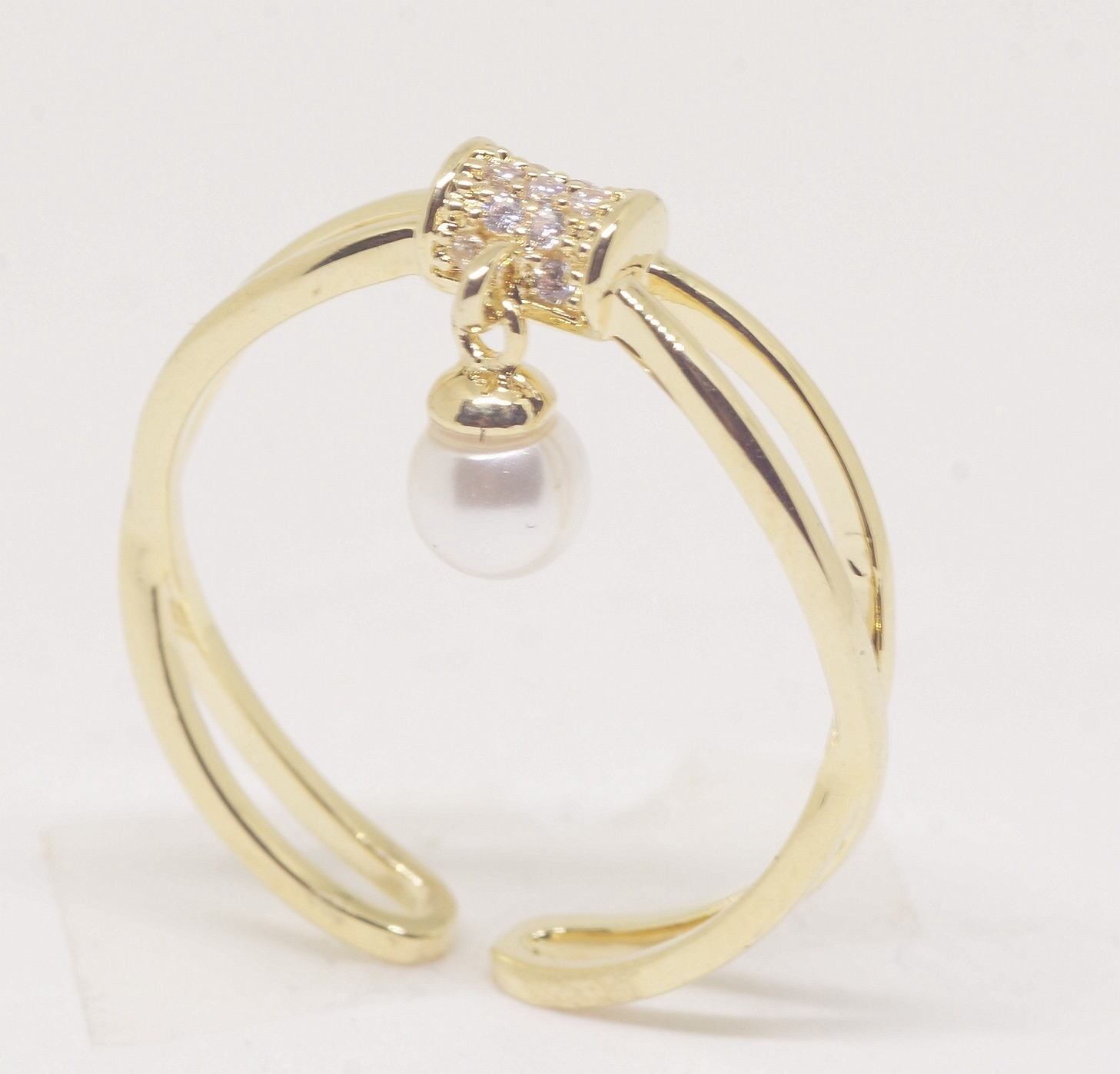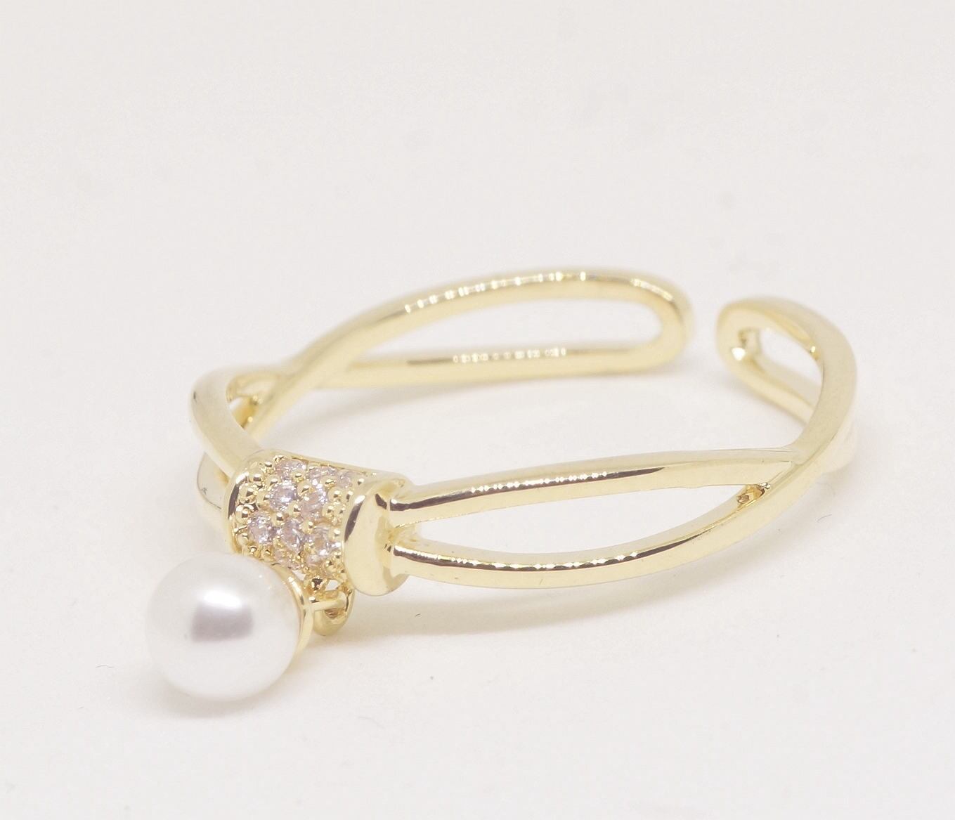 18K RGP ゴールド ダイヤ CZ パール 揺れ リング gu1468e
