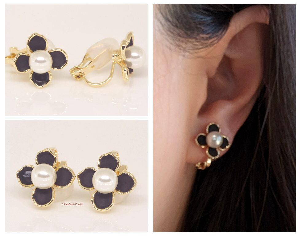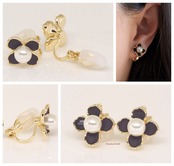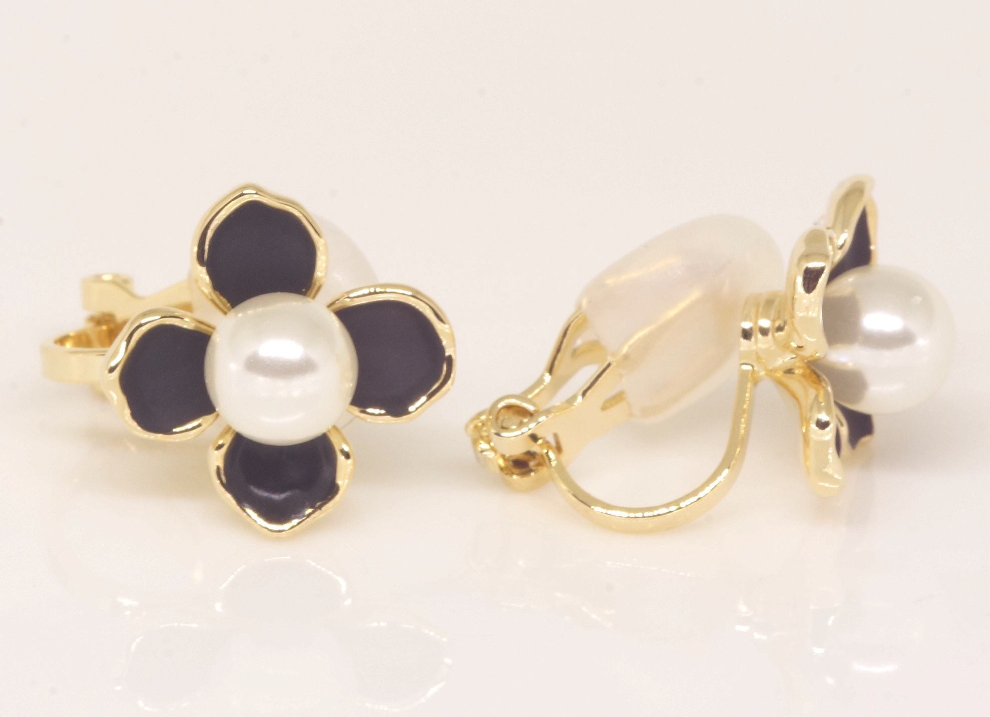 18K RGP ゴールド ブラック フラワー パール イヤリング gp5629