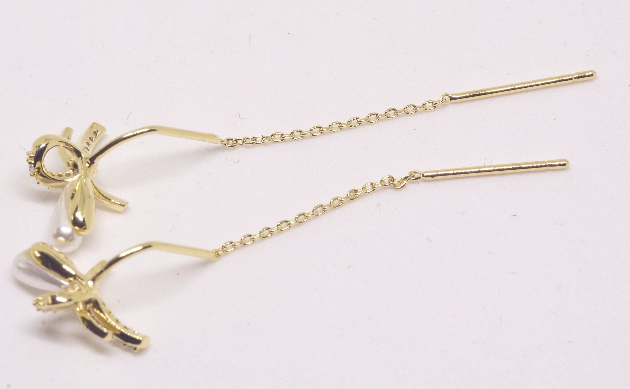 18K RGP ゴールド ダイヤ CZ リボン ピアス gp5652