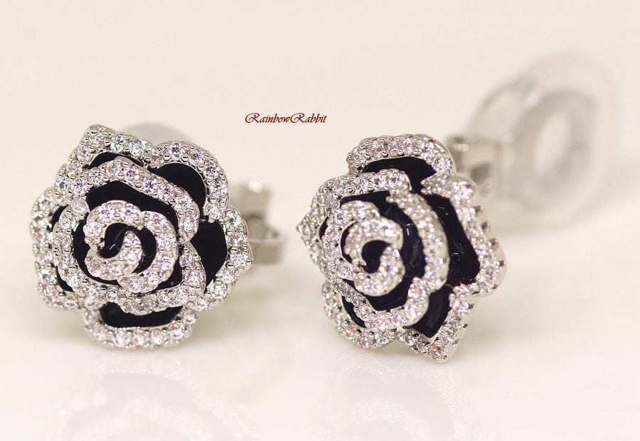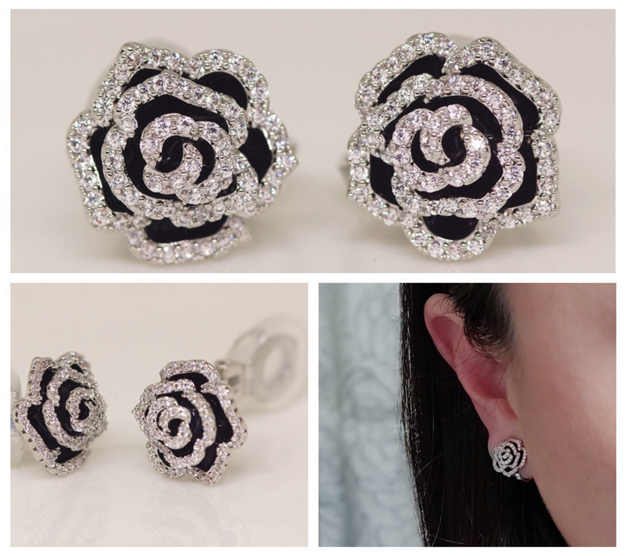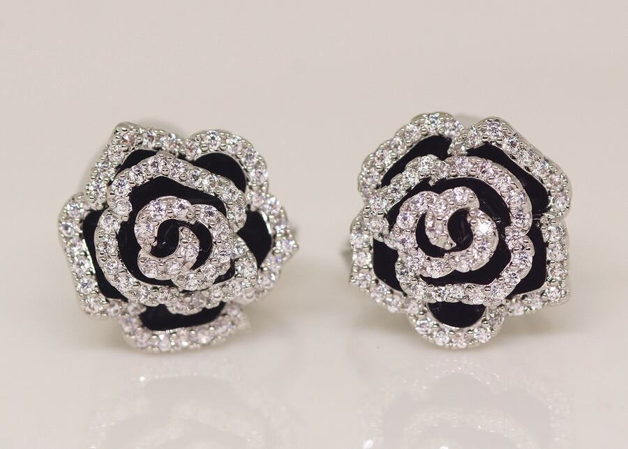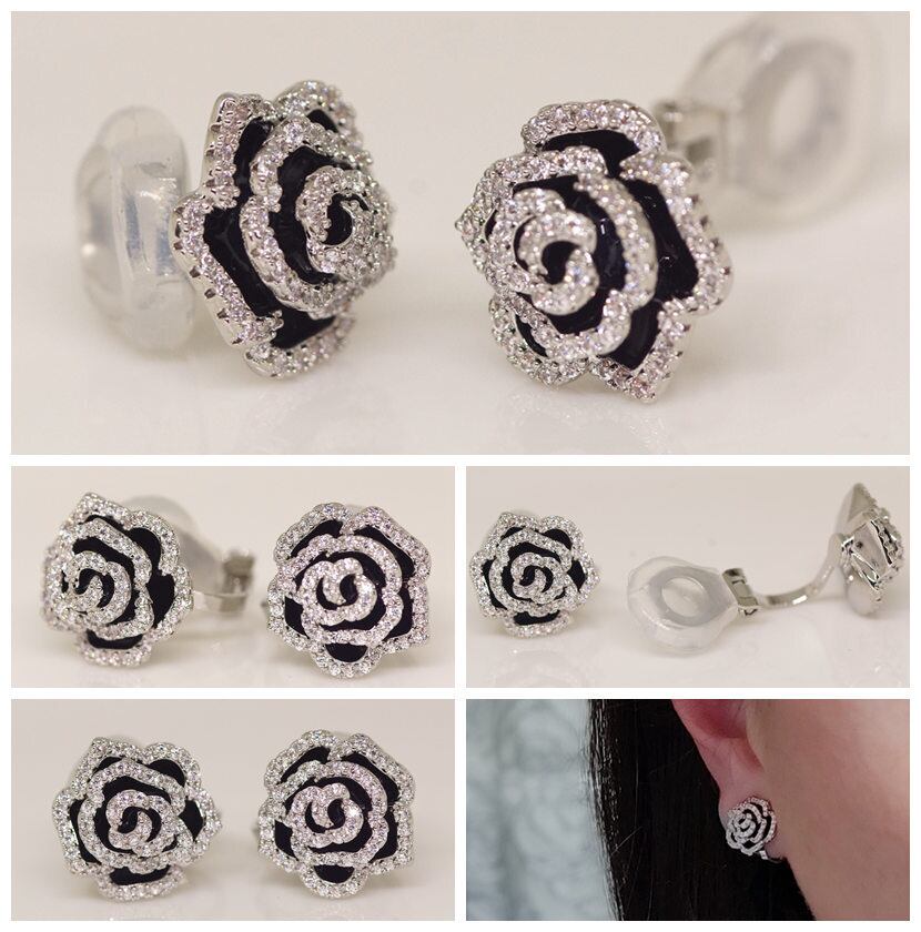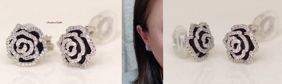 18K RGP プラチナ ダイヤ CZ バラ イヤリング yp4854