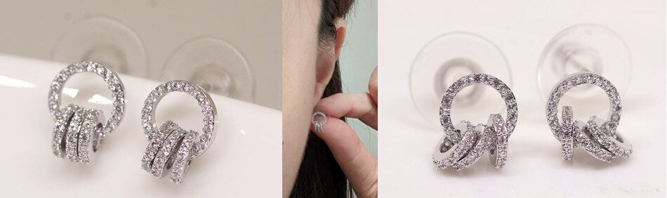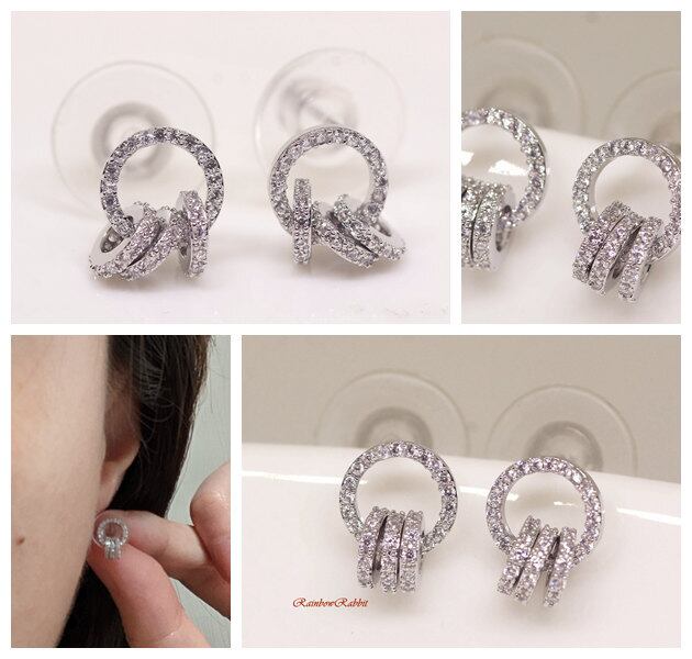 18K RGP プラチナ ダイヤ CZ リング ピアス yp4883