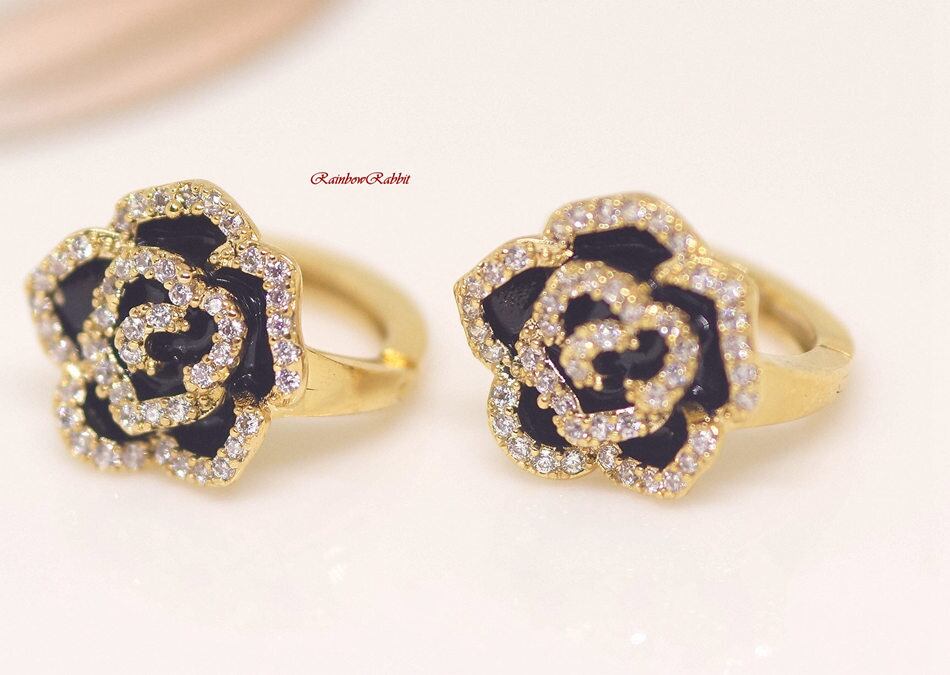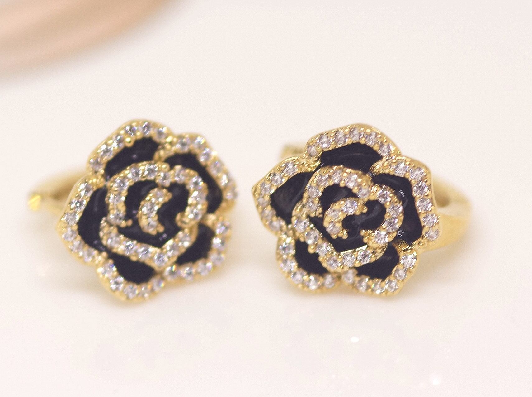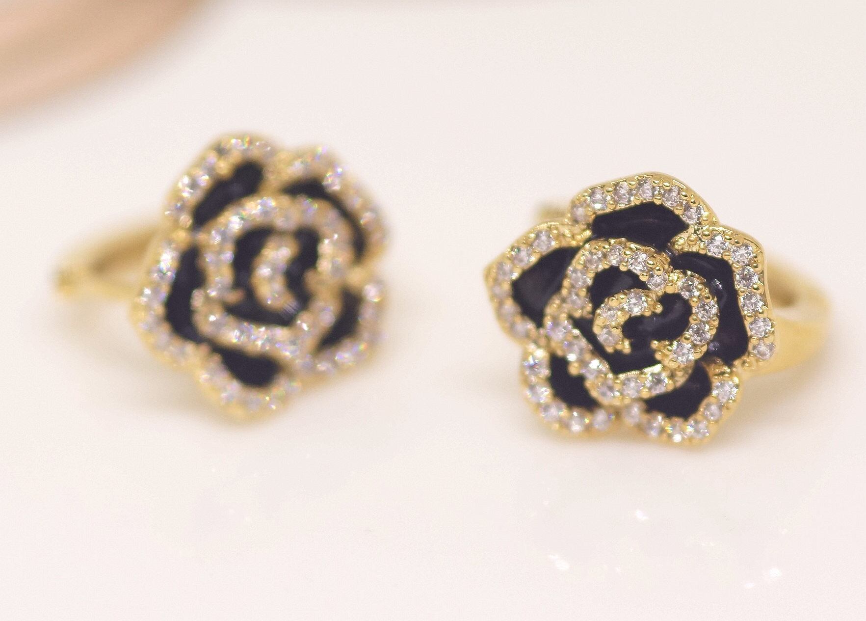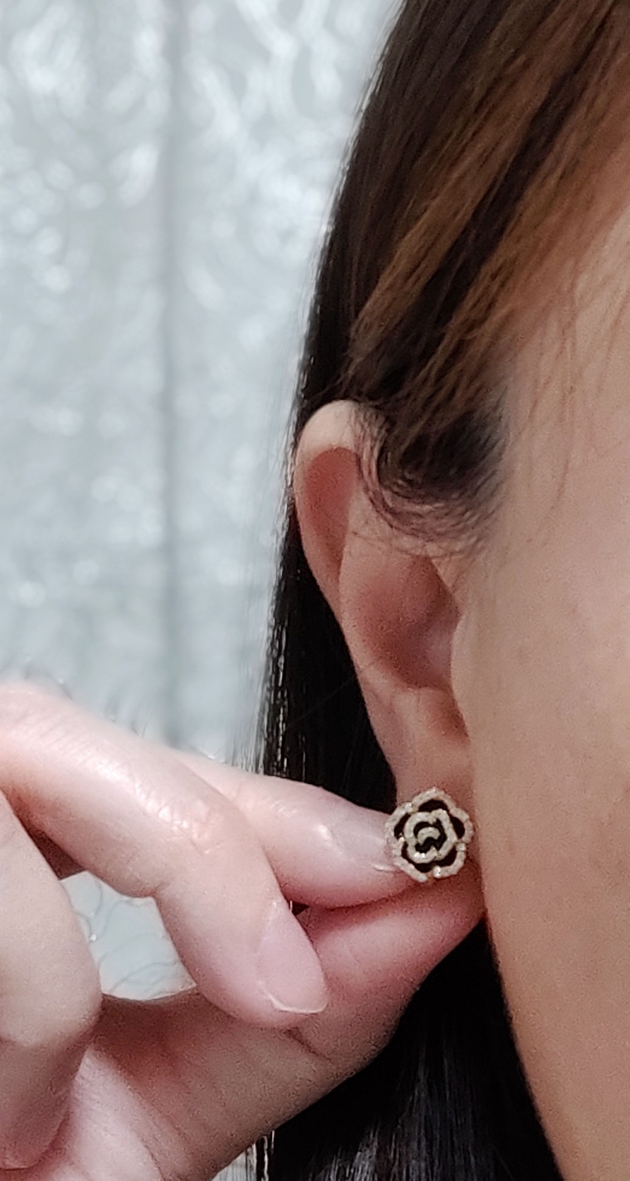 18K RGP ゴールド ダイヤ CZ バラ リング ピアス gp5516