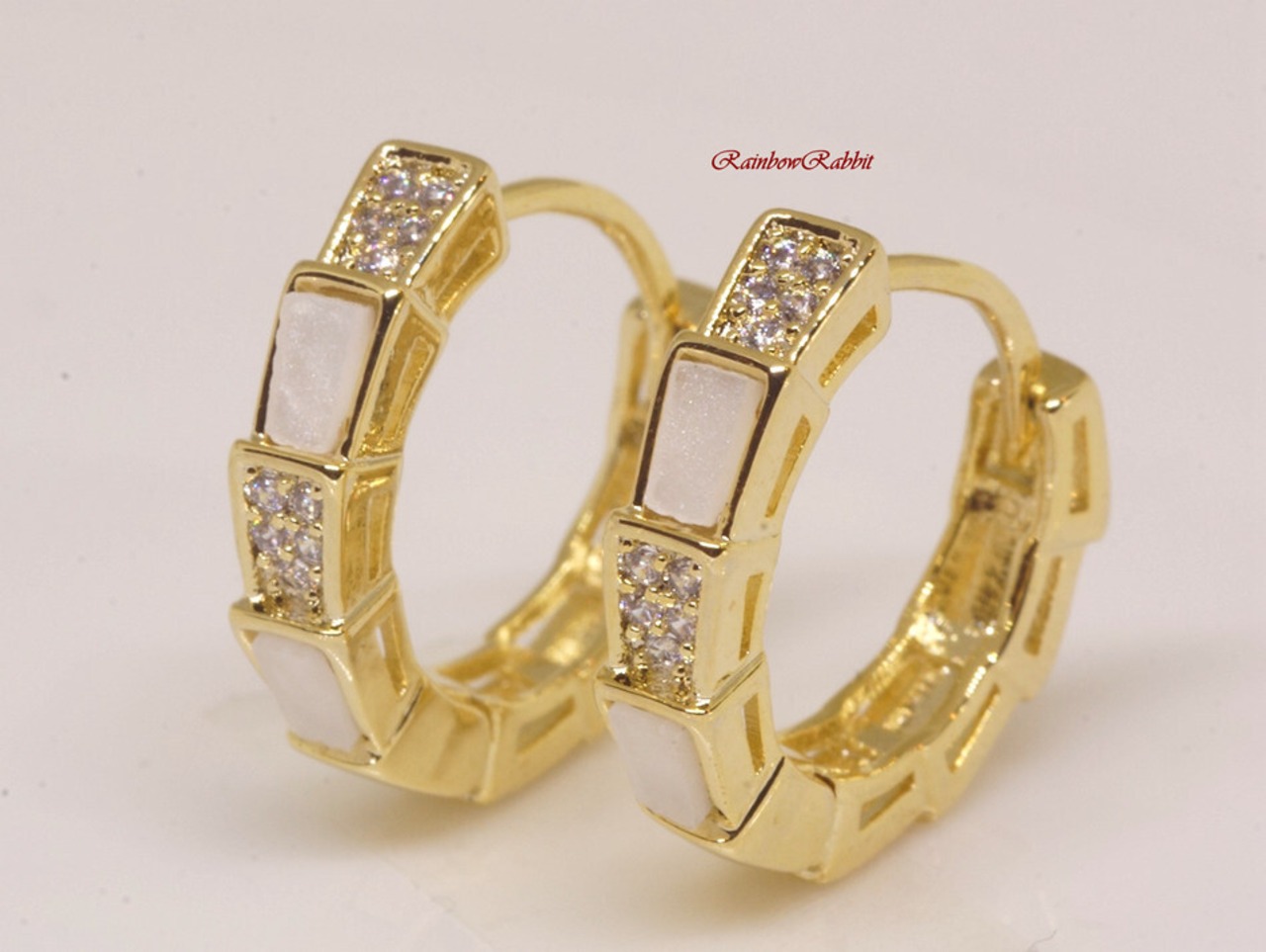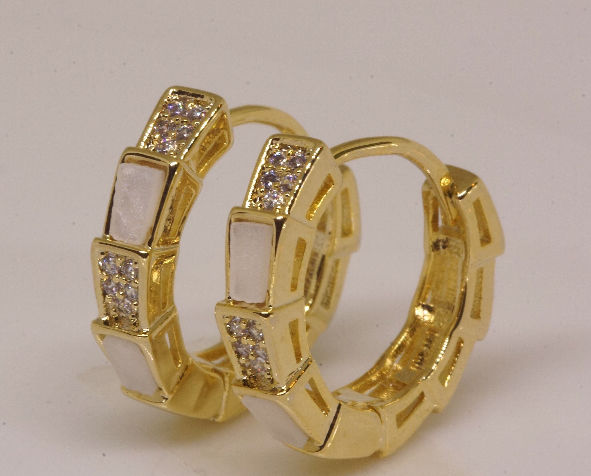 18K RGP ゴールド ダイヤ CZ 天然貝殻 リング ピアス gp5698