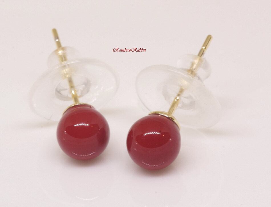 18K RGP ゴールド 小粒 珊瑚色 ボール ピアス gp5687