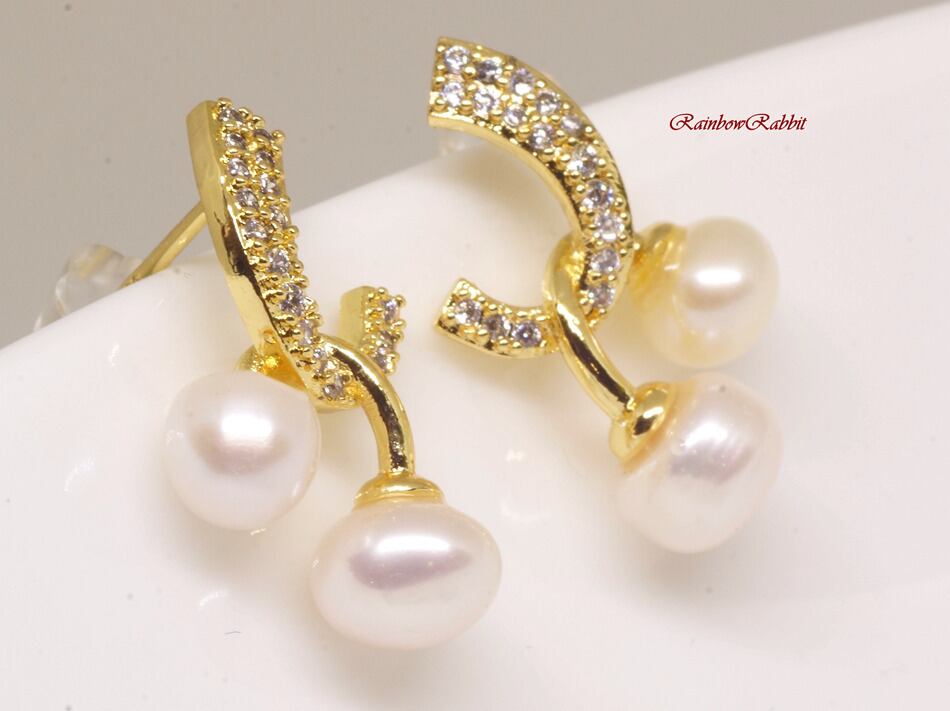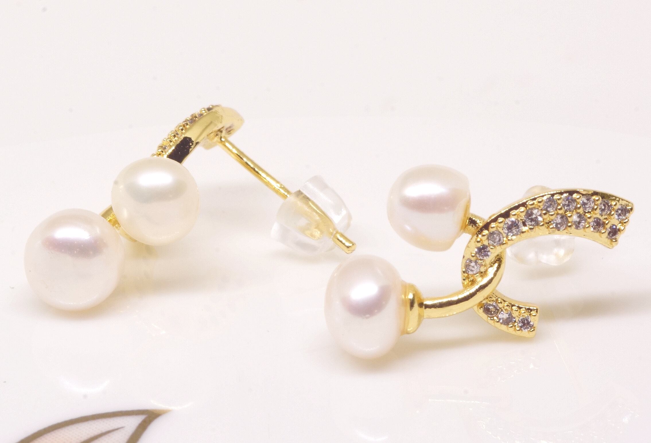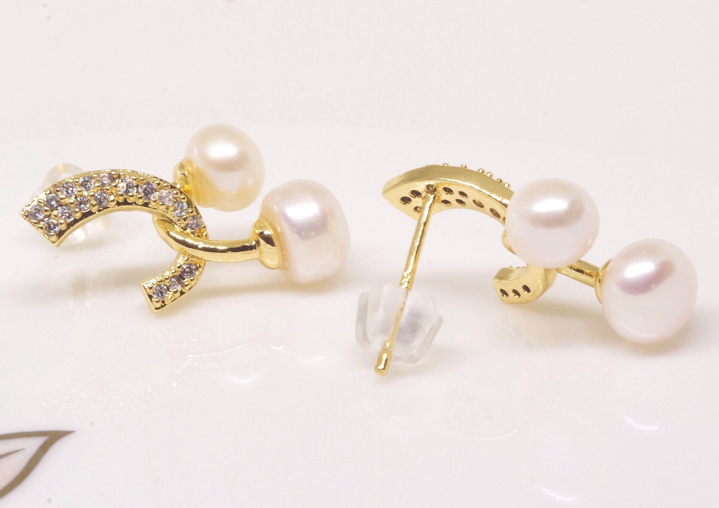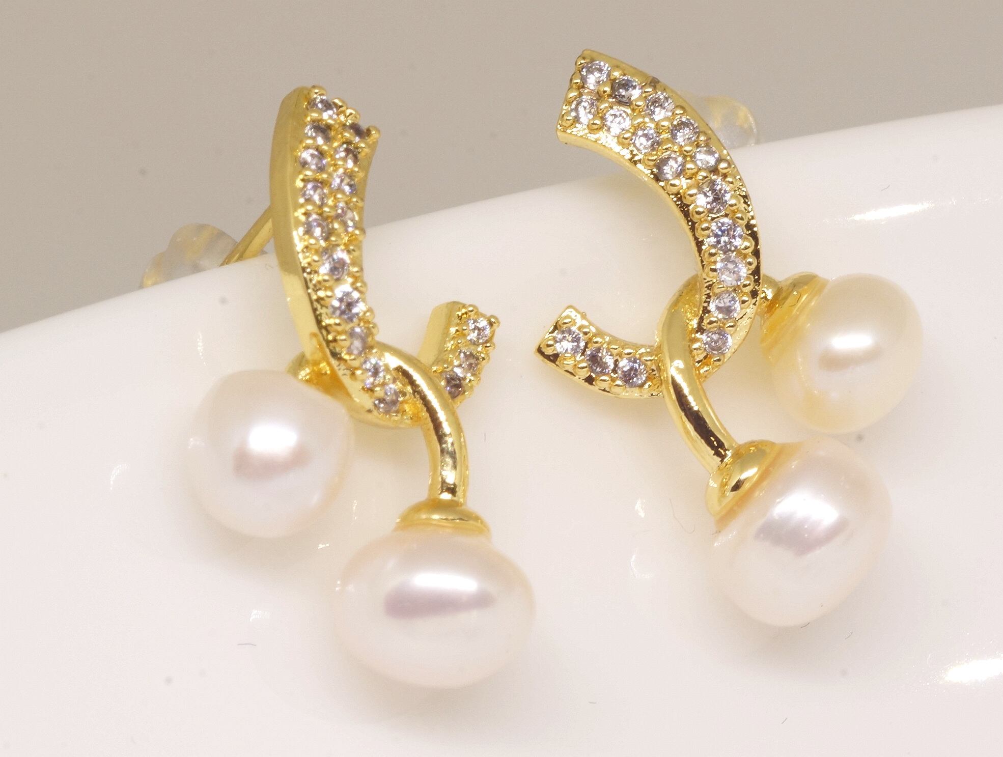 18K RGP ゴールド ダイヤ CZ フラワー パール ピアス gp5705