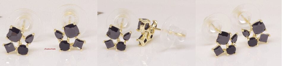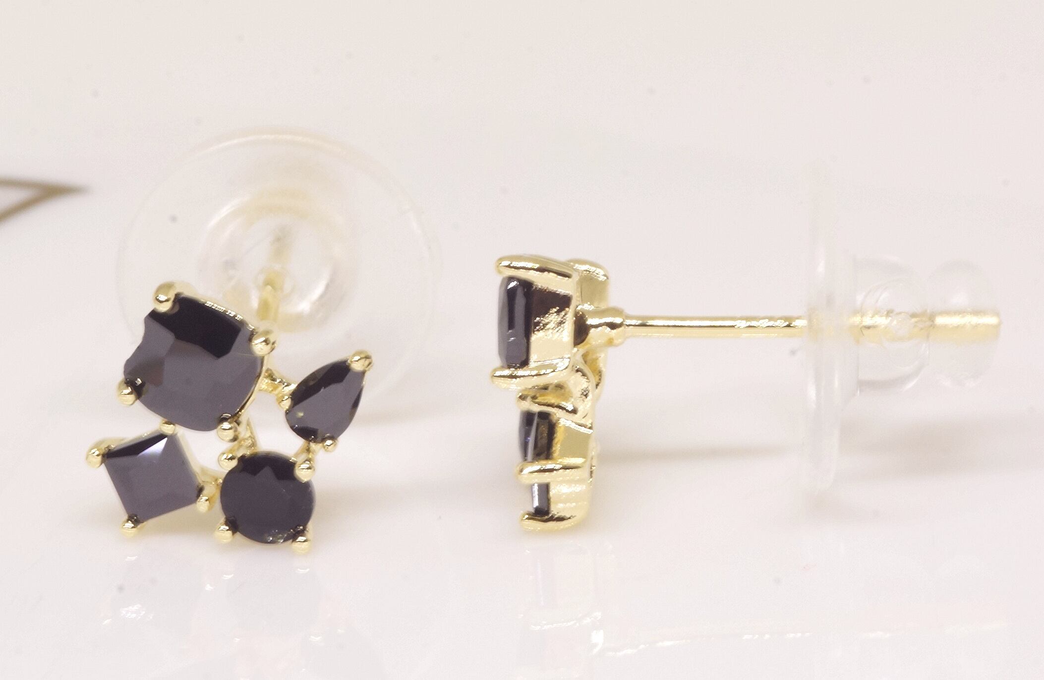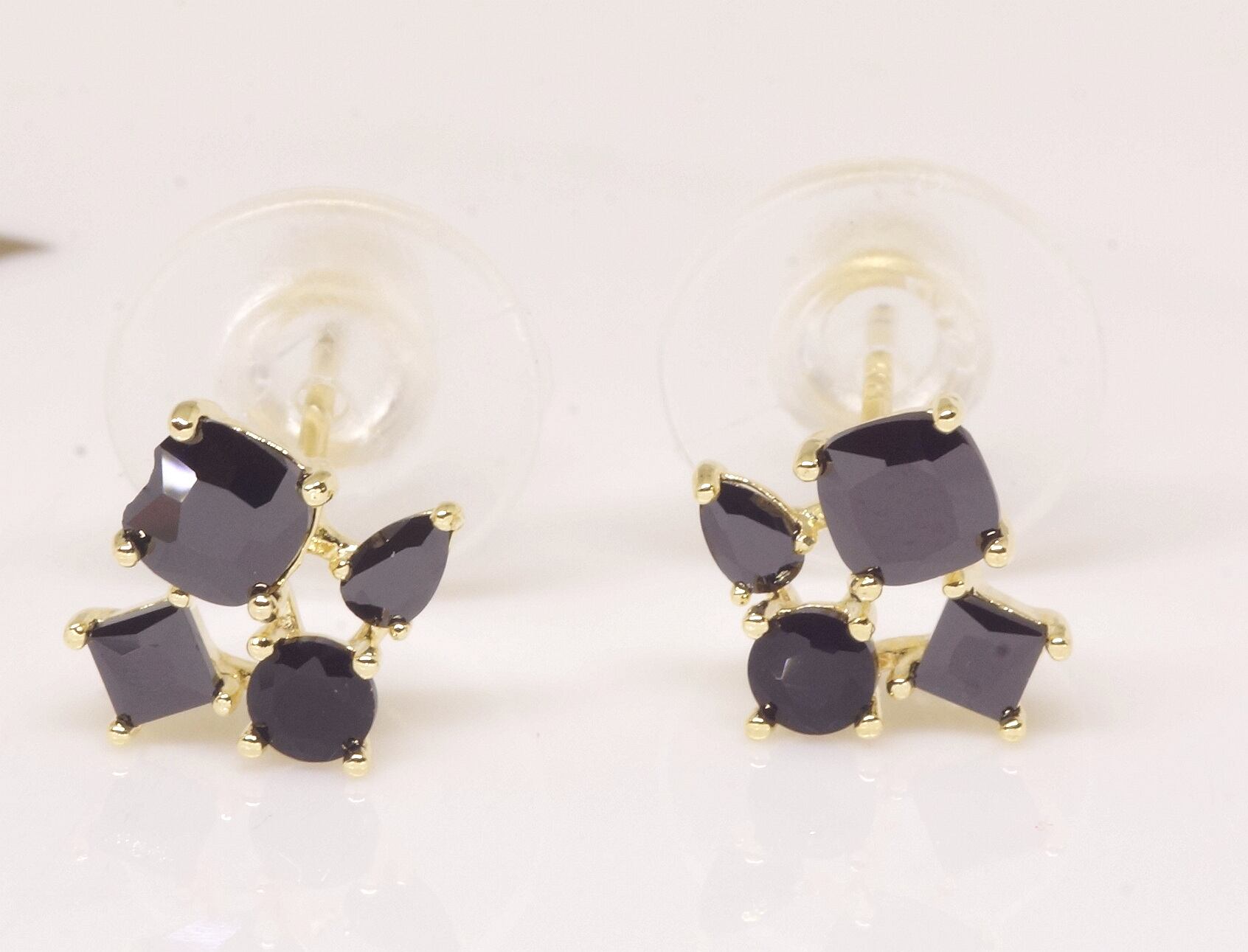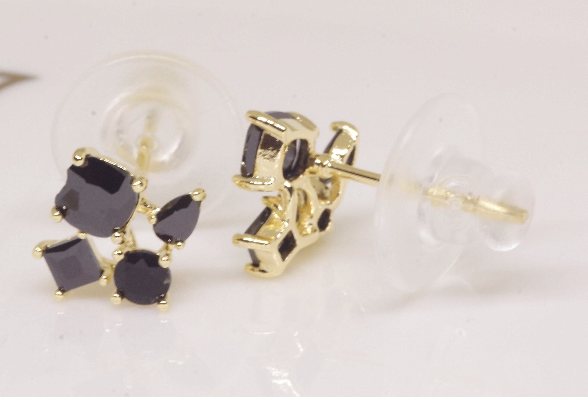 18K RGP ゴールド ダイヤ CZ ブラック フラワー ピアス gp5696