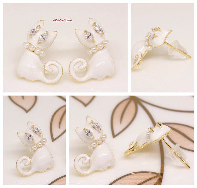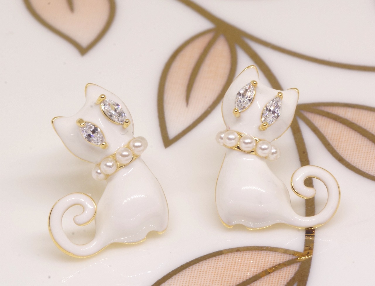 18K RGP ゴールド ダイヤ CZ ホワイト 猫 ピアス gp5691