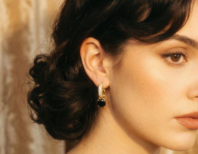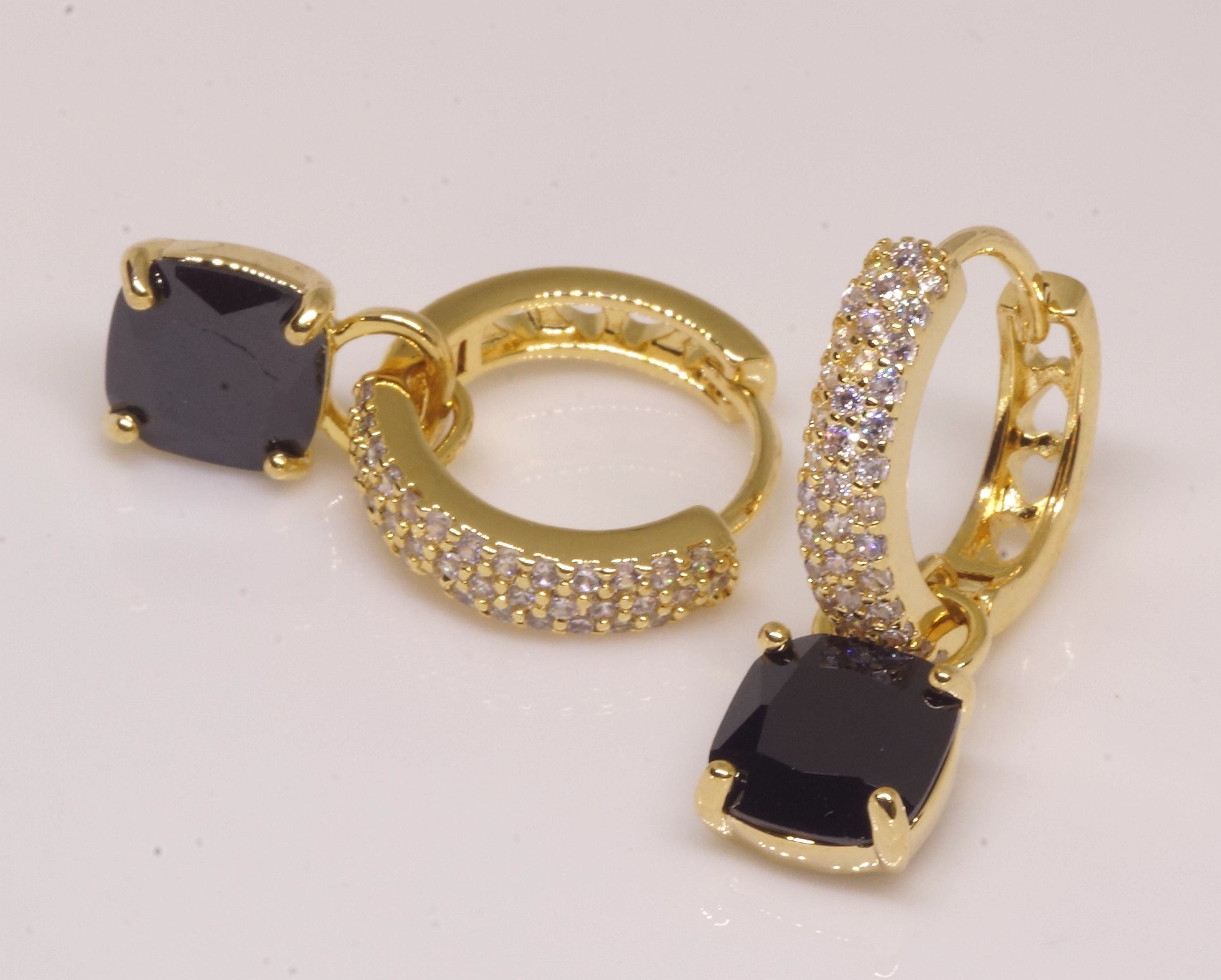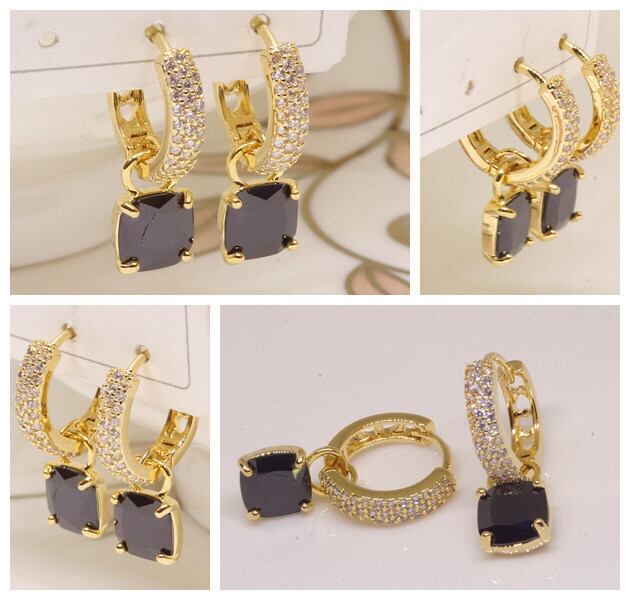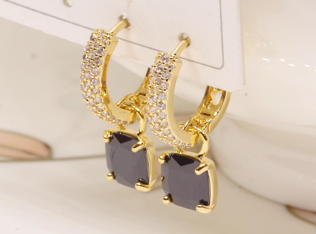 18K RGP ゴールド ダイヤ CZ ブラックストーン リング ピアス gp5693