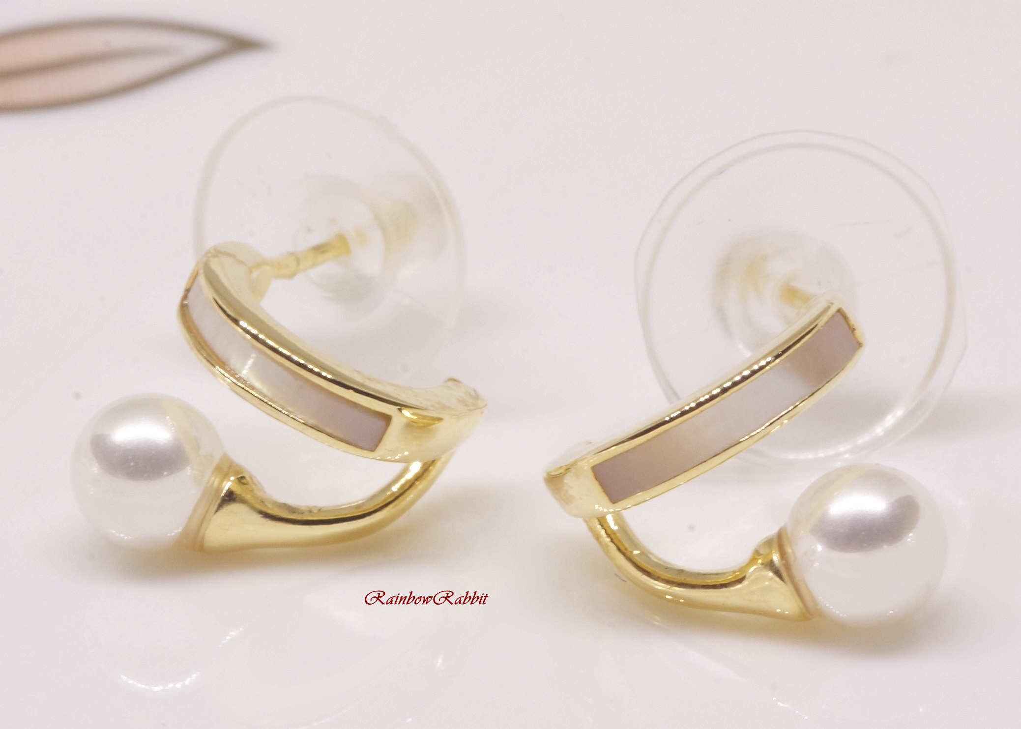 18K RGP ゴールド 天然貝殻 パール ピアス gp5674 | Rainbow Rabbit