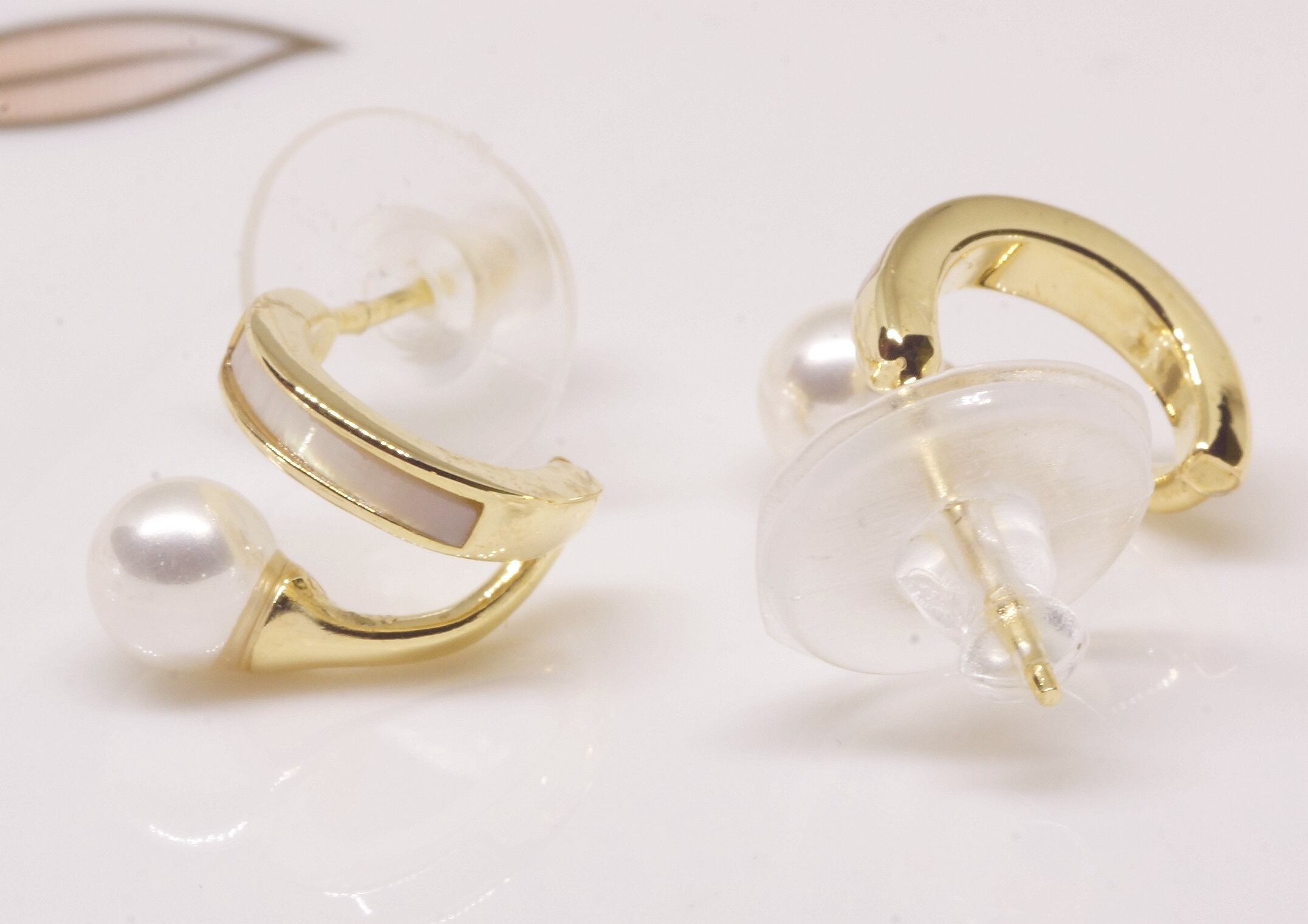 18K RGP ゴールド 天然貝殻 パール ピアス gp5674 デザインサイズ:約横7mm*縦10mm 真鍮(Brass):ロジウム加工、18Kゴールド仕上げ