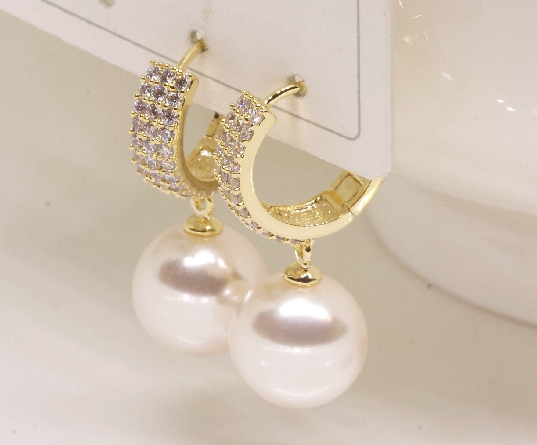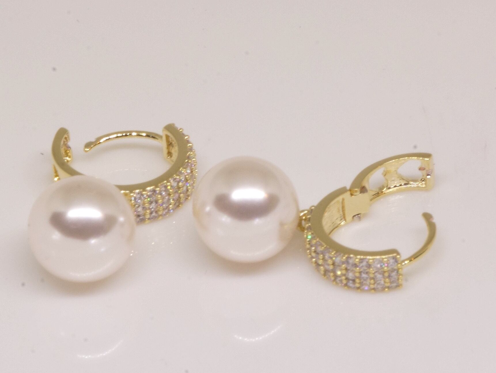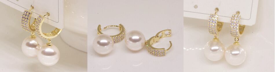 18K RGP ゴールド ダイヤ CZ パール リング ピアス gp5675