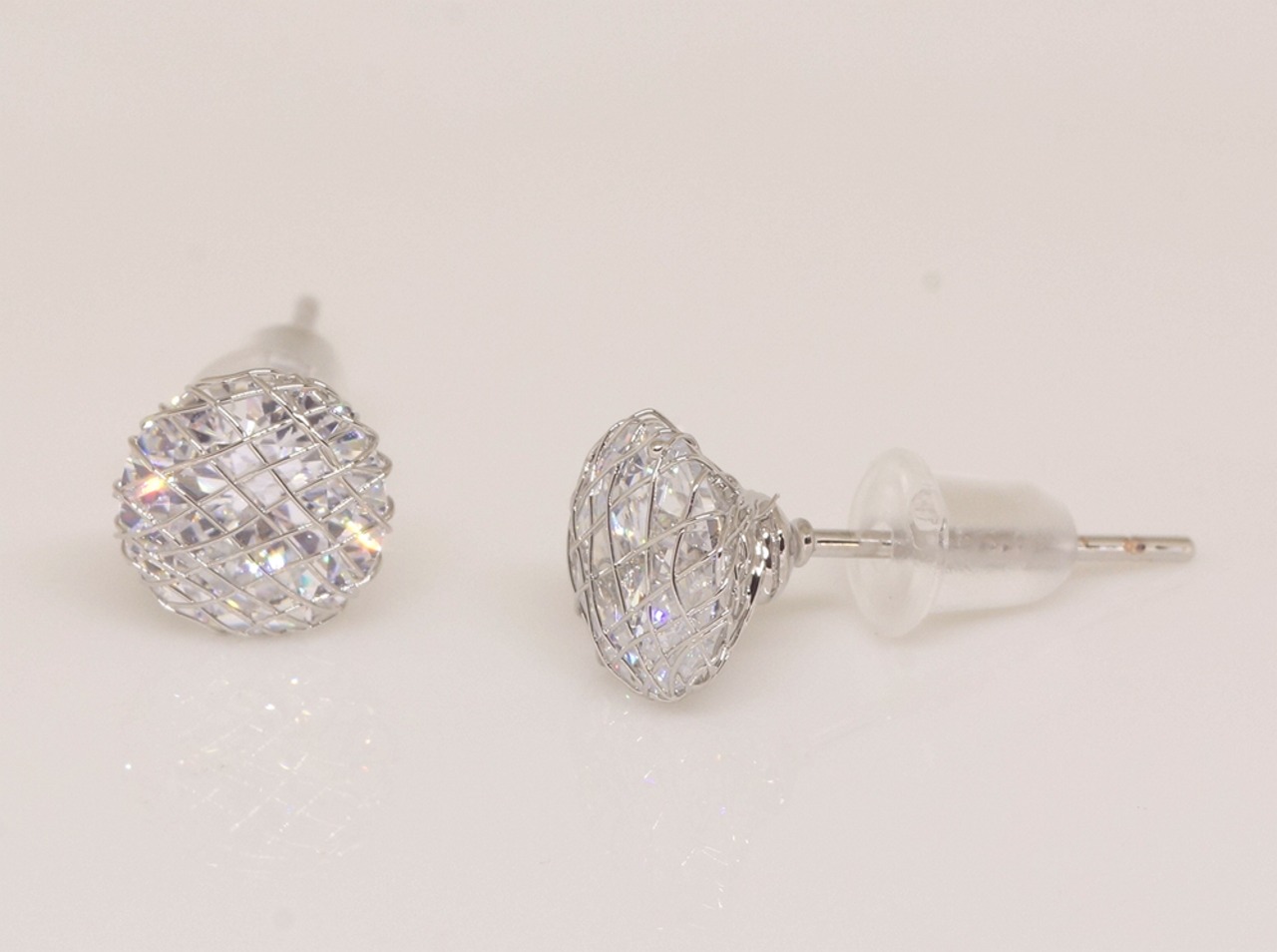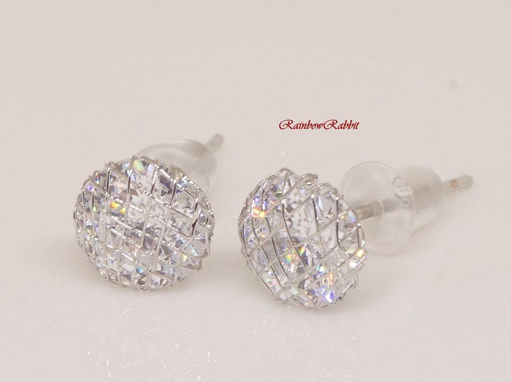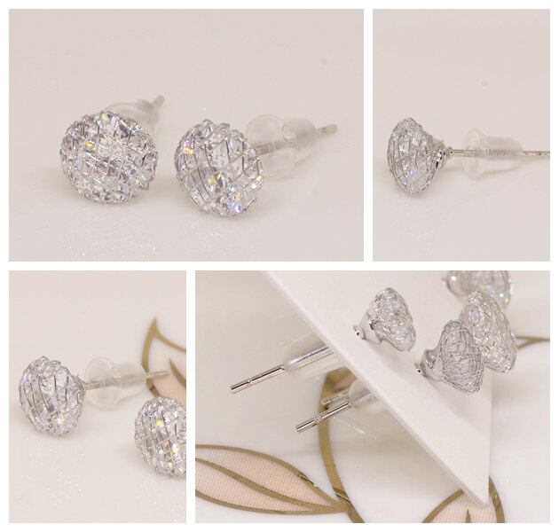 18K RGP プラチナ ダイヤ CZ 5mm 一粒 ピアス yp4951