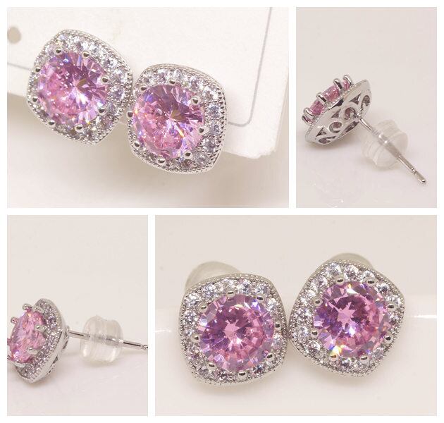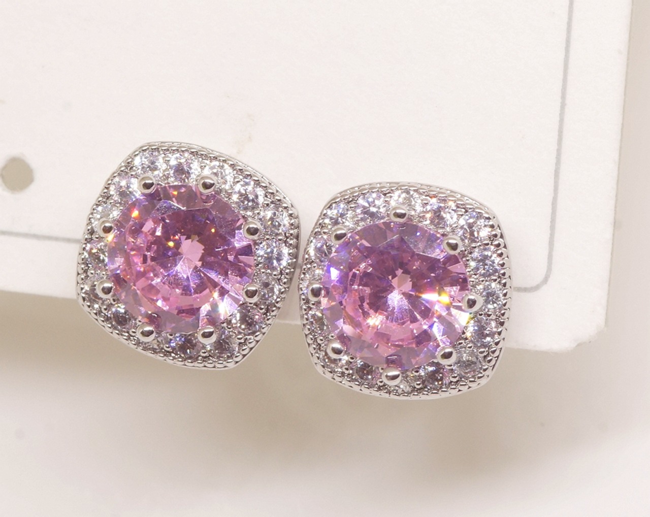 18K RGP プラチナ ダイヤ CZ ピンク 一粒 ピアス yp4952