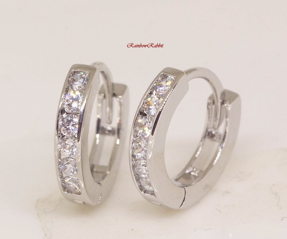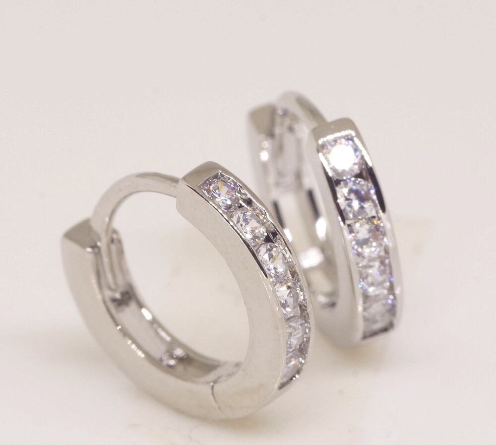 18K RGP プラチナ ダイヤ CZ フープ ピアス yp4975