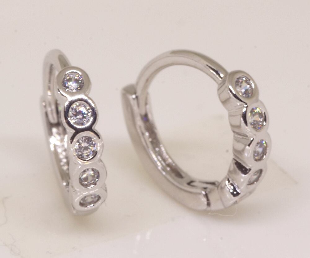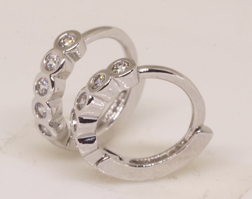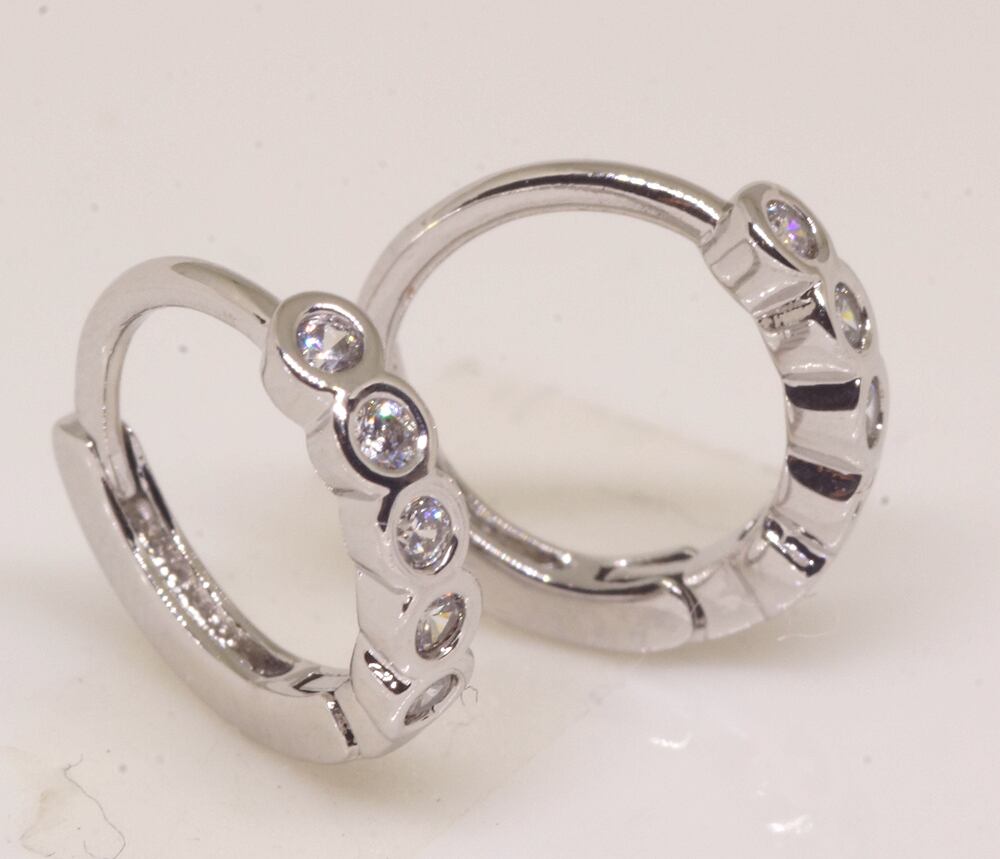 18K RGP プラチナ ダイヤ CZ 小粒 フープ ピアス yp4982
