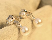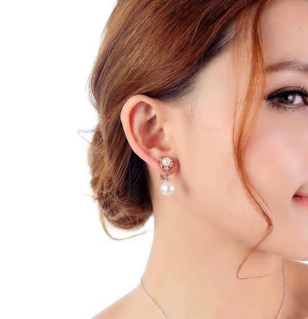 18K RGP プラチナ ダイヤ CZ パール 揺れ イヤリング yp3873